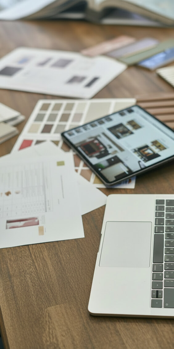 2000+ образцов материалов и мебели. Выбираете и оцениваете вживую под ваш бюджет. Покупаете напрямую от поставщиков — без дизайнерских процентов и агентских комиссий