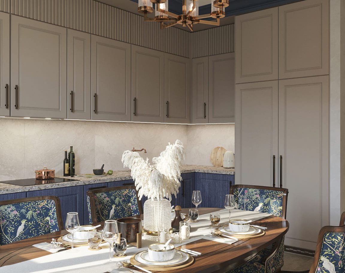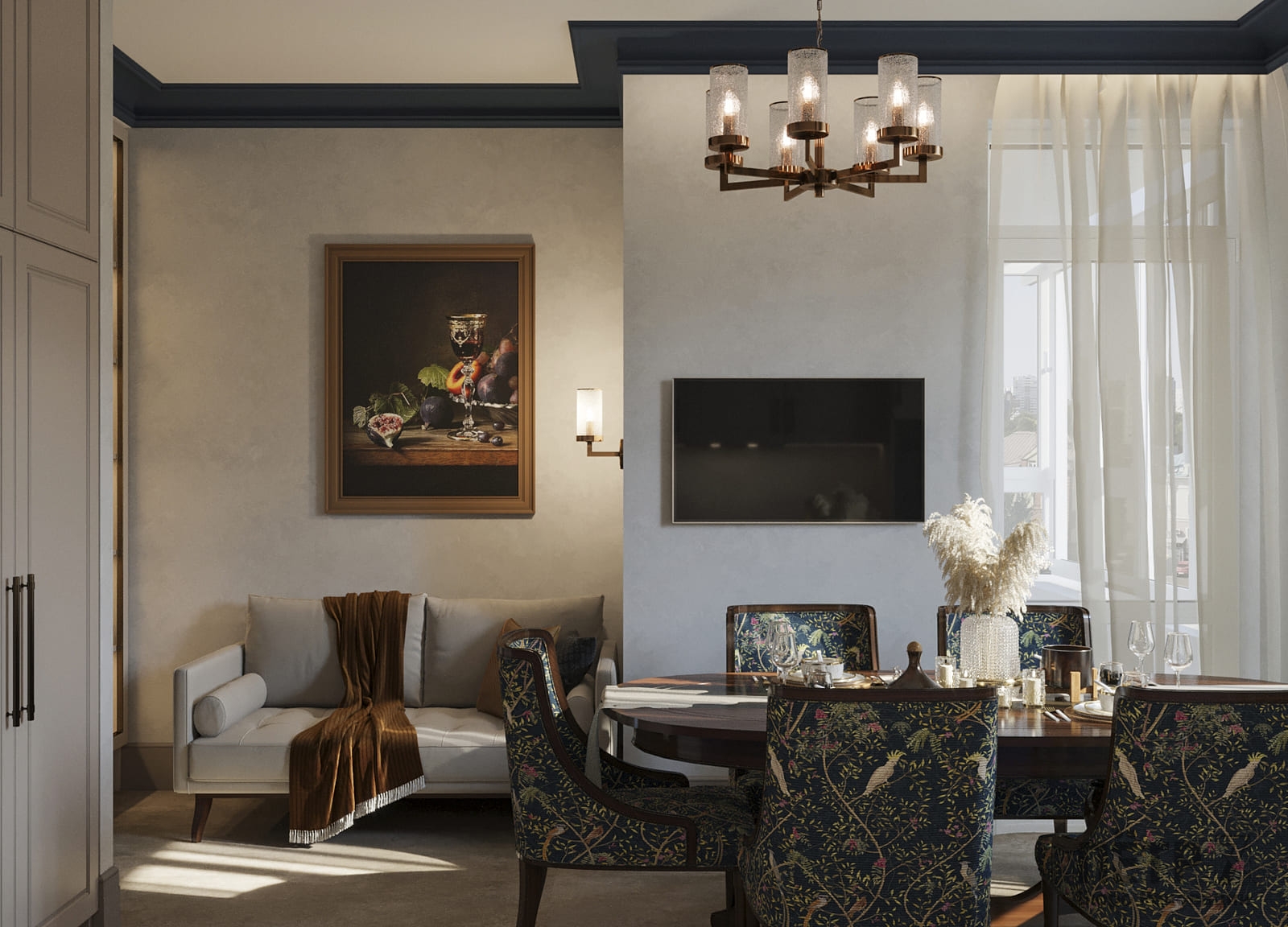 В этом проекте мы работали с чётким видением заказчиков по стилистике, мебели и свету. Основу интерьера составили нюансные цветовые сочетания, объединённые близкими тонами и фактурами, что позволило создать цельную и гармоничную композицию.
