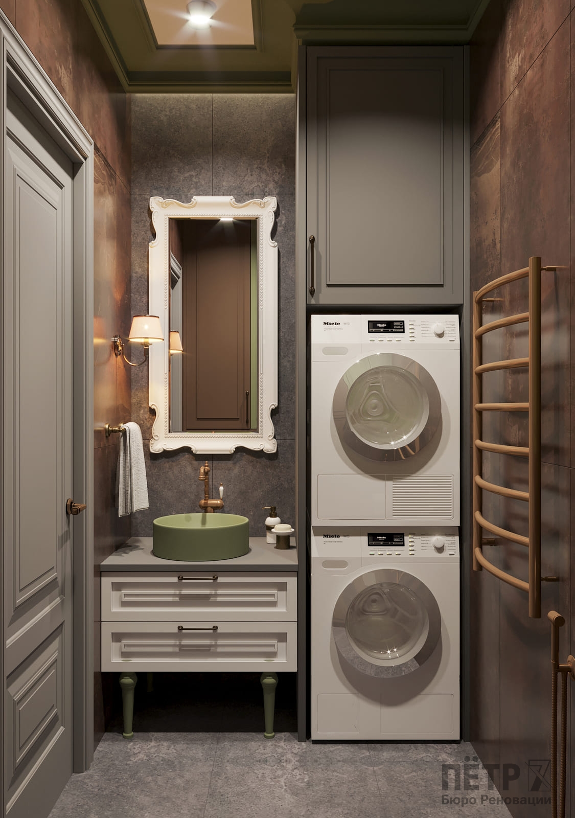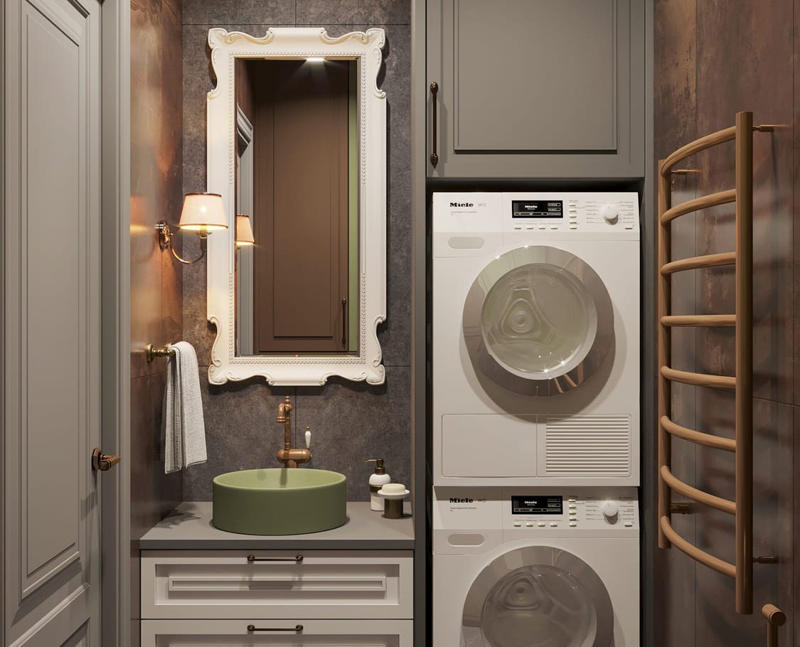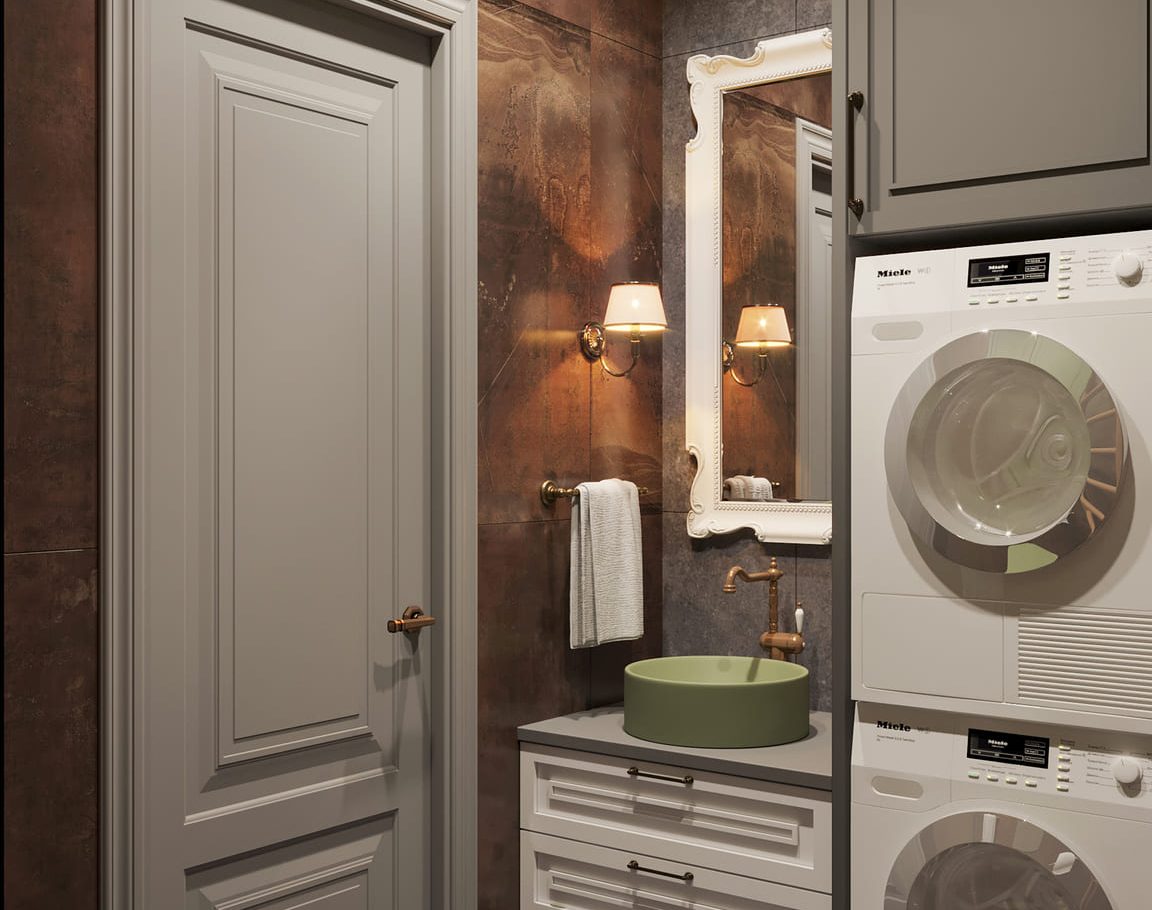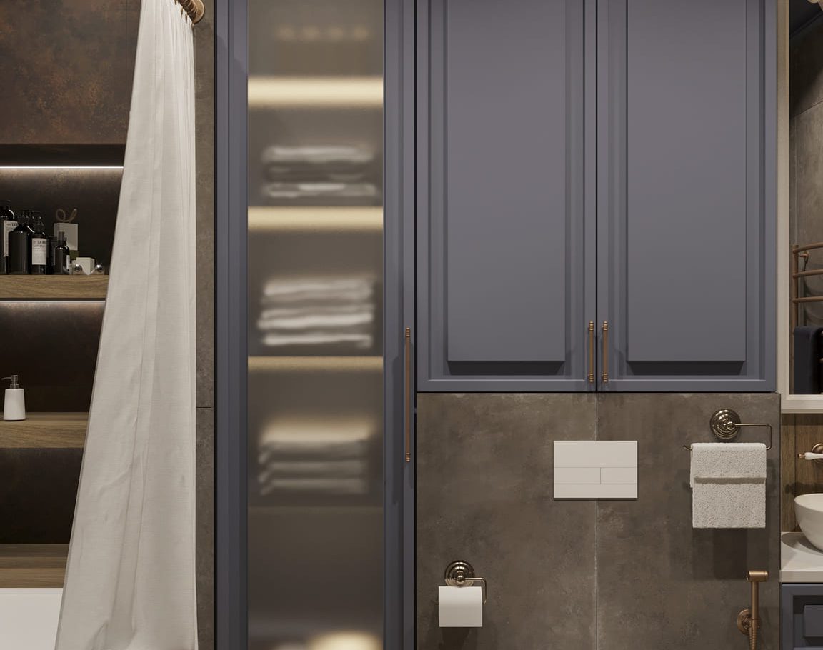 В каждой комнате мы использовали бронзовые акценты — в освещении, сантехнике и фурнитуре. Эти детали добавили глубины и благородства пространству. В итоге интерьер получился многослойным, детализированным и отражающим характер владельцев.