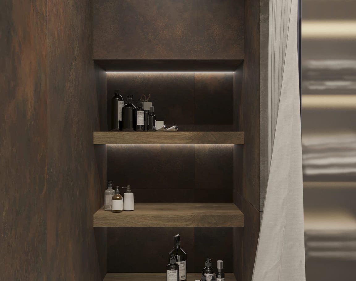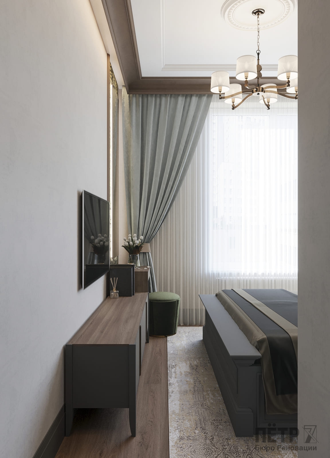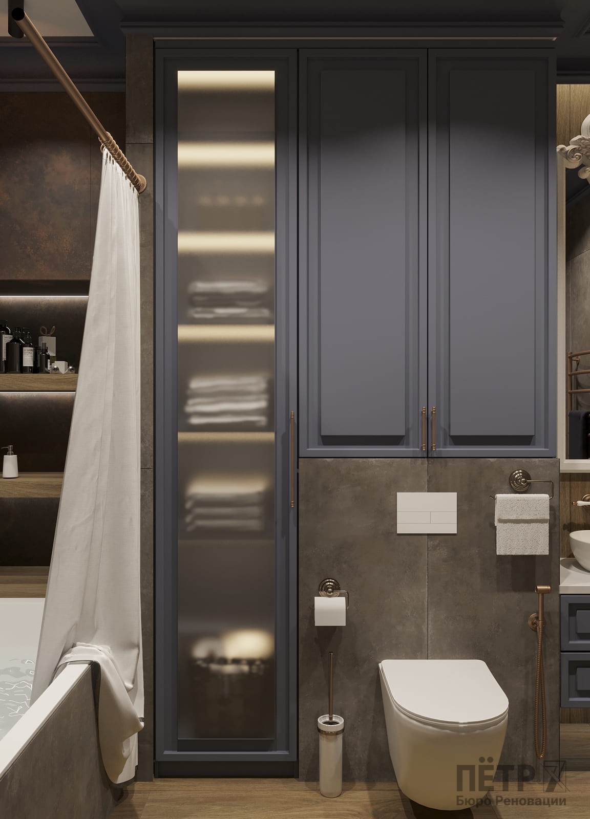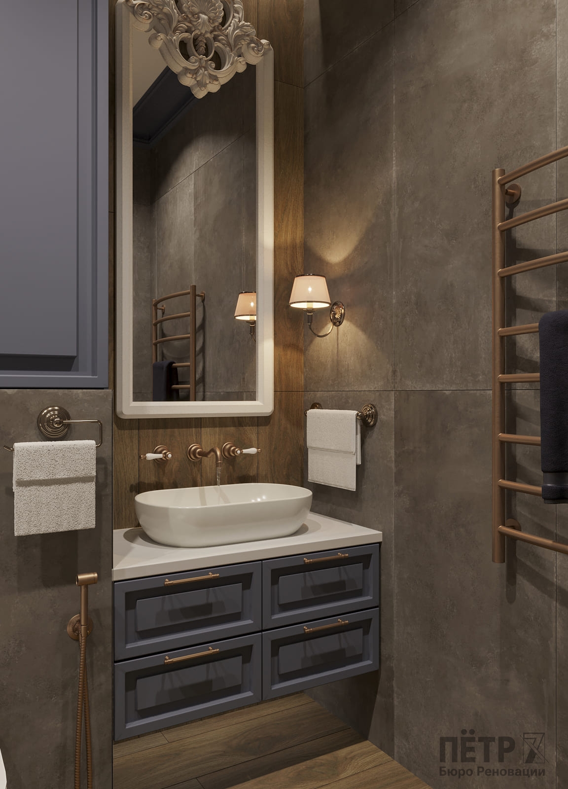 В каждой комнате мы использовали бронзовые акценты — в освещении, сантехнике и фурнитуре. Эти детали добавили глубины и благородства пространству. В итоге интерьер получился многослойным, детализированным и отражающим характер владельцев.