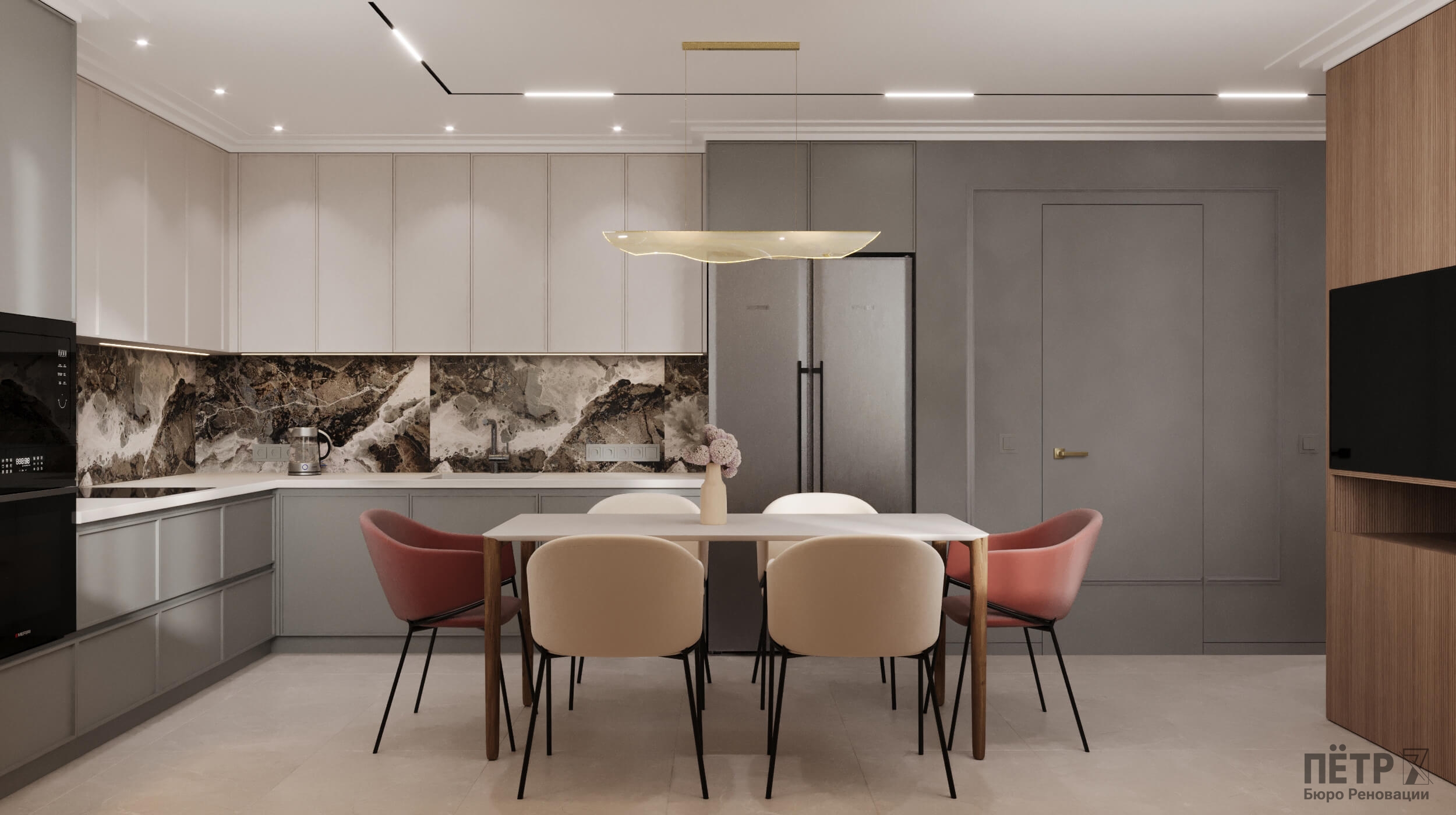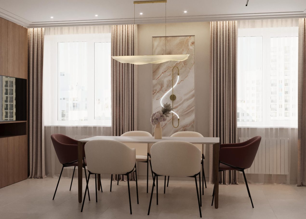 Светлая база подчеркнула объём пространства и позволила акцентным оттенкам звучать тонко и благородно. Натуральные материалы, мягкие фактуры и продуманные сценарии освещения сформировали атмосферу современной роскоши — комфортной и актуальной для повседневной жизни.