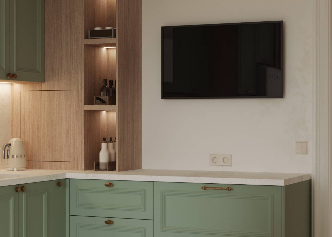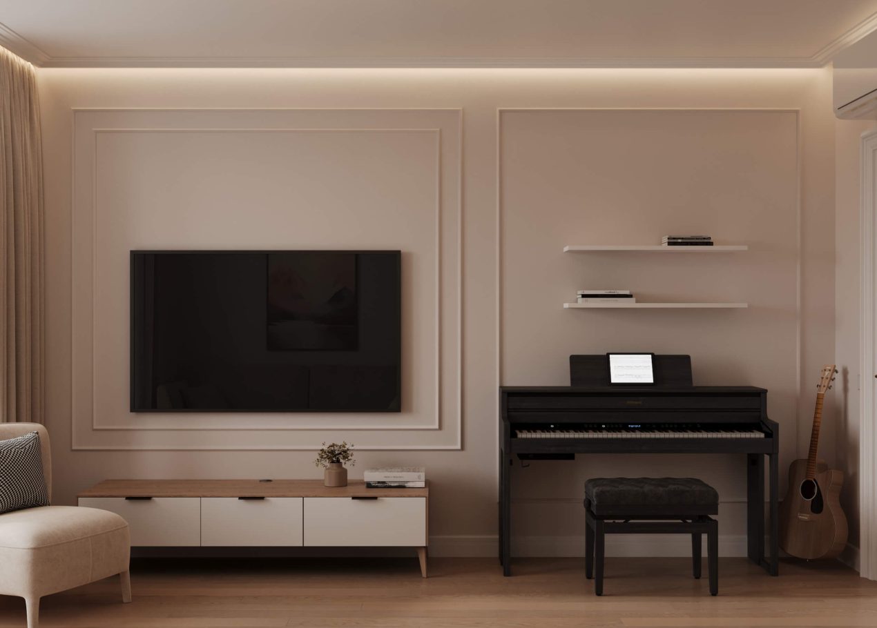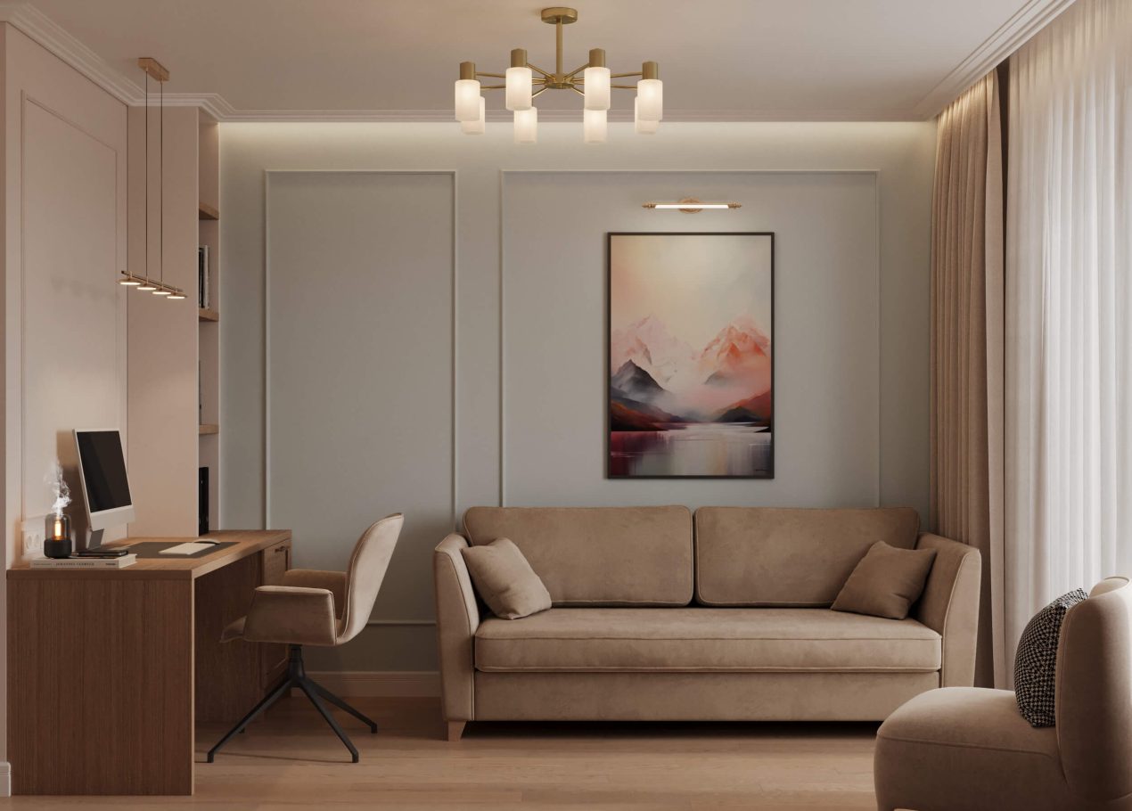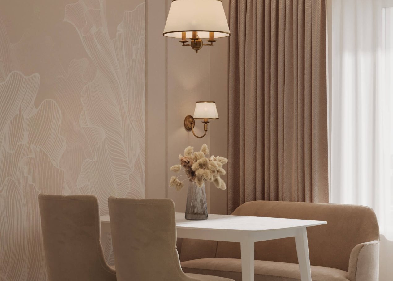 В этом проекте мы объединили элементы минимализма, неоклассики и скандинавского стиля, создав гармоничную эклектику без перегруженности деталями. Нам было важно сохранить баланс между выразительностью и лёгкостью восприятия.