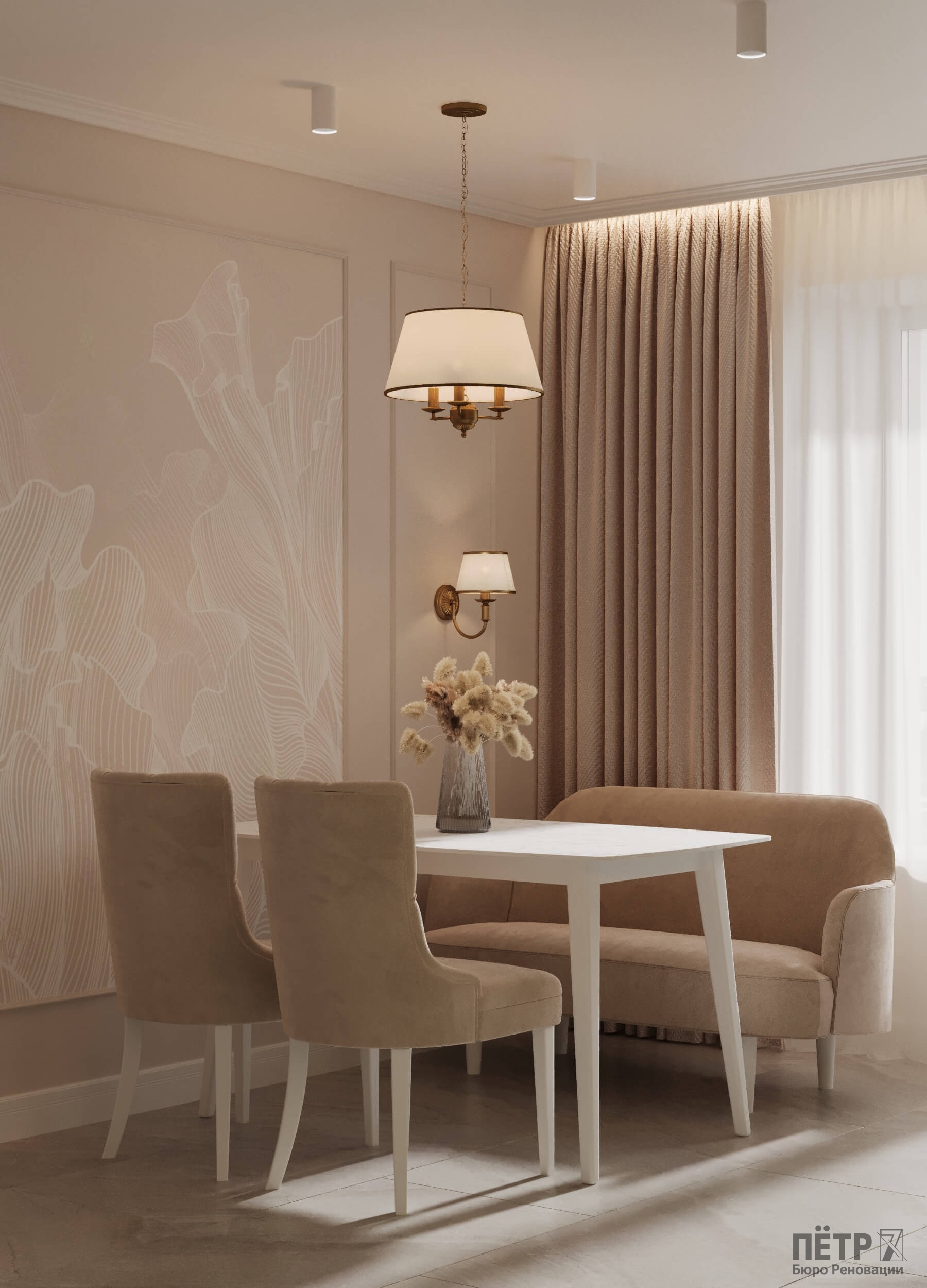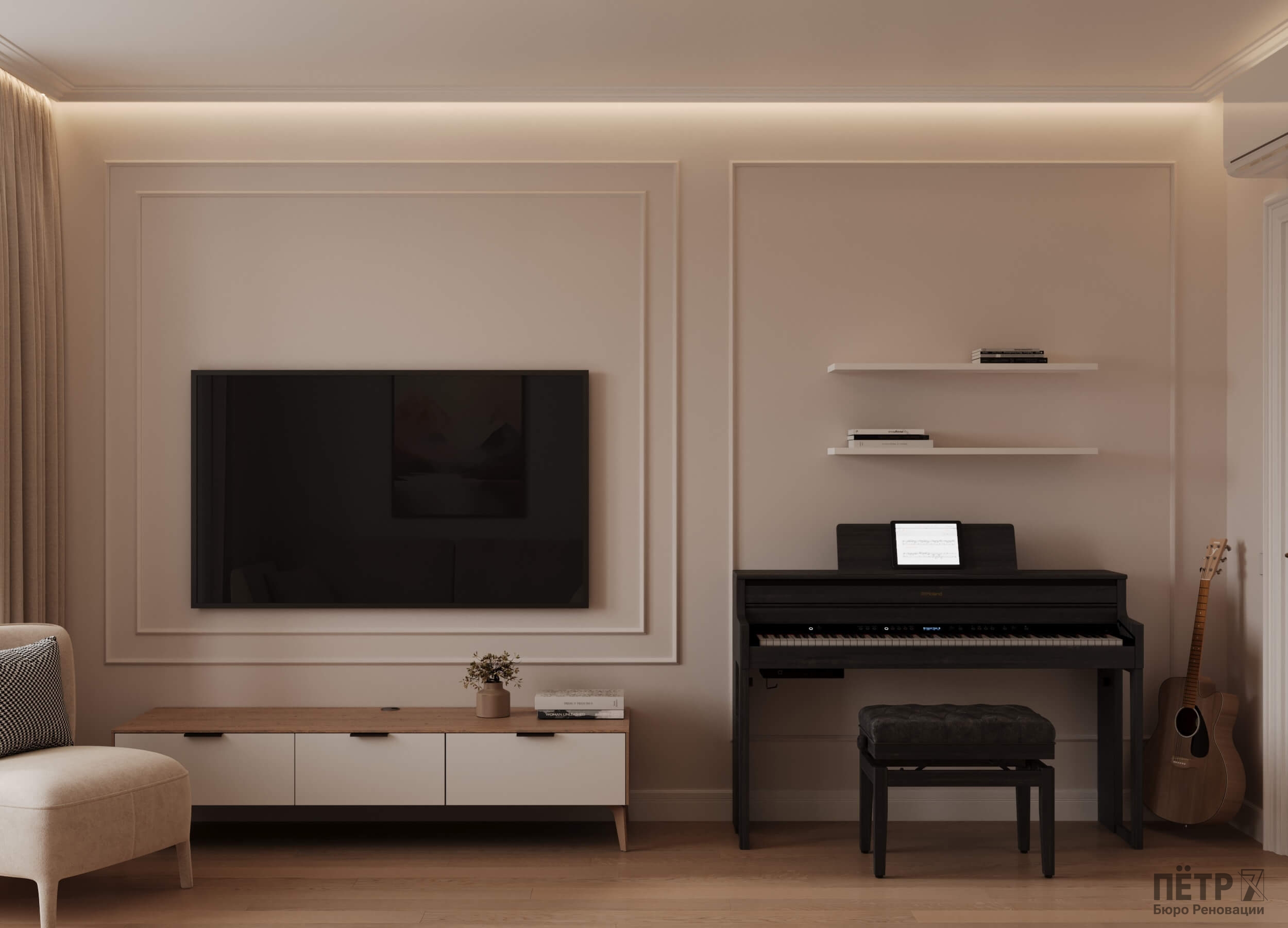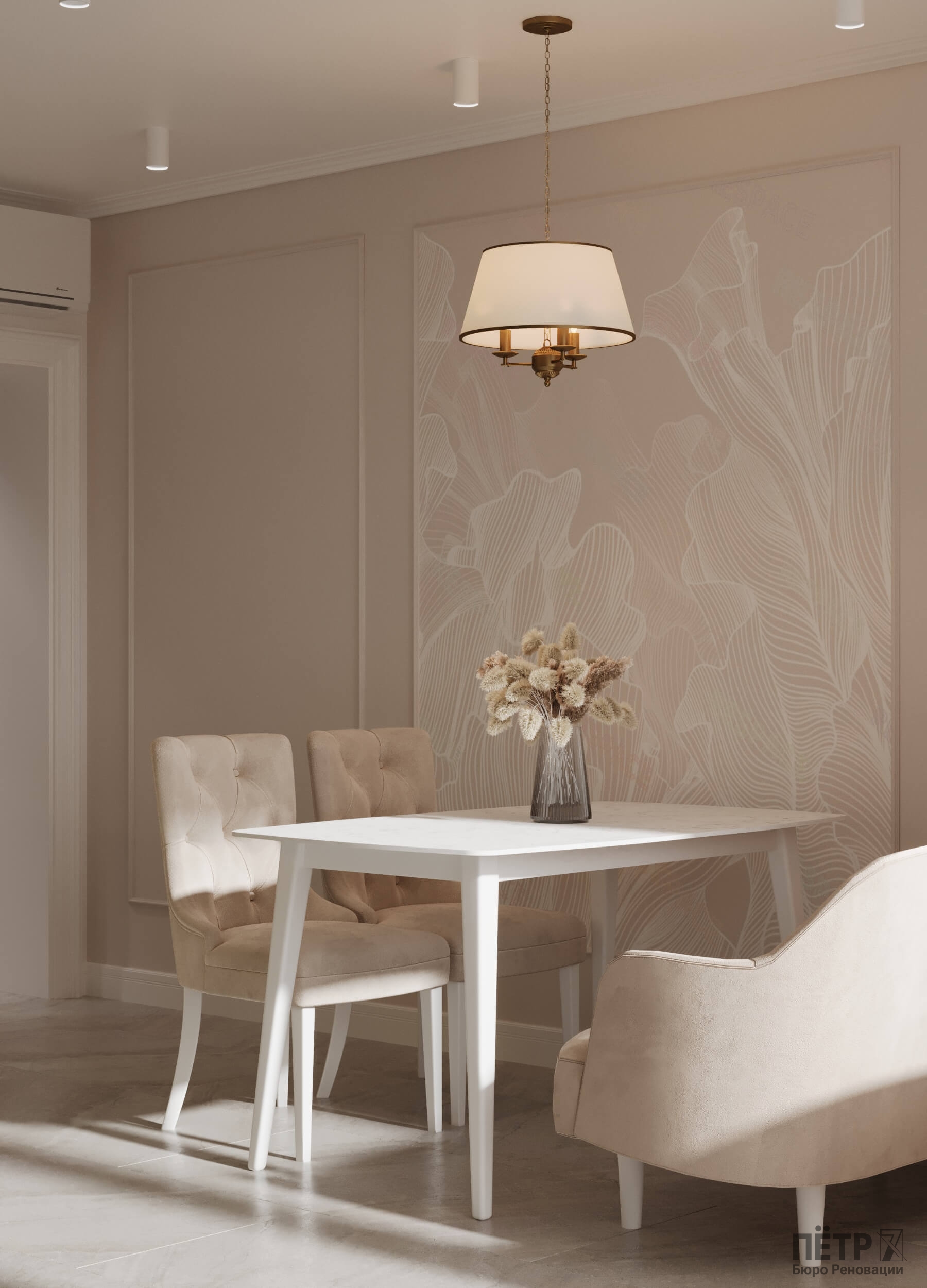 В этом проекте мы объединили элементы минимализма, неоклассики и скандинавского стиля, создав гармоничную эклектику без перегруженности деталями. Нам было важно сохранить баланс между выразительностью и лёгкостью восприятия.