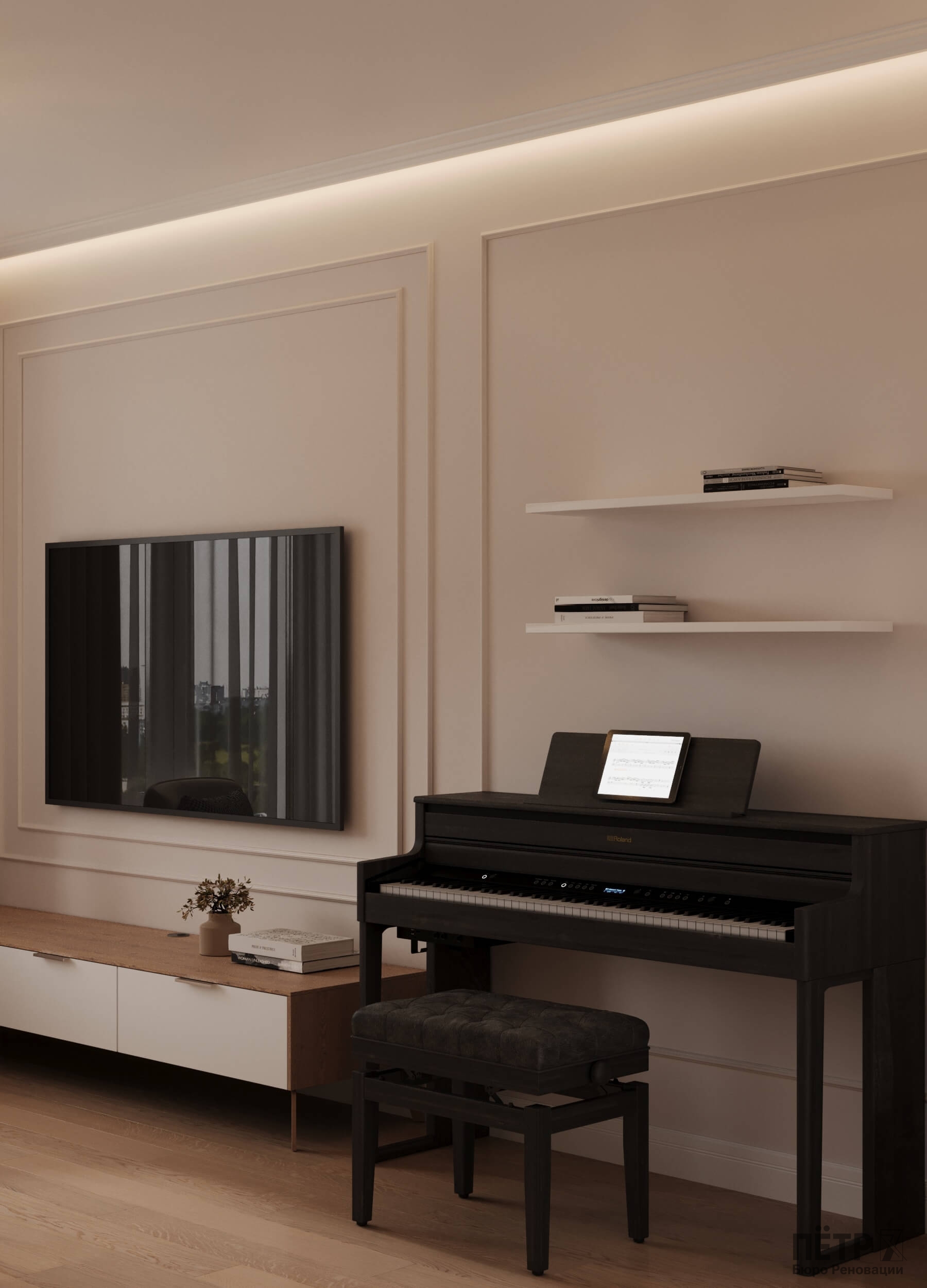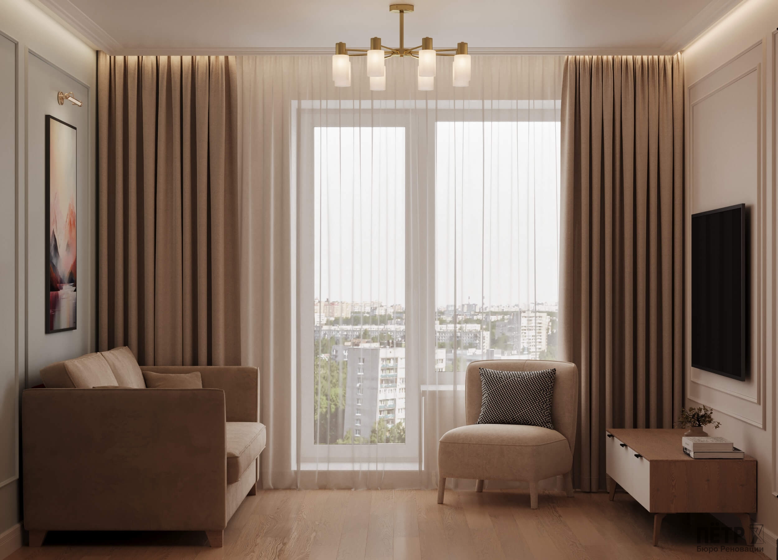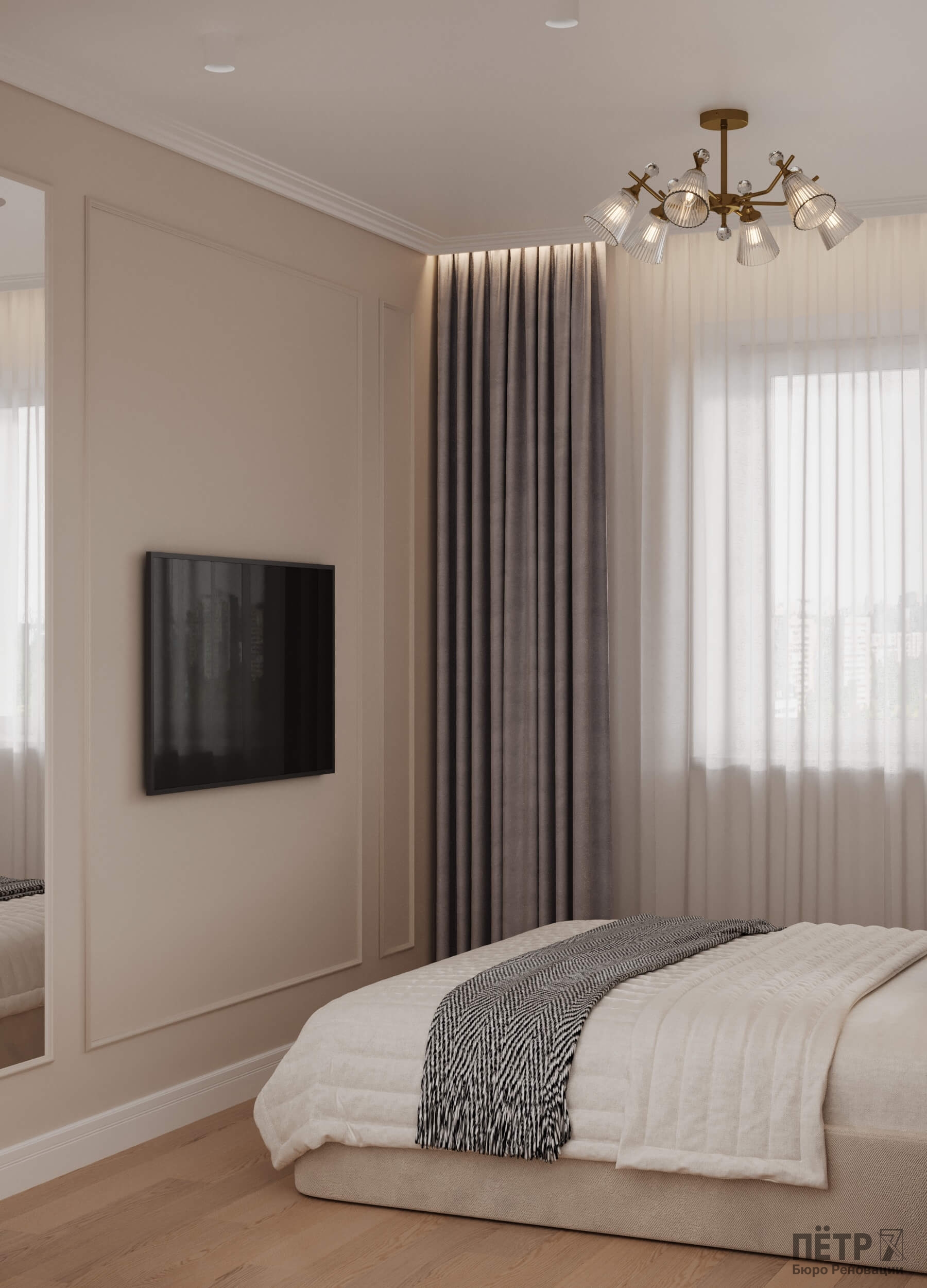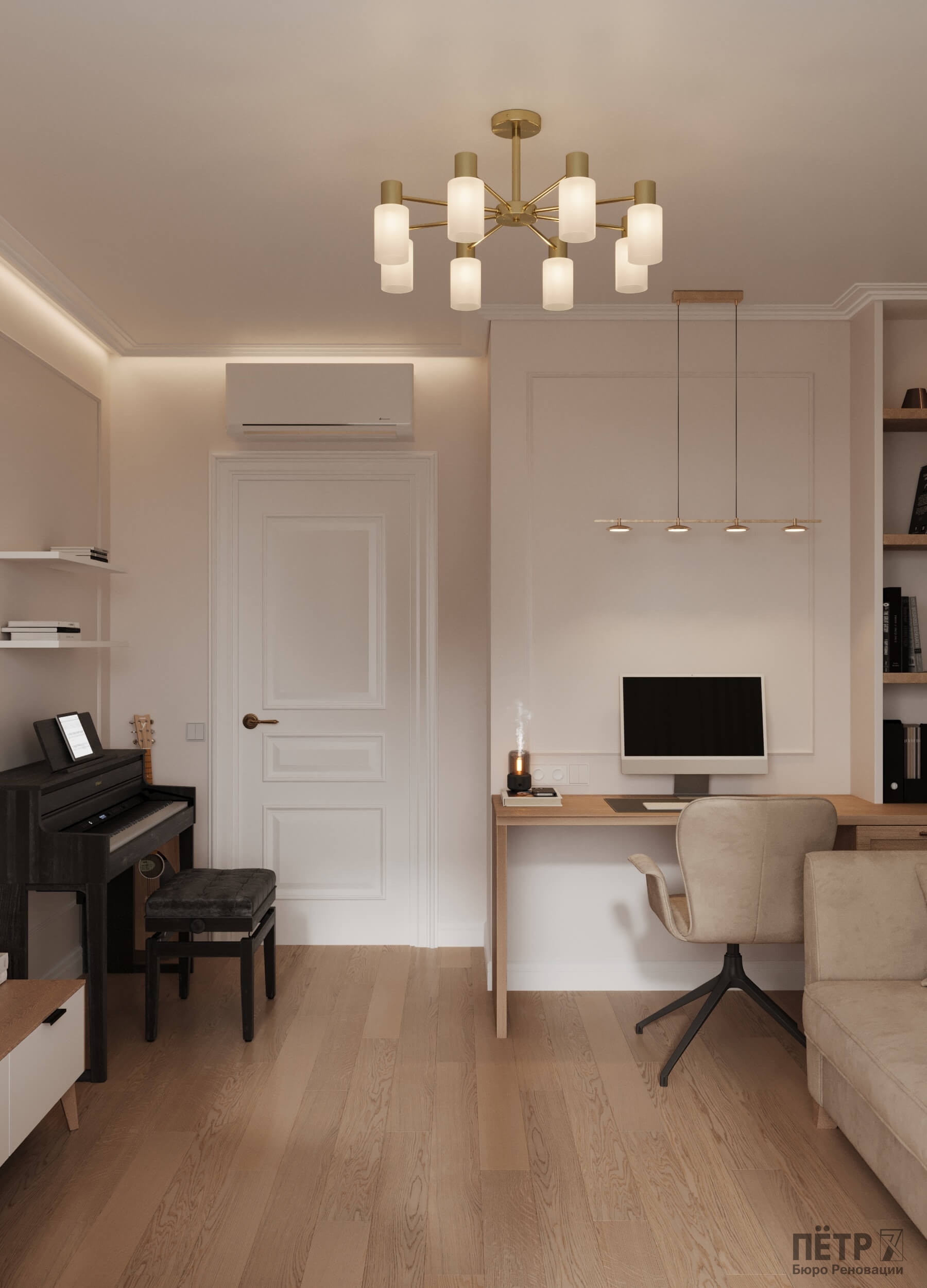 В этом проекте мы объединили элементы минимализма, неоклассики и скандинавского стиля, создав гармоничную эклектику без перегруженности деталями. Нам было важно сохранить баланс между выразительностью и лёгкостью восприятия.