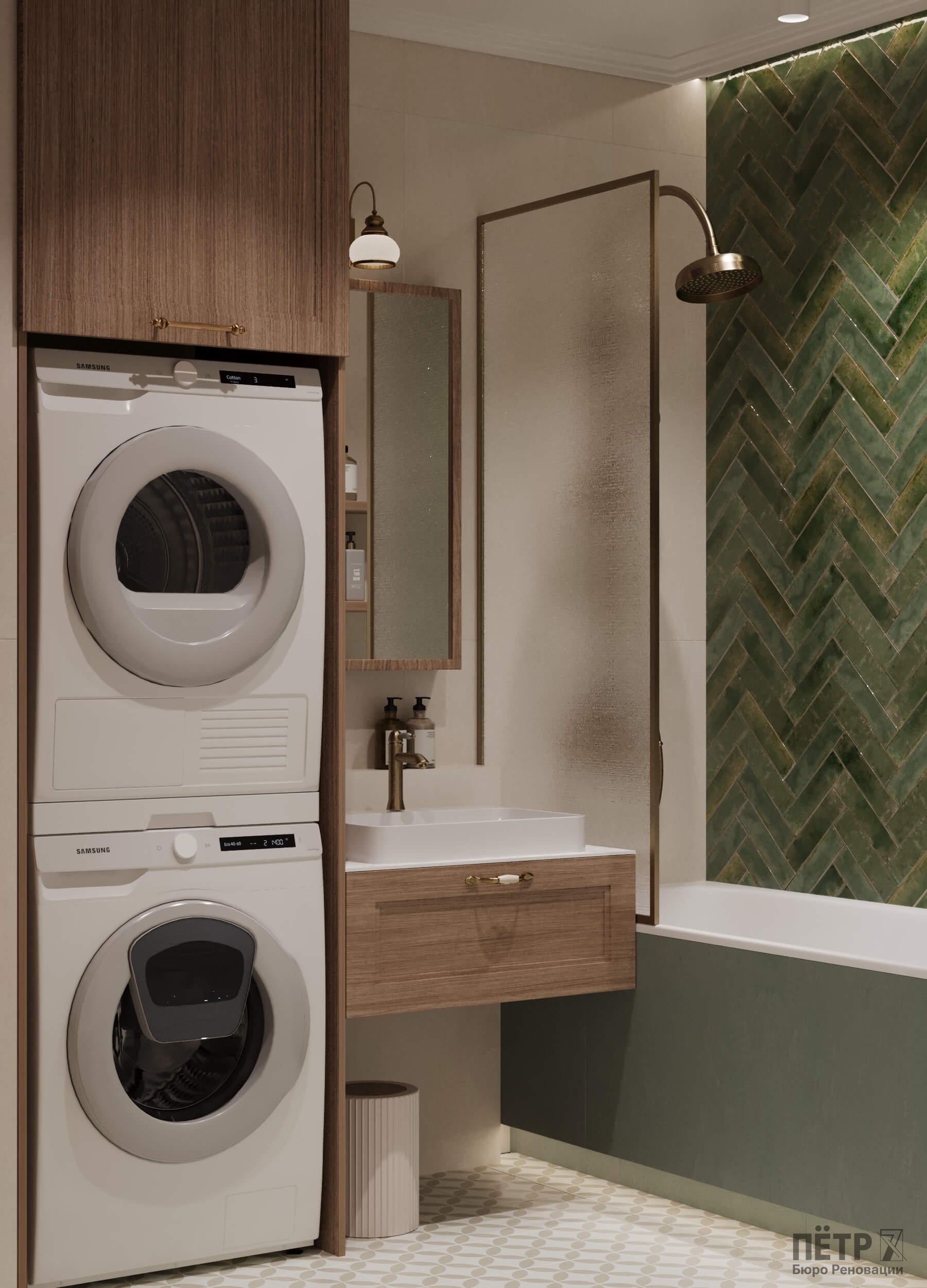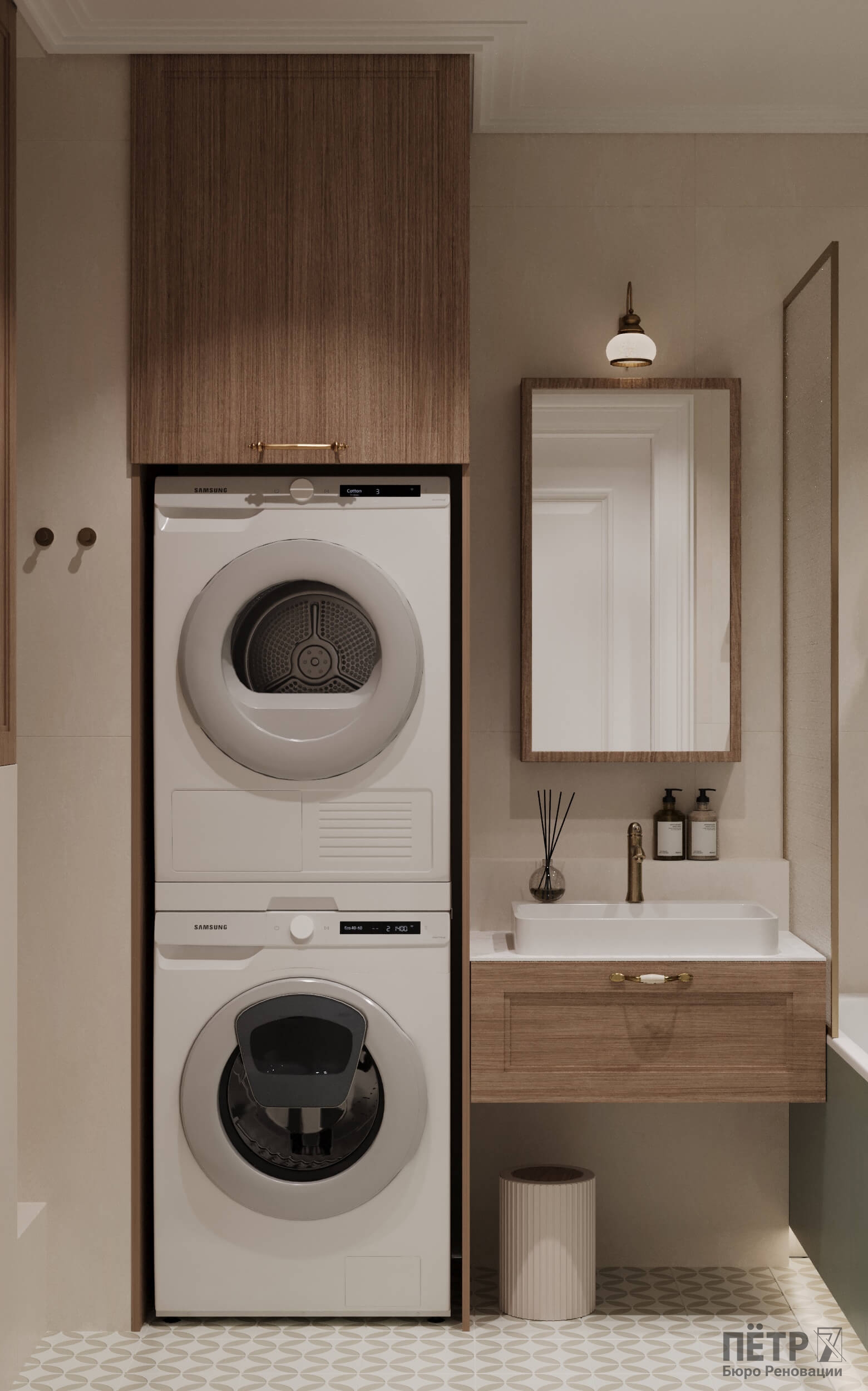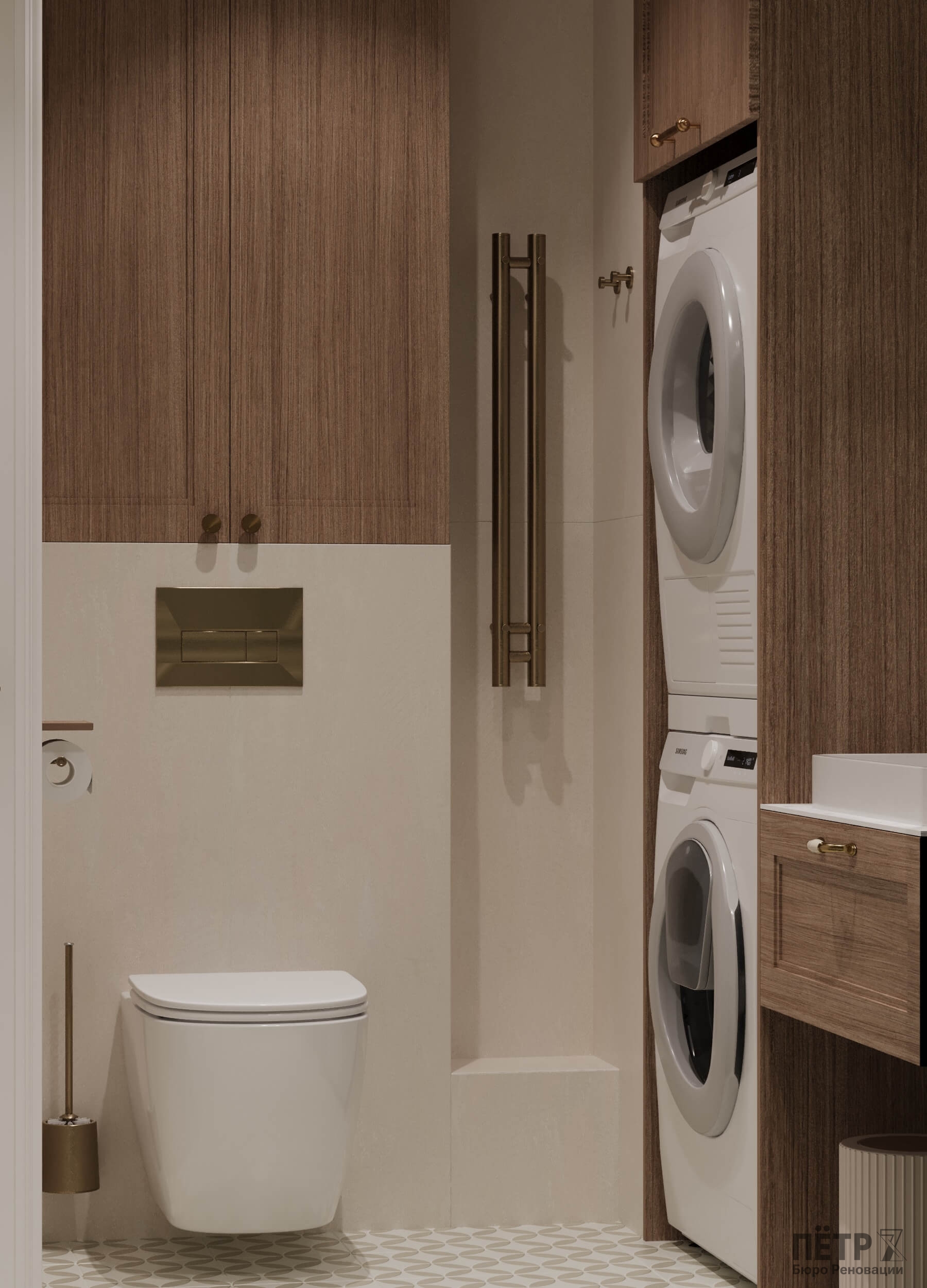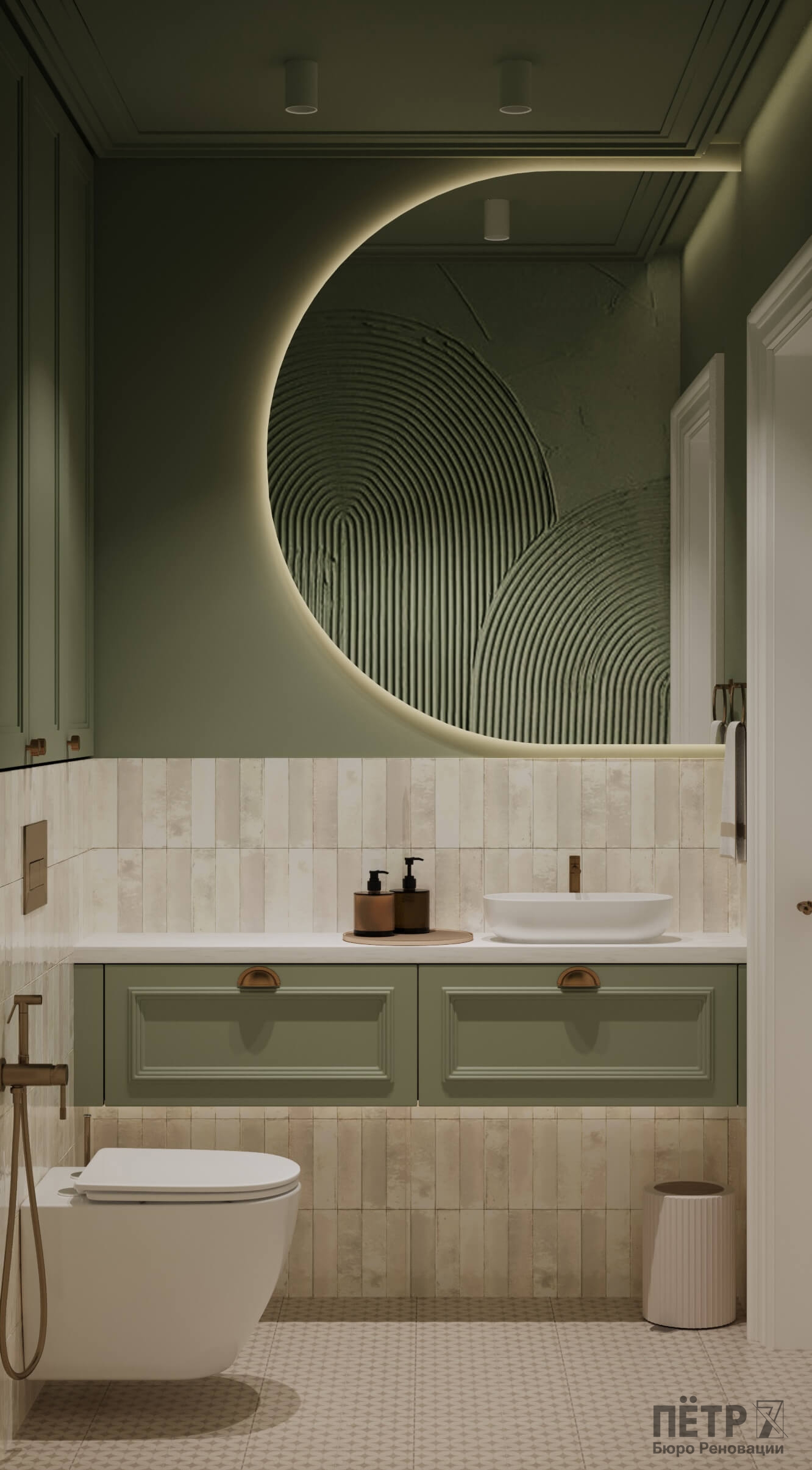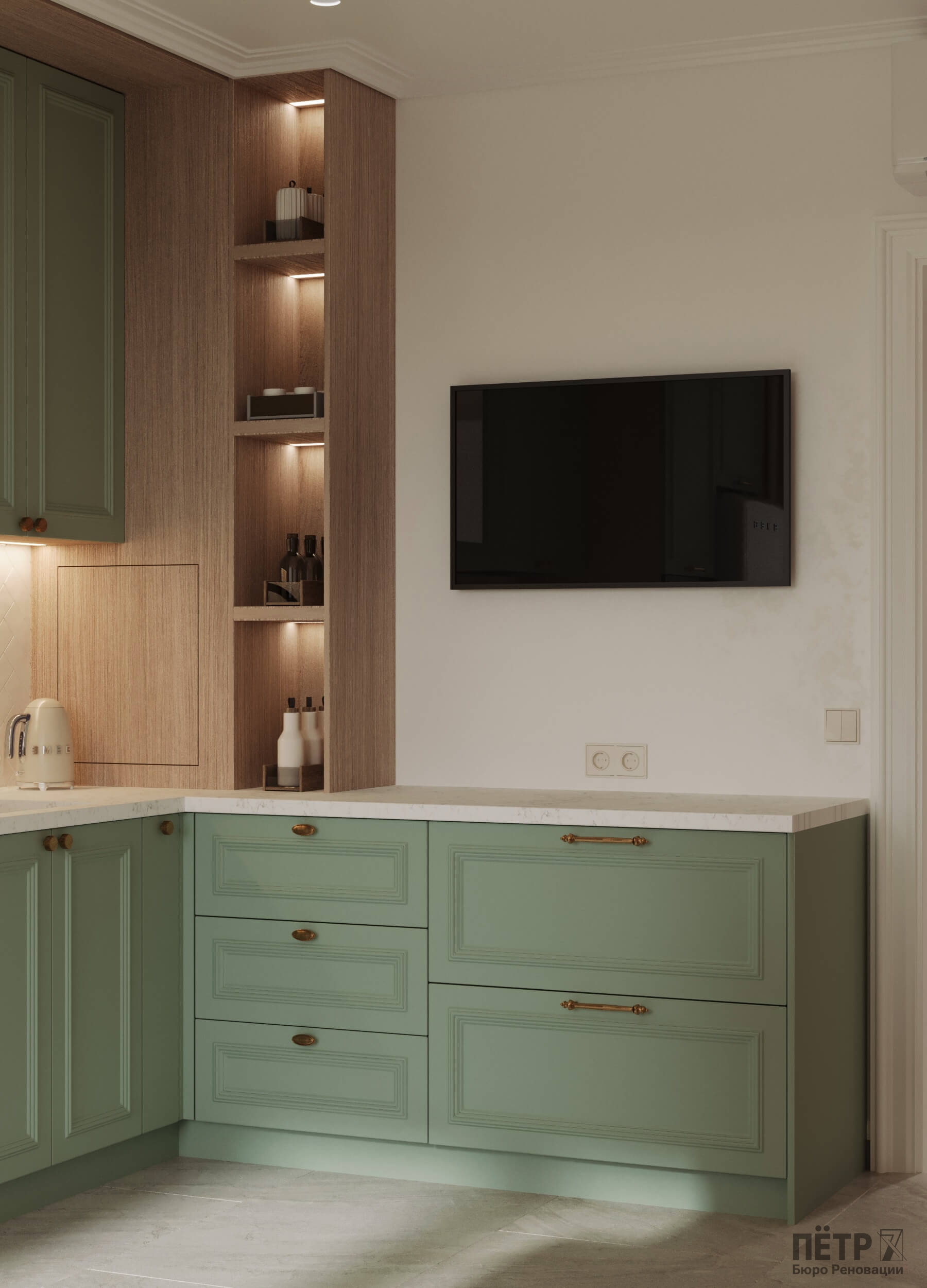 Главным инструментом стала цветовая палитра — именно она формирует характер каждой комнаты. Медные акценты в светильниках и фурнитуре добавили интерьеру тепла и благородства. В результате пространство получилось стильным, уютным и продуманным до мелочей.