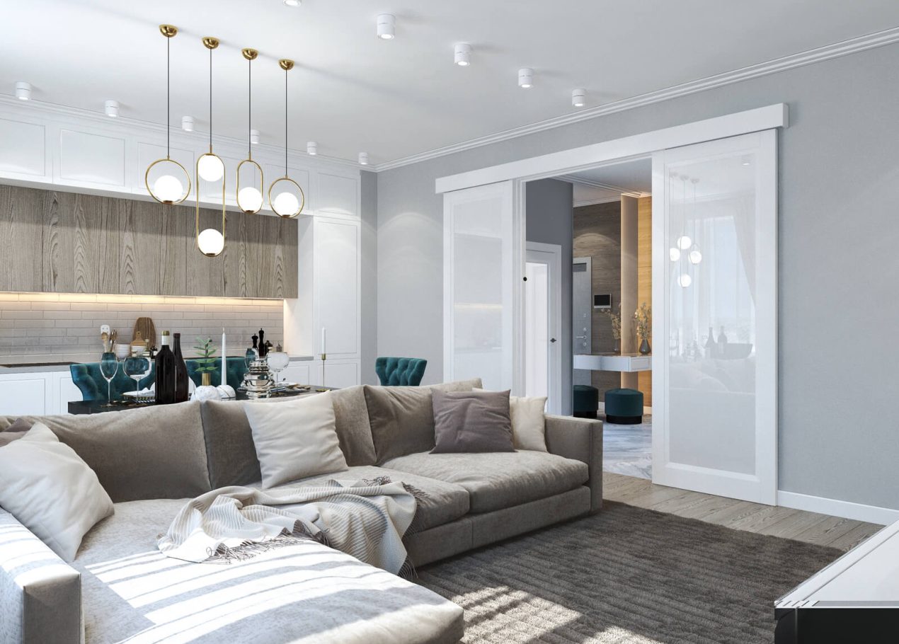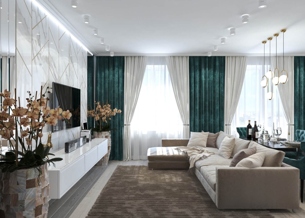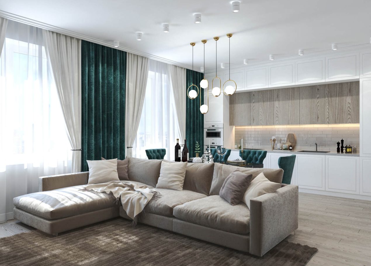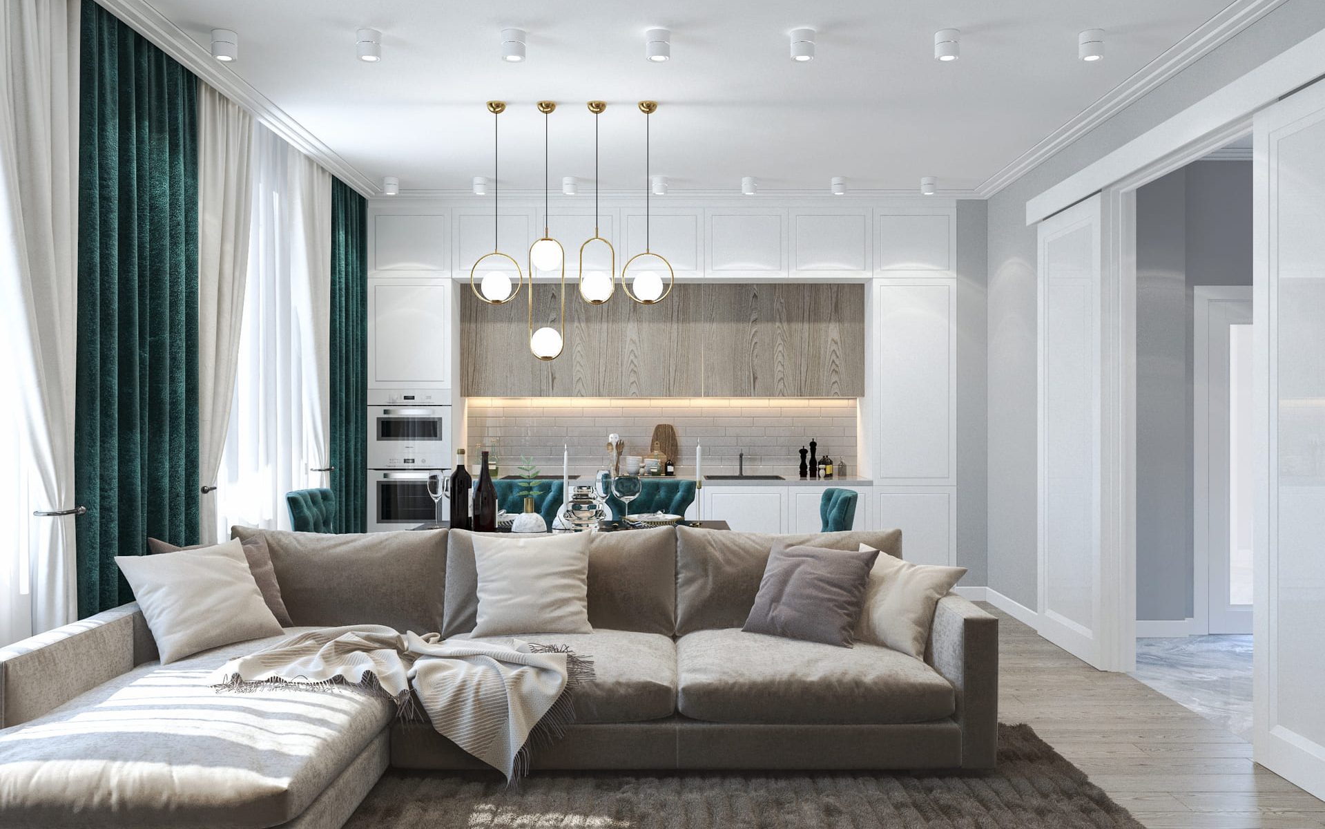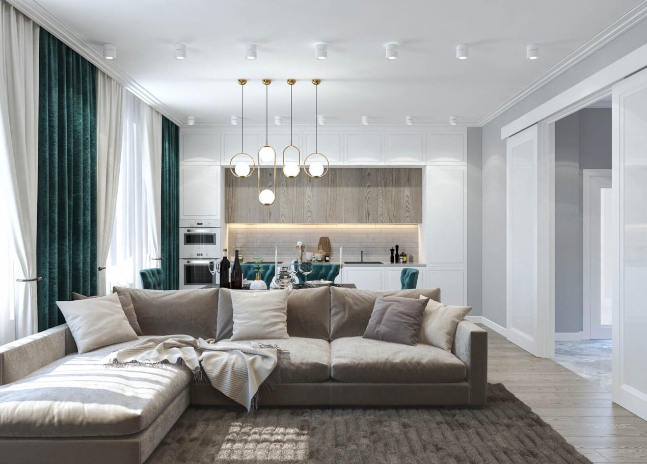Благодаря нейтральной базе интерьер легко трансформируется за счёт текстиля и декора — можно менять настроение пространства, не нарушая общей гармонии. В итоге получилась элегантная, просторная квартира с выразительной гостиной зоной, идеально подходящей для приёма гостей.