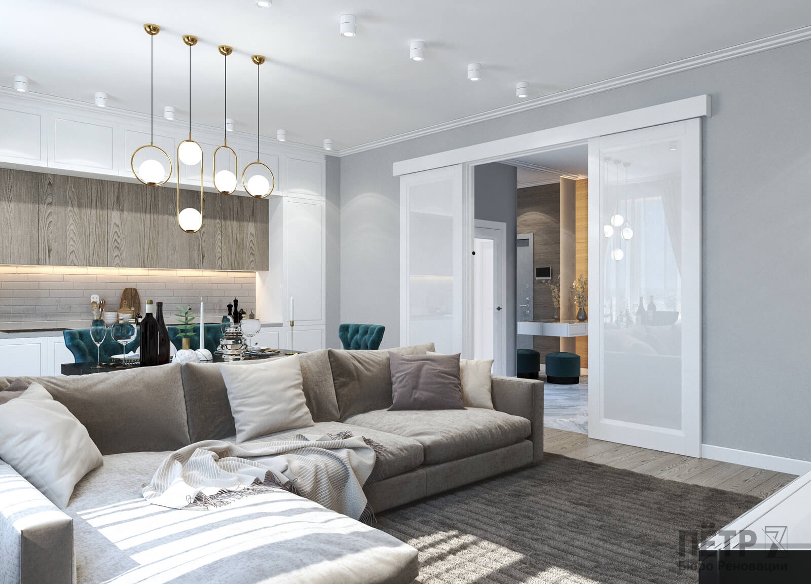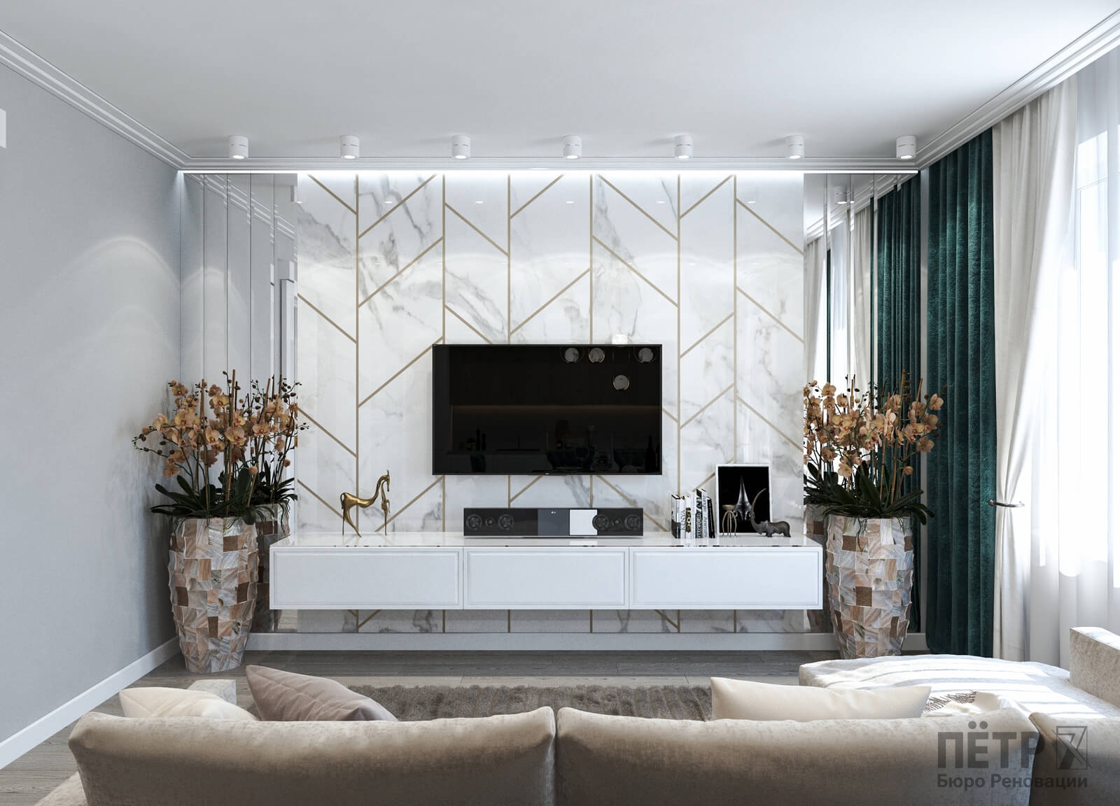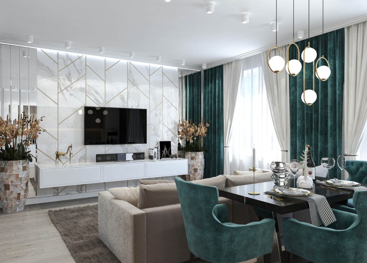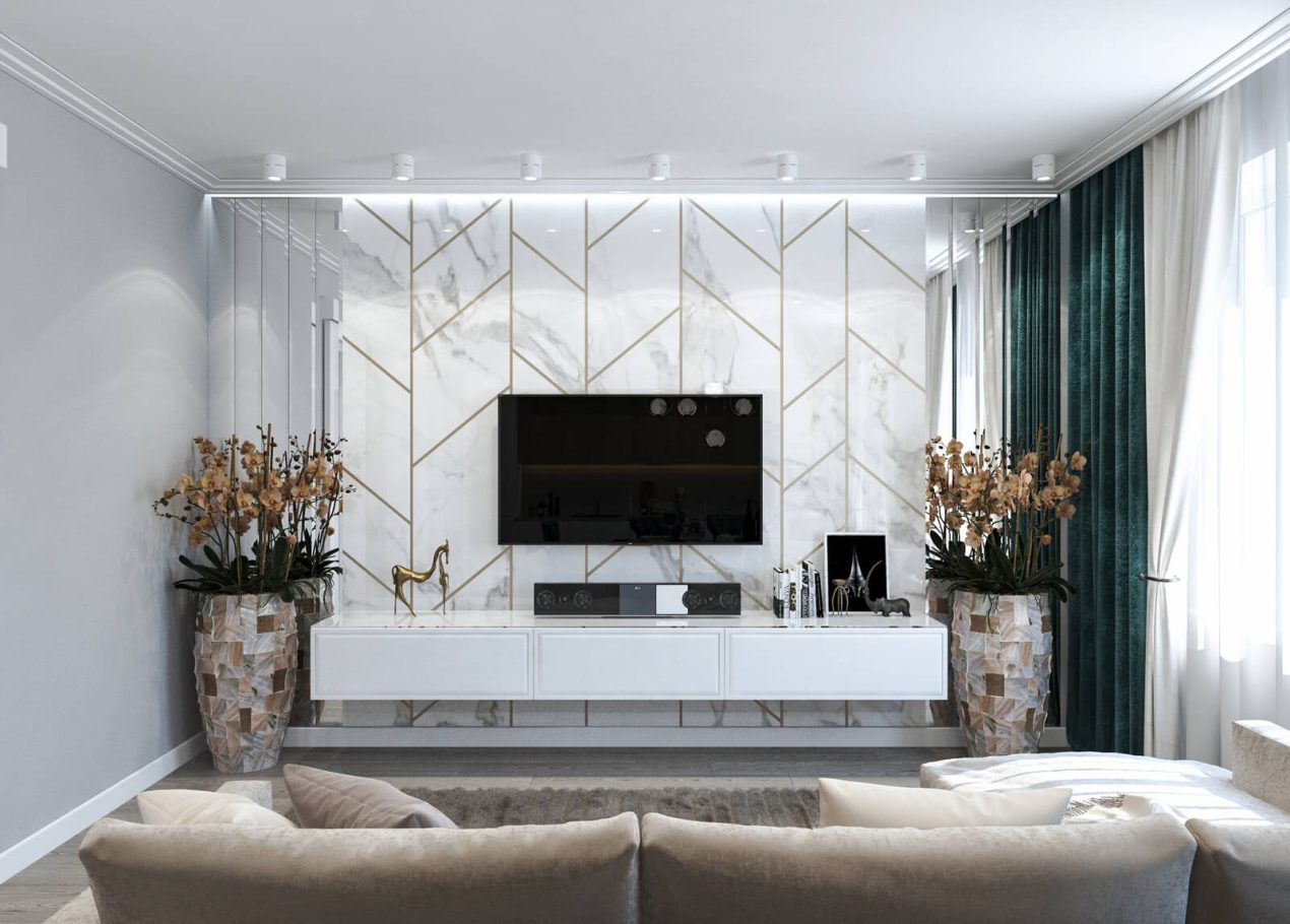 Благодаря нейтральной базе интерьер легко трансформируется за счёт текстиля и декора — можно менять настроение пространства, не нарушая общей гармонии. В итоге получилась элегантная, просторная квартира с выразительной гостиной зоной, идеально подходящей для приёма гостей.