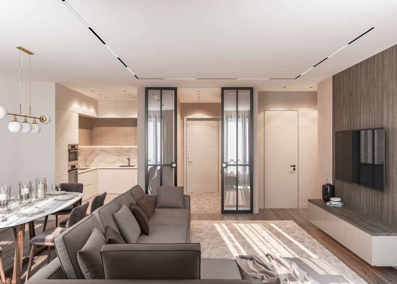 Интерьер квартиры в тёплой бежевой палитре