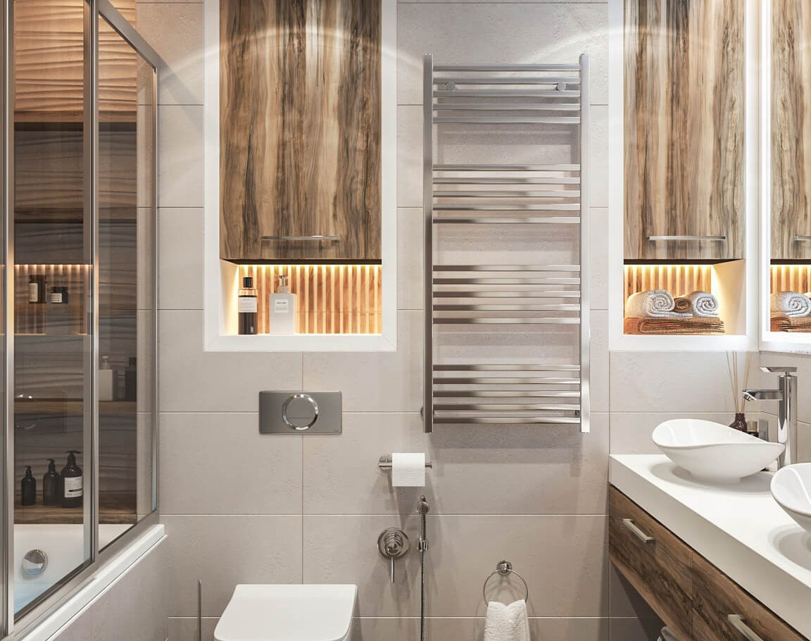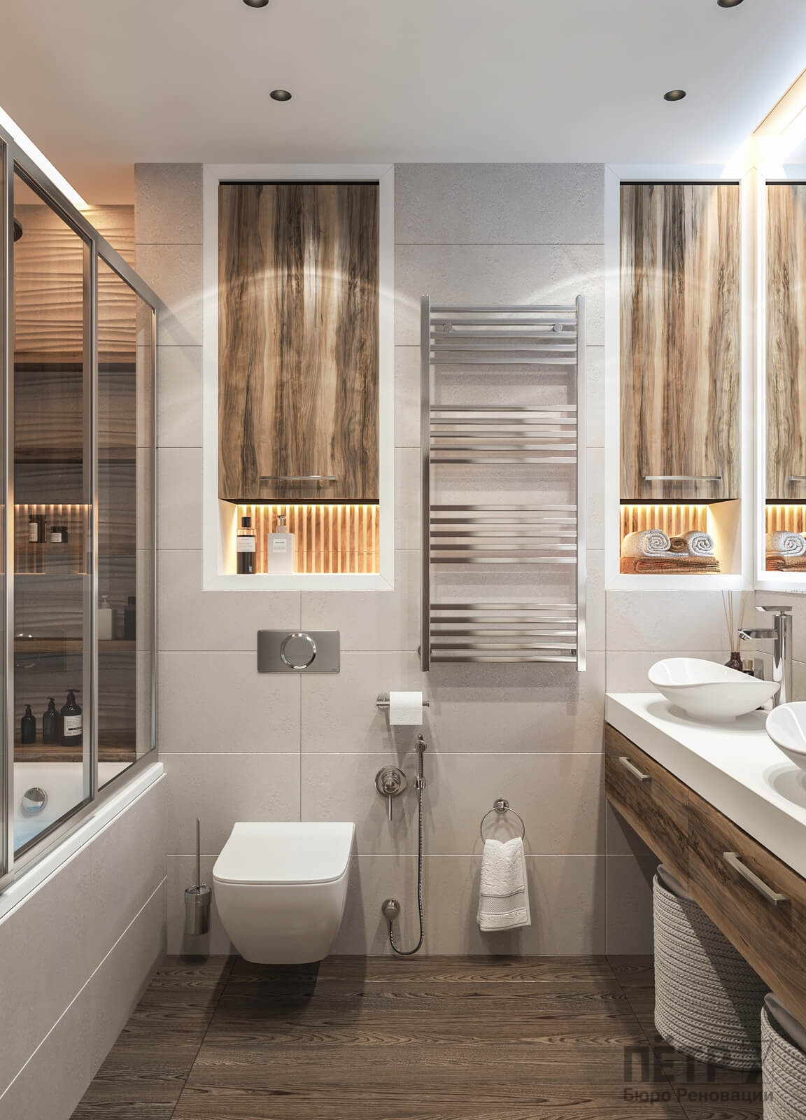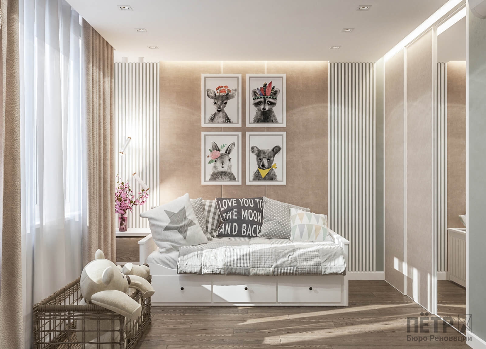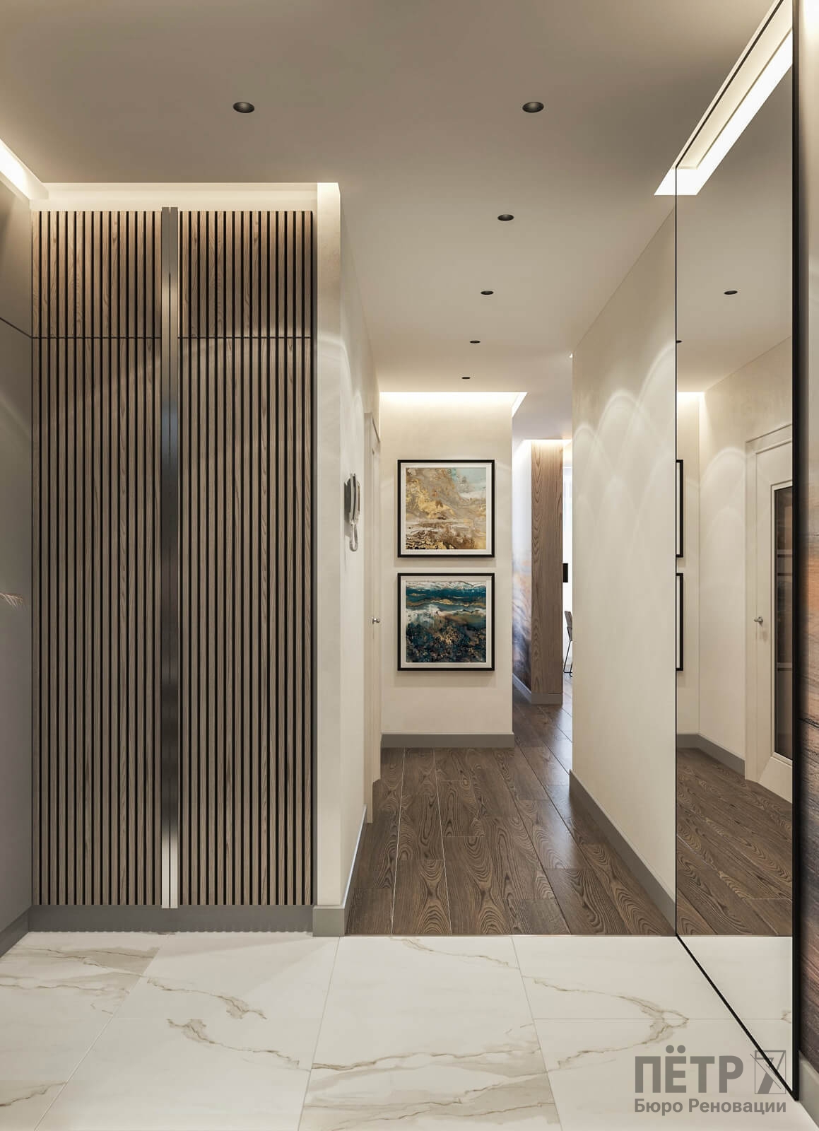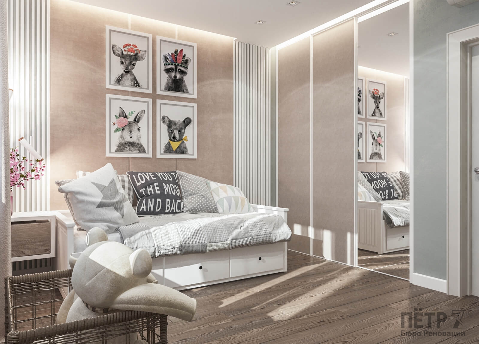 В спальне нам удалось грамотно организовать компактную гардеробную, не перегружая комнату. Интерьер получился лаконичным, функциональным и продуманным до деталей — каждый квадратный метр работает эффективно и соответствует запросам владельцев.