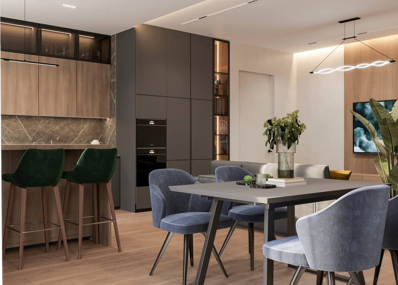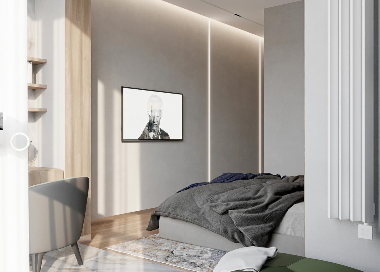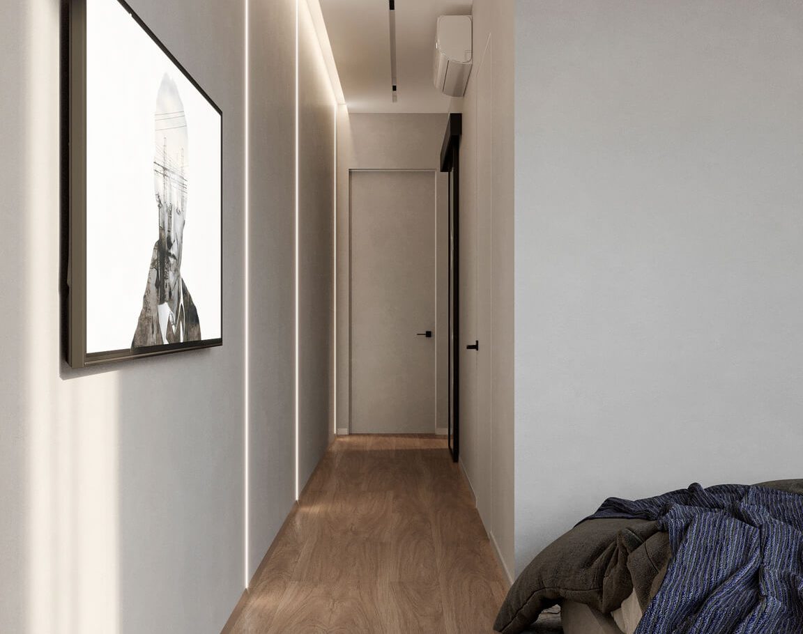 Каждое помещение проработано детально: от цветовой палитры до сценариев освещения и функционального наполнения. В результате получился гармоничный, цельный интерьер, где современная лаконичность сочетается с уютом и продуманной эргономикой.