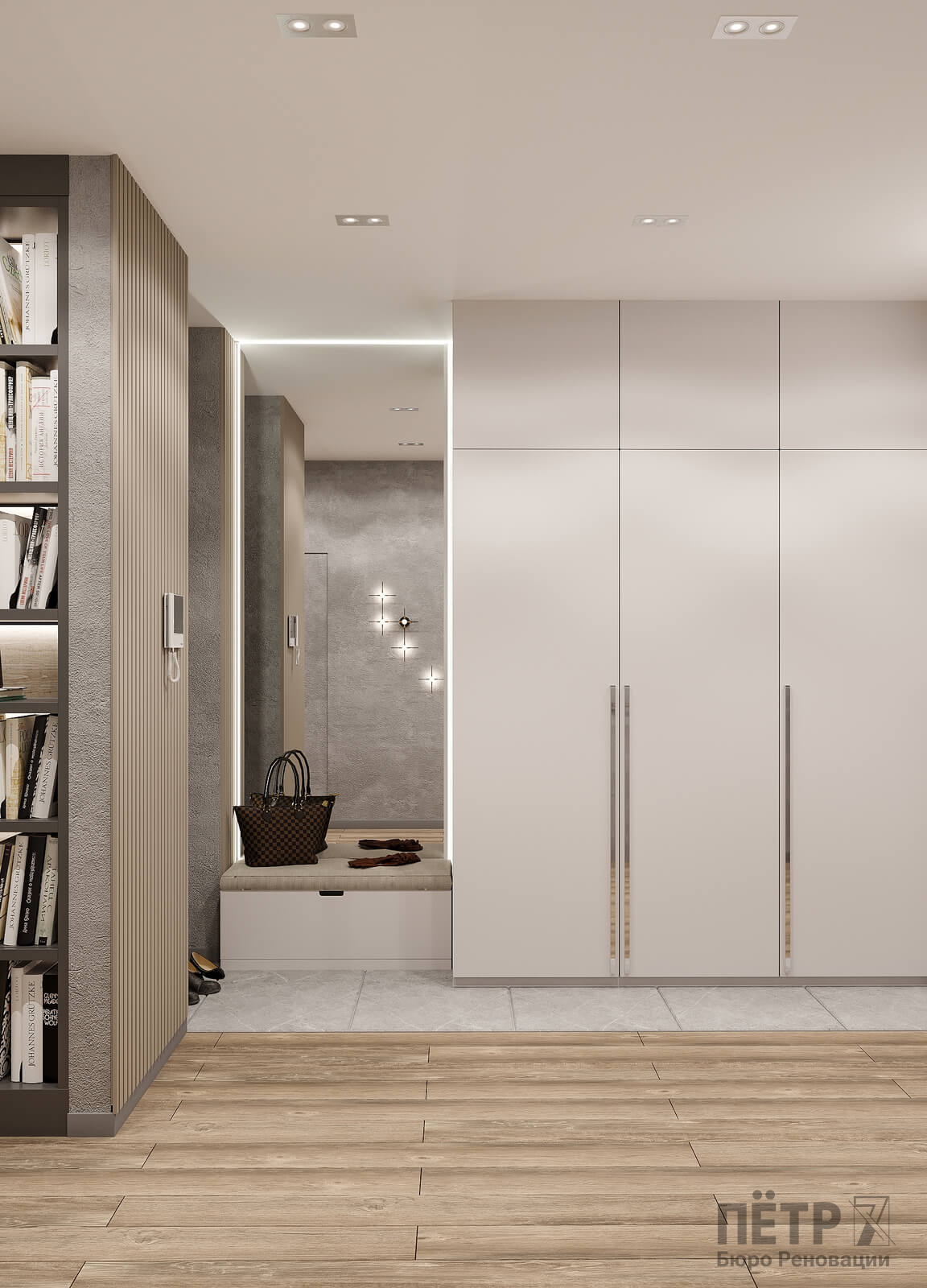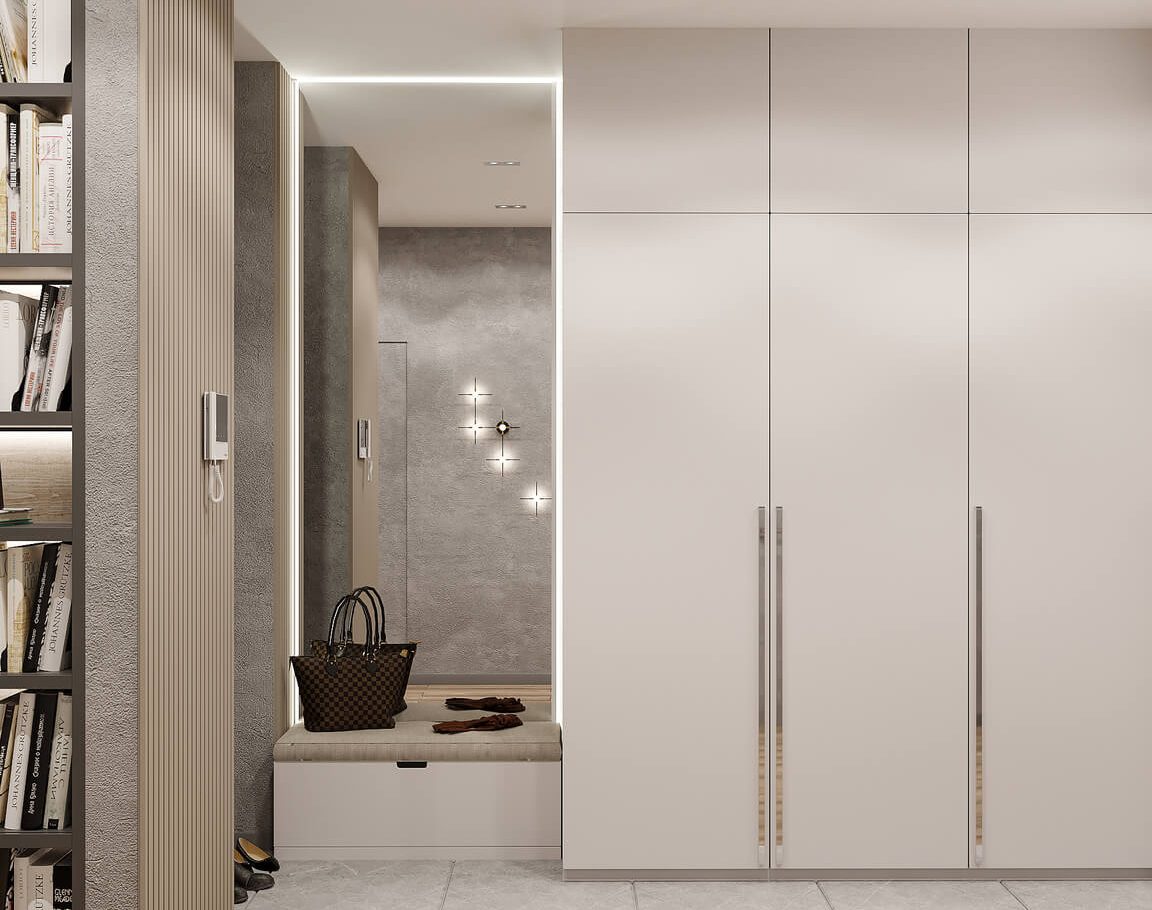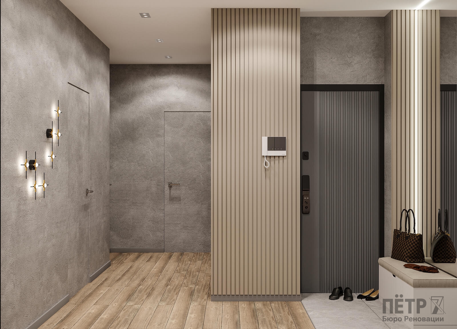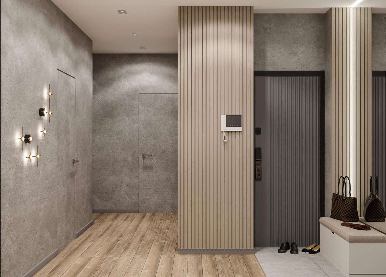 В этом проекте мы построили интерьер на спокойной нейтральной базе — светлые стены, сочетание покраски и фактурной декоративной штукатурки, аккуратно введённые рельефные панели под покраску. Нам было важно сохранить ощущение лёгкости и визуального простора.