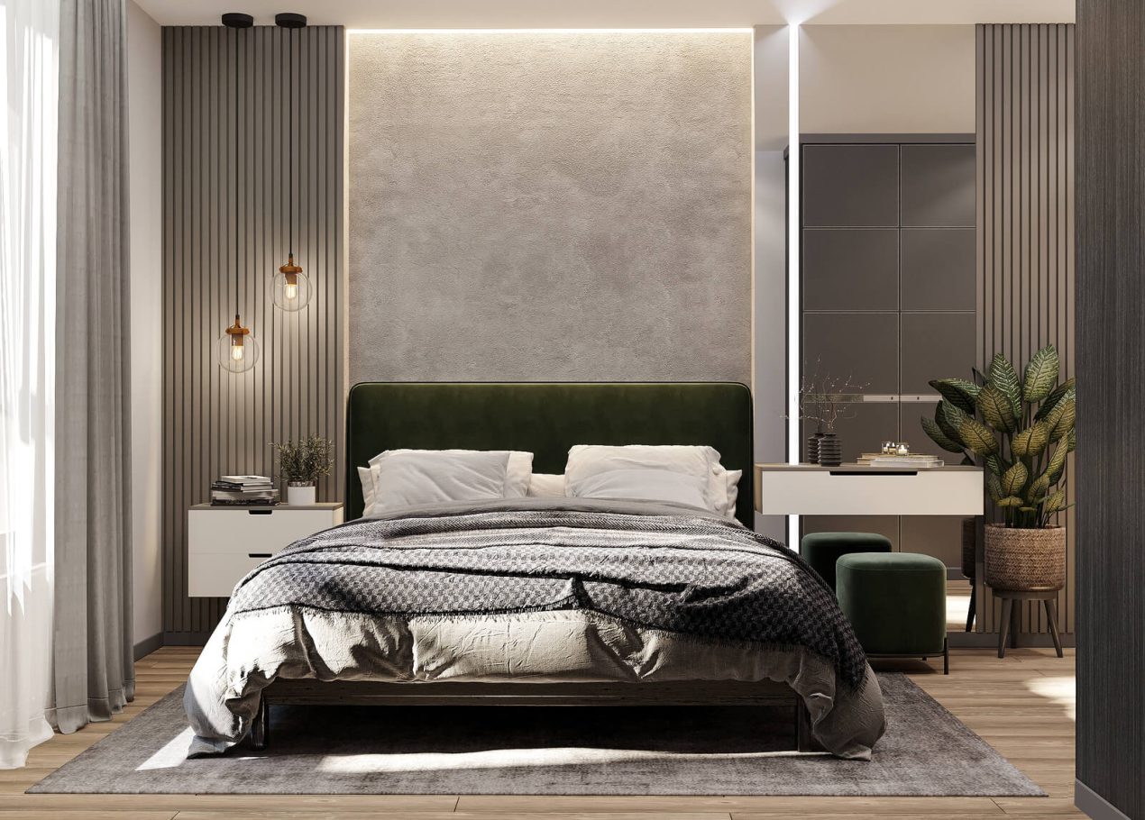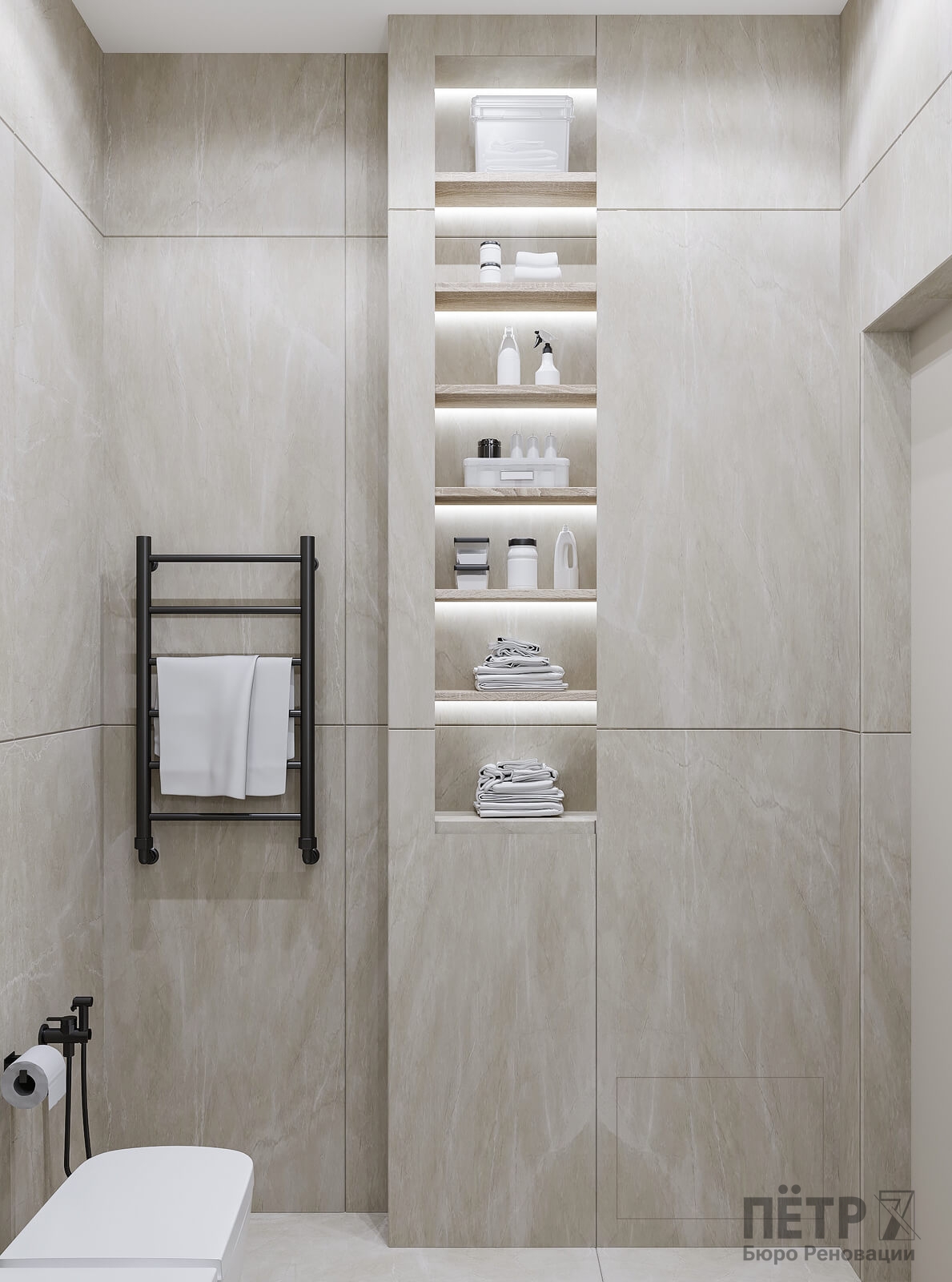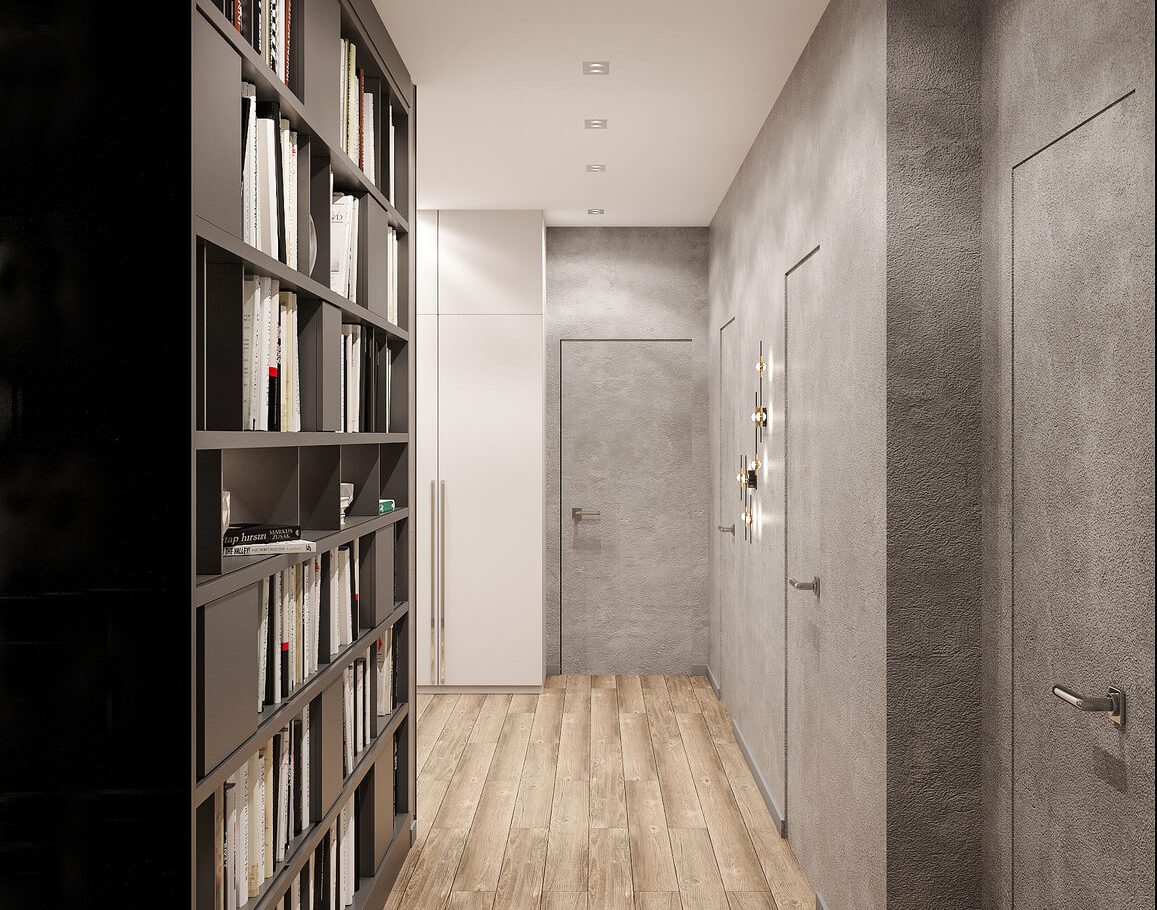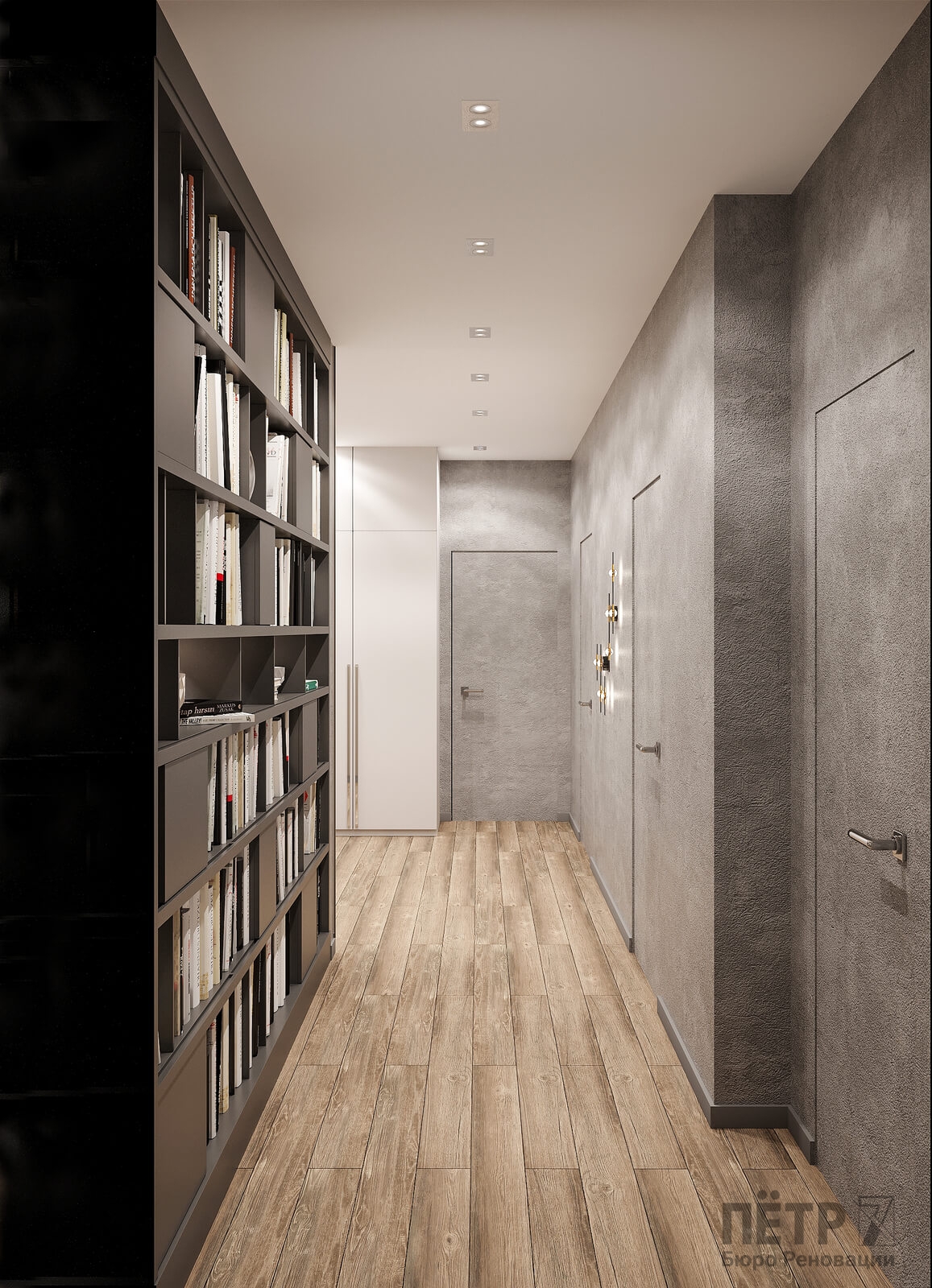 В этом проекте мы построили интерьер на спокойной нейтральной базе — светлые стены, сочетание покраски и фактурной декоративной штукатурки, аккуратно введённые рельефные панели под покраску. Нам было важно сохранить ощущение лёгкости и визуального простора.