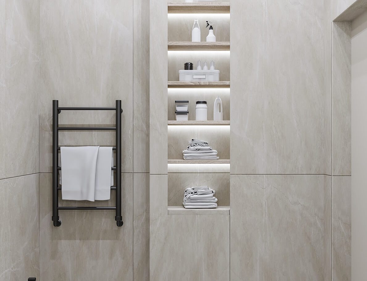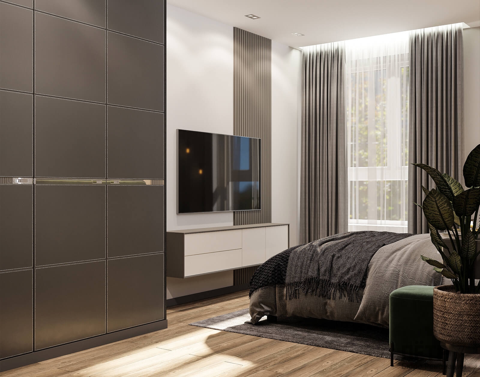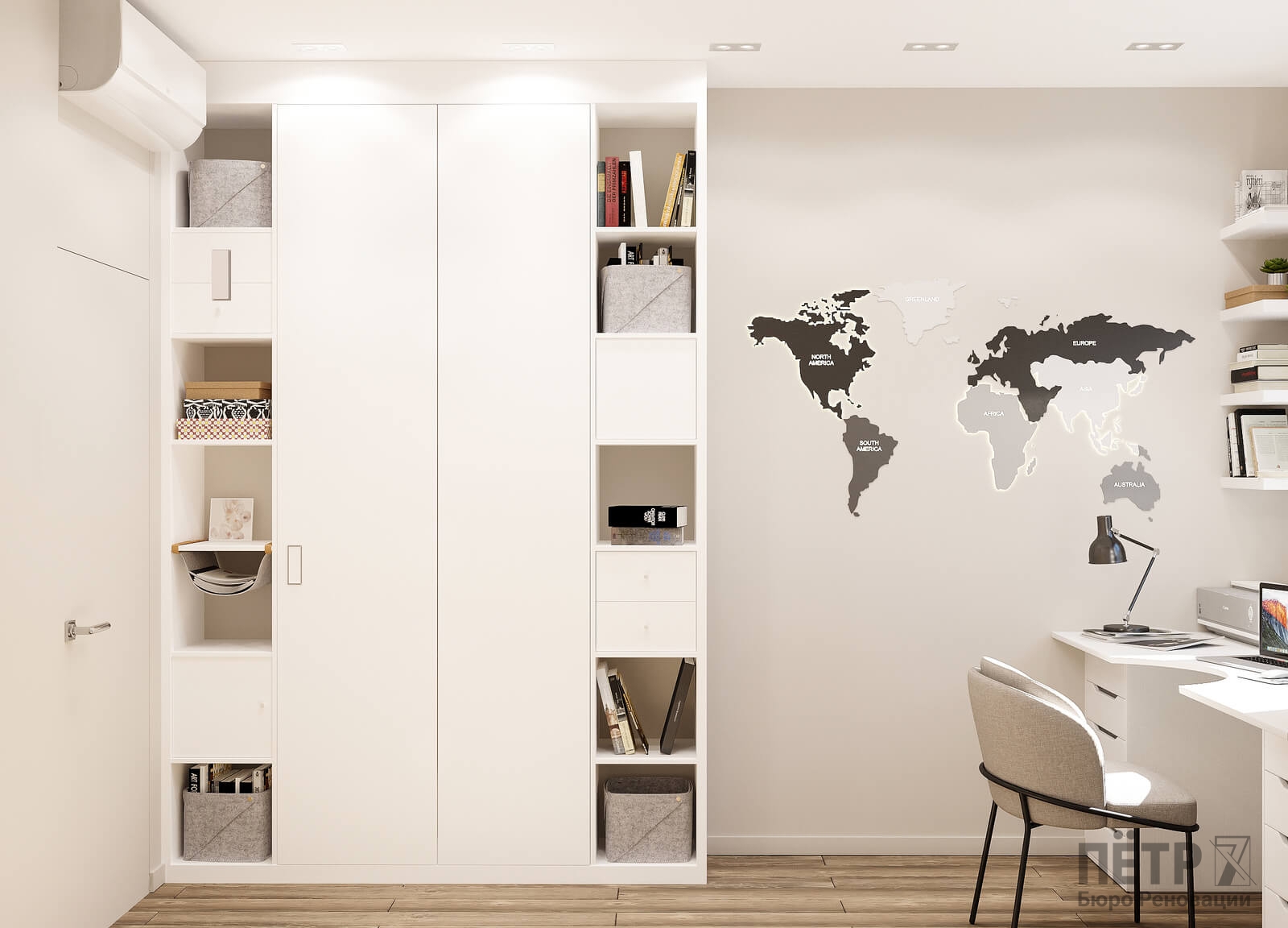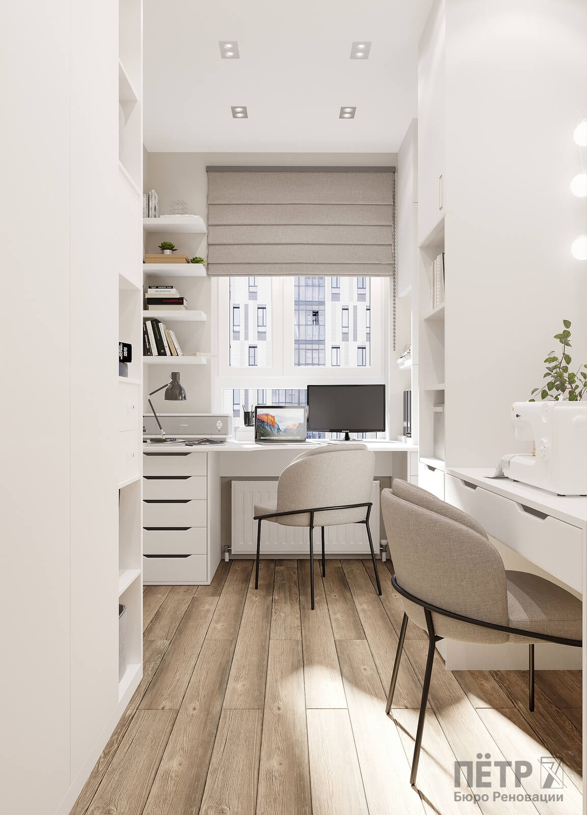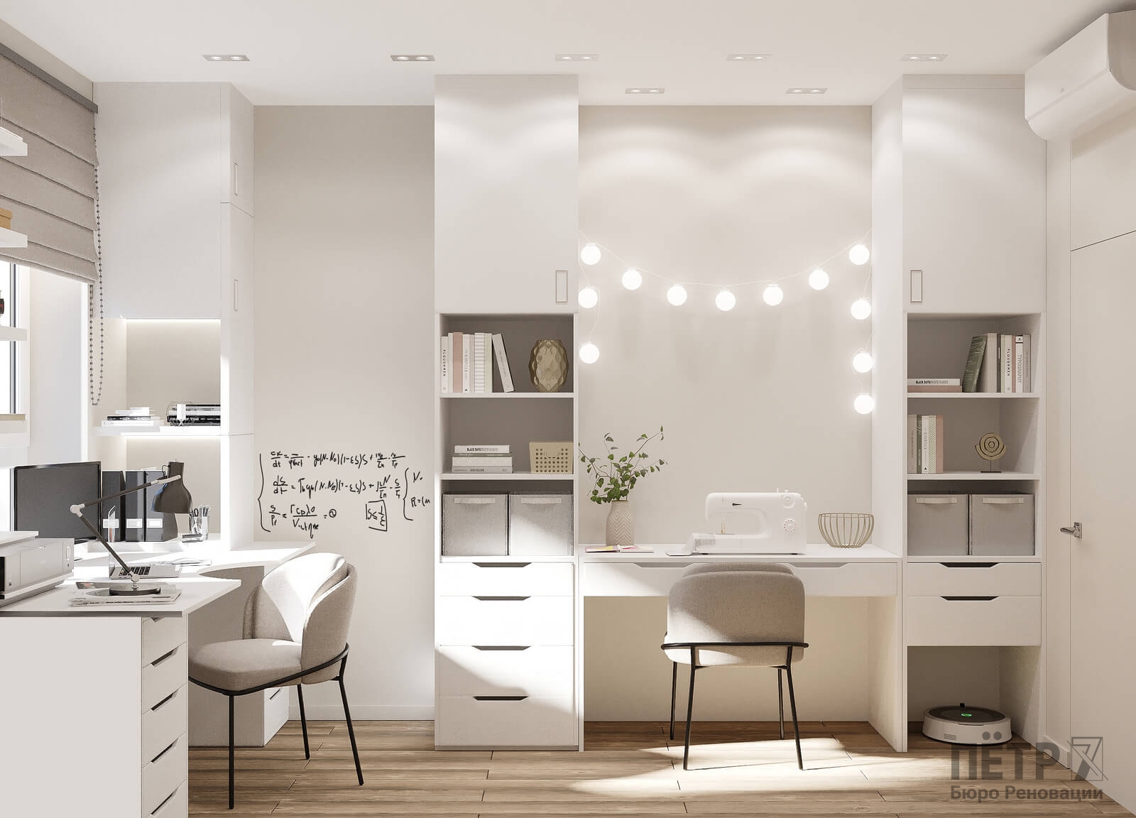 В этом проекте мы построили интерьер на спокойной нейтральной базе — светлые стены, сочетание покраски и фактурной декоративной штукатурки, аккуратно введённые рельефные панели под покраску. Нам было важно сохранить ощущение лёгкости и визуального простора.