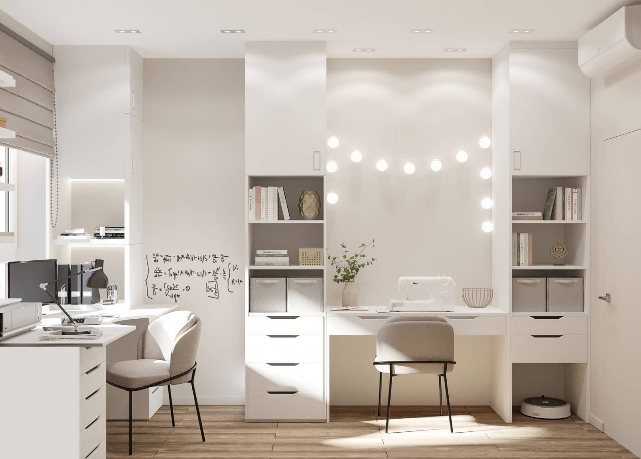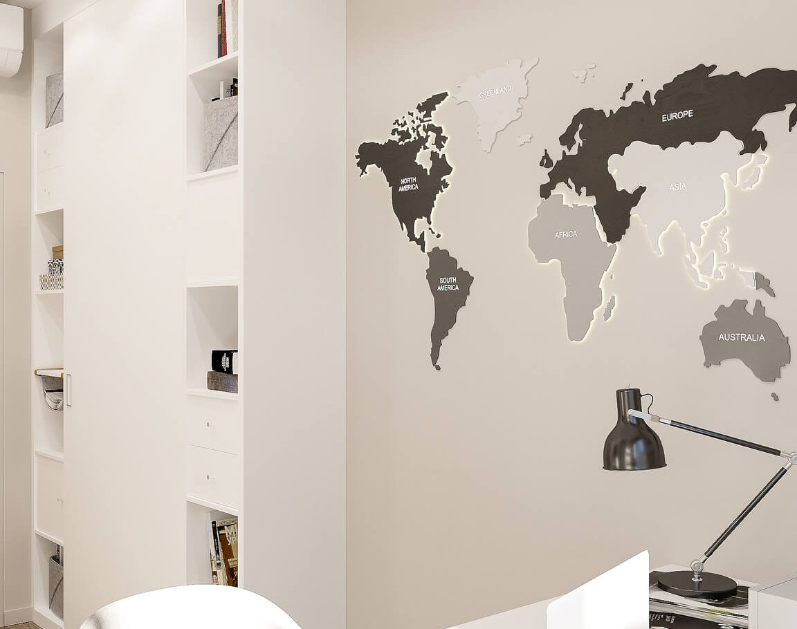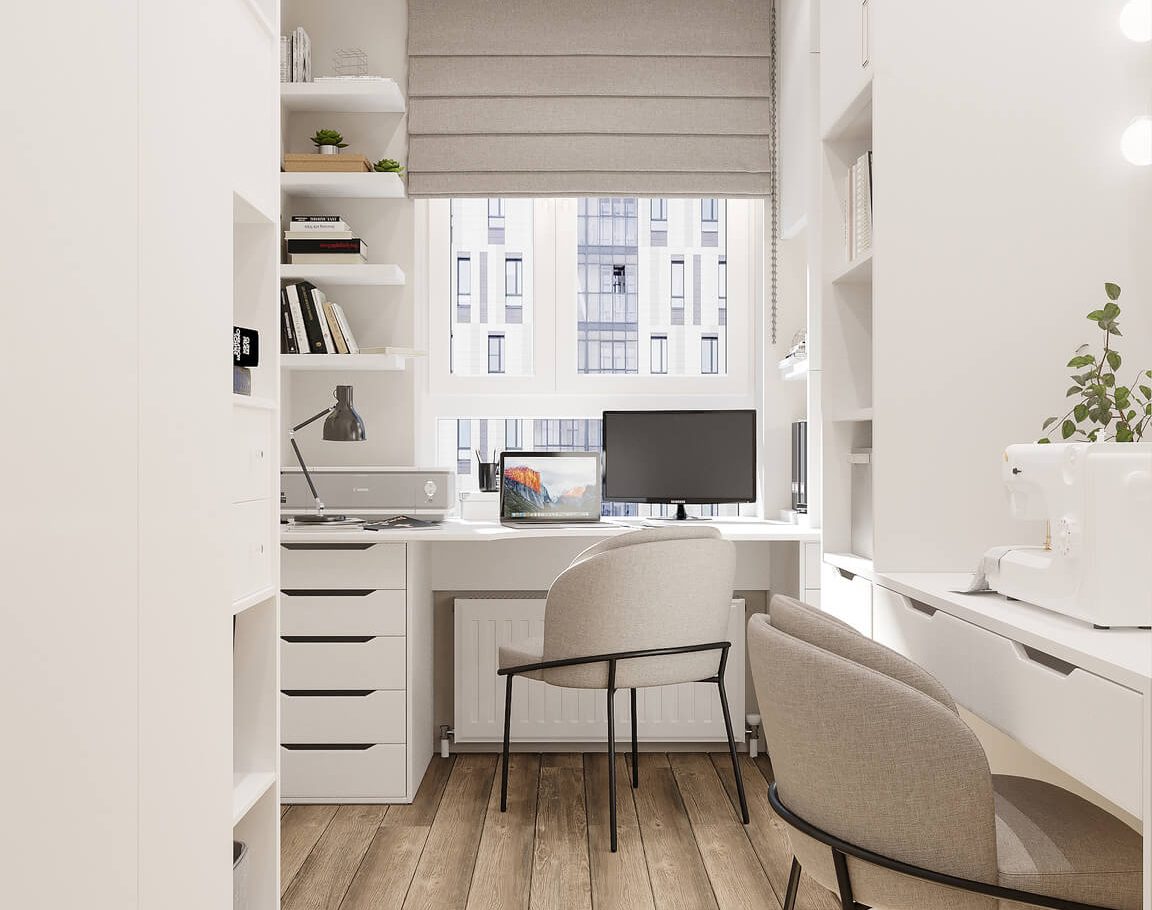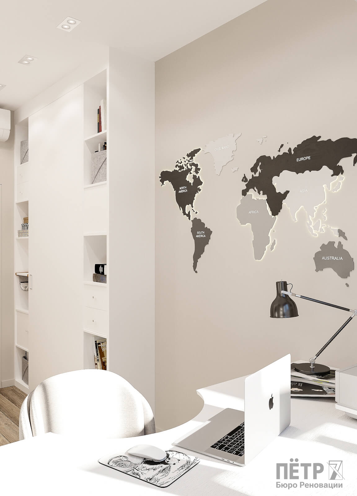 В этом проекте мы построили интерьер на спокойной нейтральной базе — светлые стены, сочетание покраски и фактурной декоративной штукатурки, аккуратно введённые рельефные панели под покраску. Нам было важно сохранить ощущение лёгкости и визуального простора.
