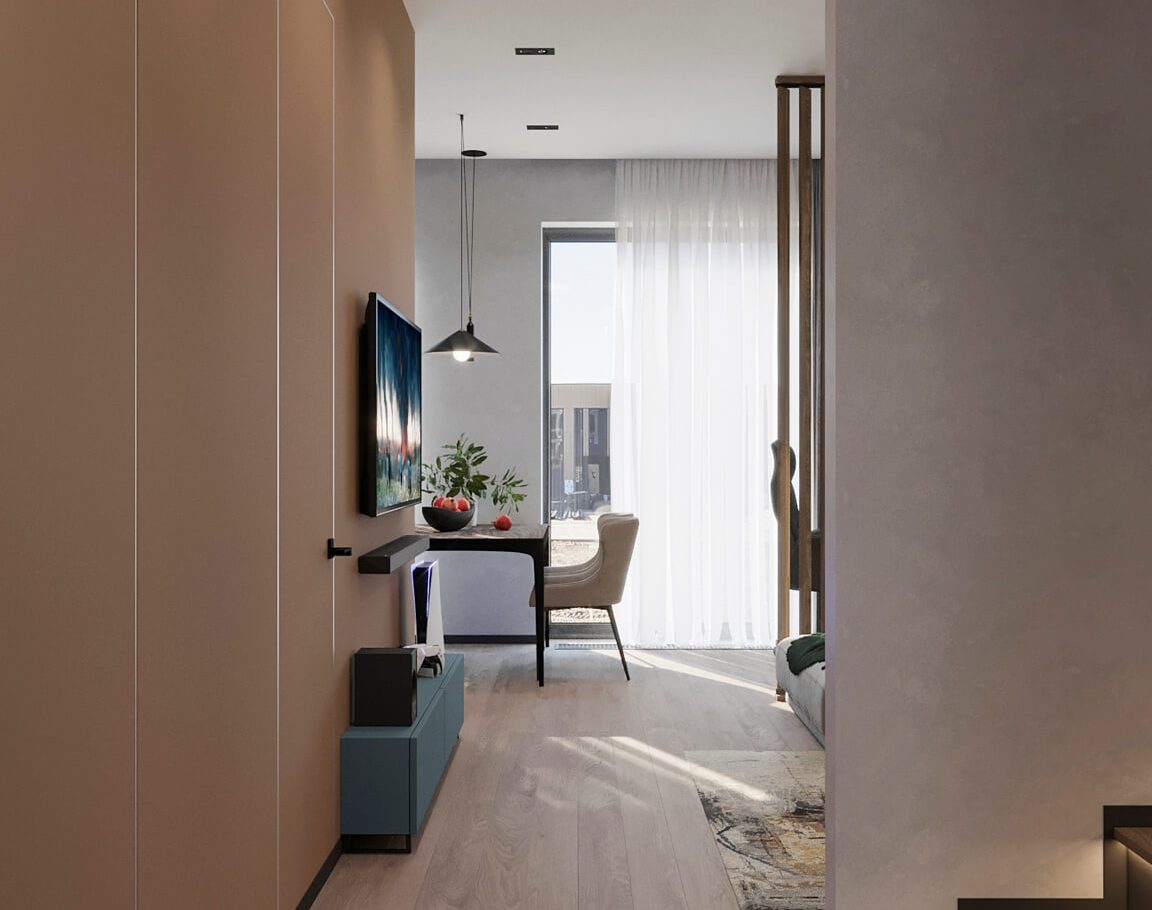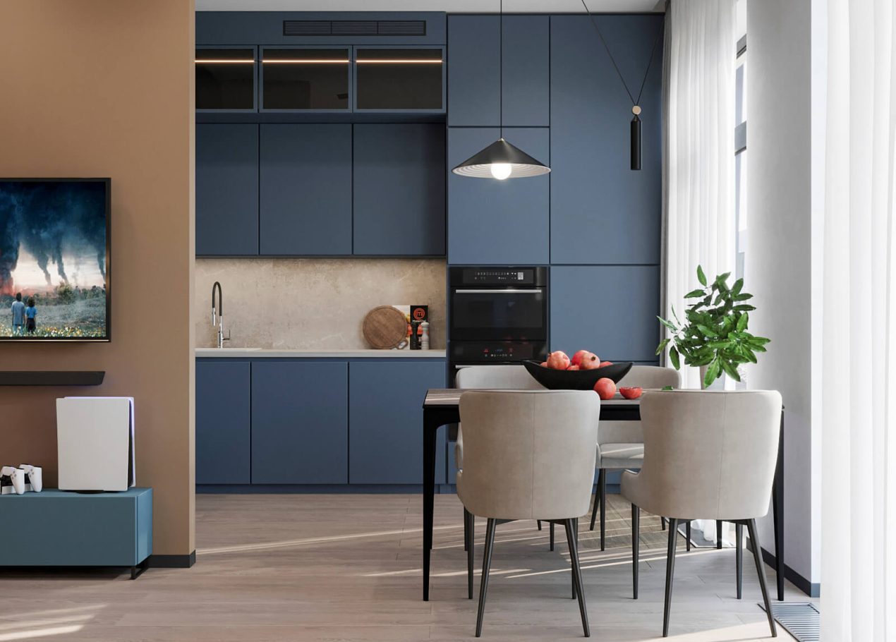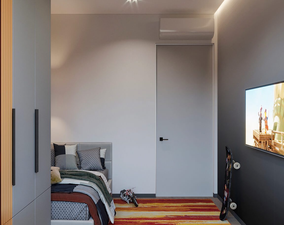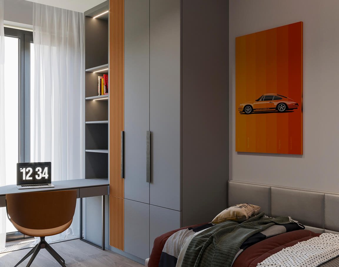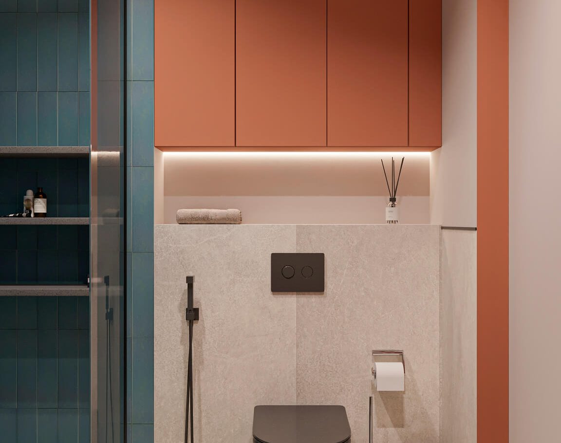 В этом проекте мы смело работали с цветом и фактурами, подбирая для каждой комнаты индивидуальные сочетания оттенков. При этом функциональность оставалась приоритетом: планировка и наполнение продуманы с учётом габаритов мебели и техники, чтобы пространство было удобным для жизни.