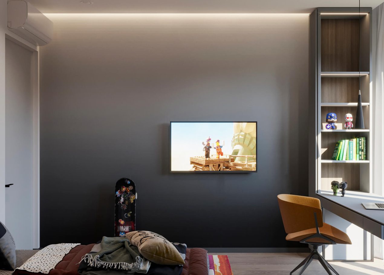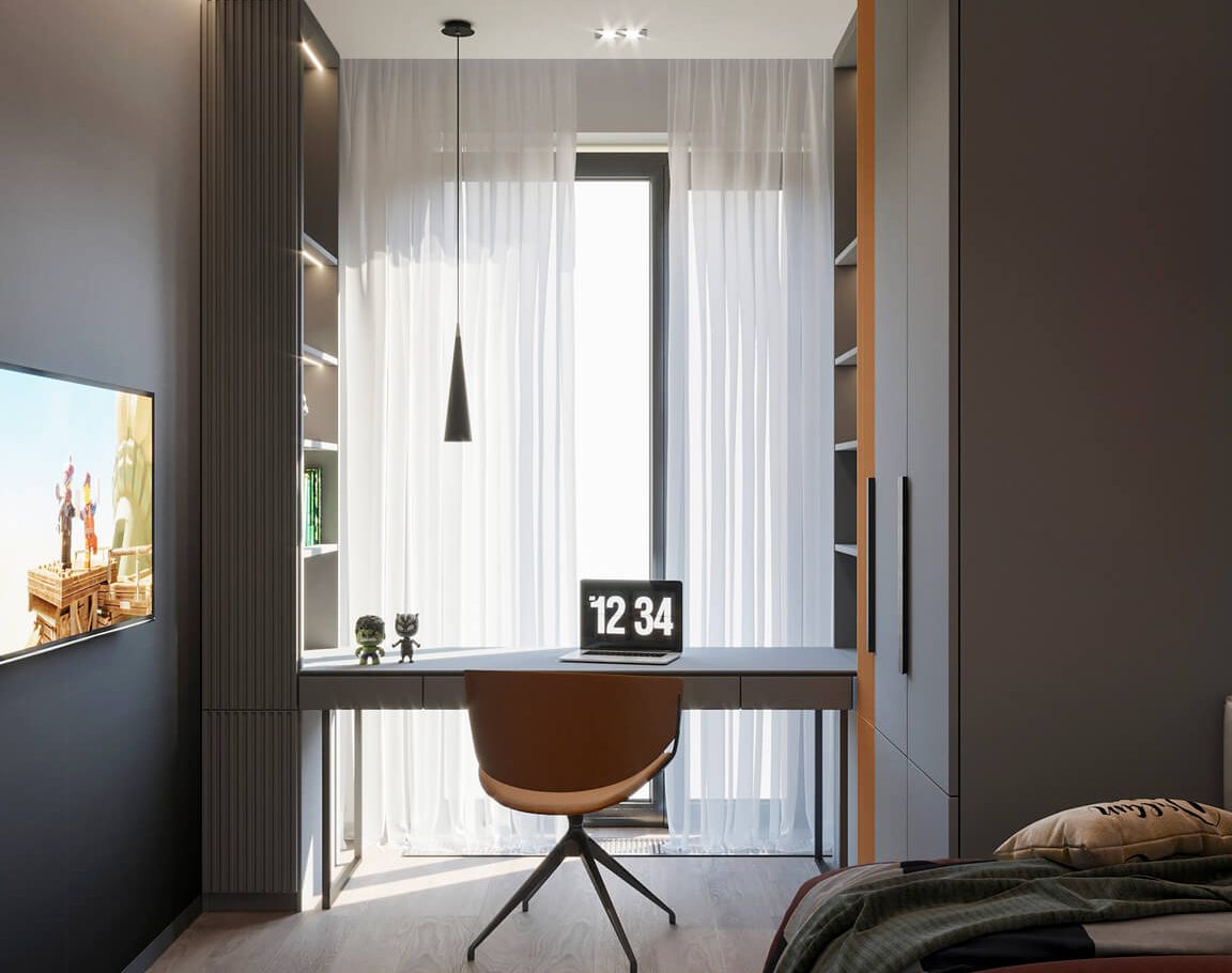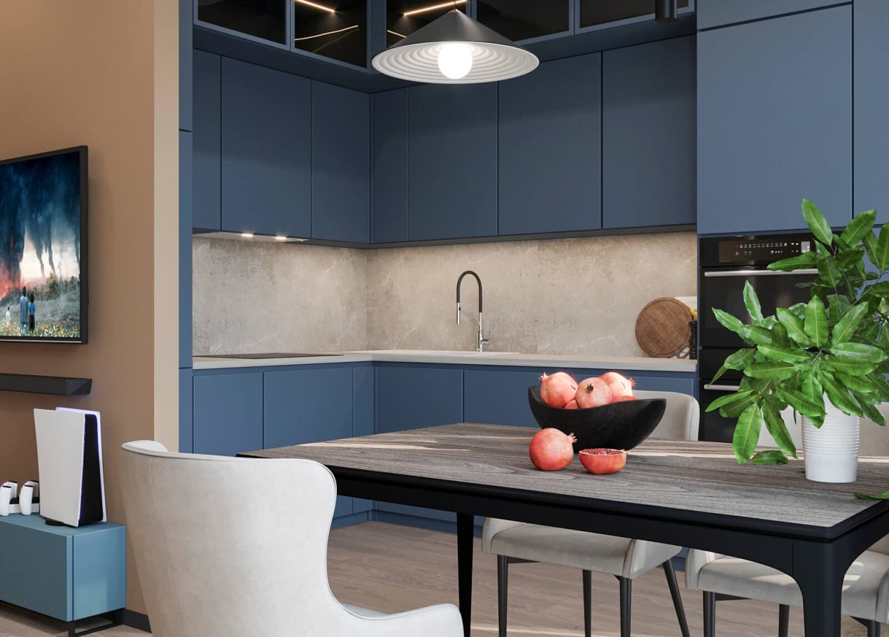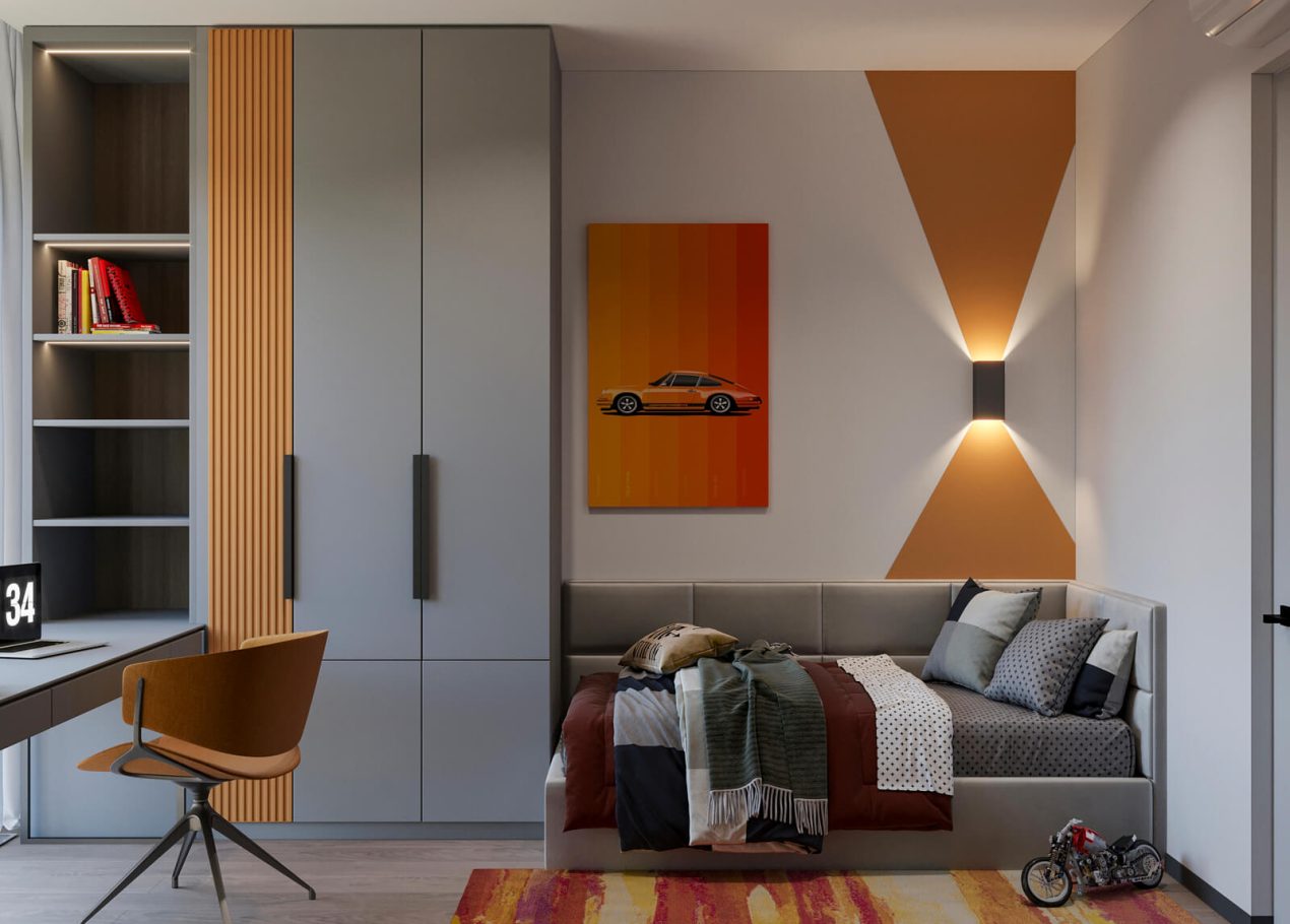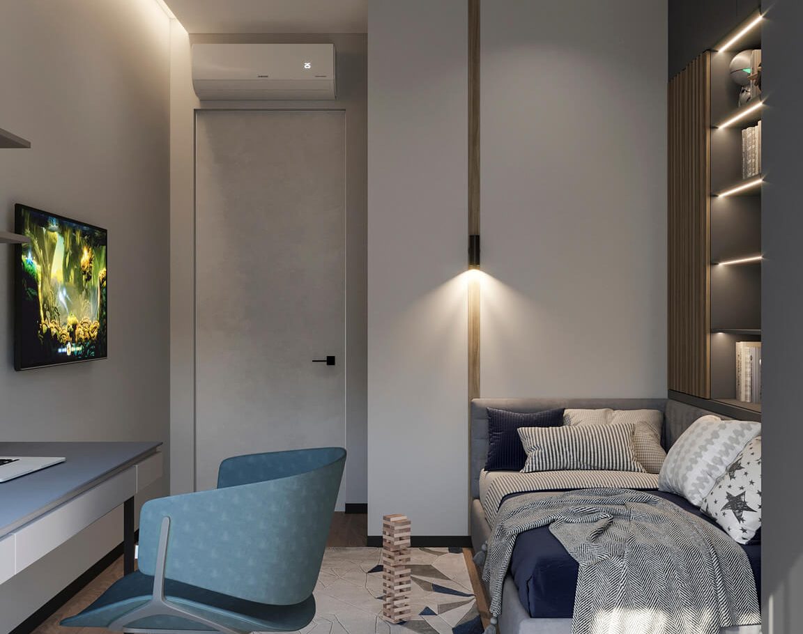 В этом проекте мы смело работали с цветом и фактурами, подбирая для каждой комнаты индивидуальные сочетания оттенков. При этом функциональность оставалась приоритетом: планировка и наполнение продуманы с учётом габаритов мебели и техники, чтобы пространство было удобным для жизни.