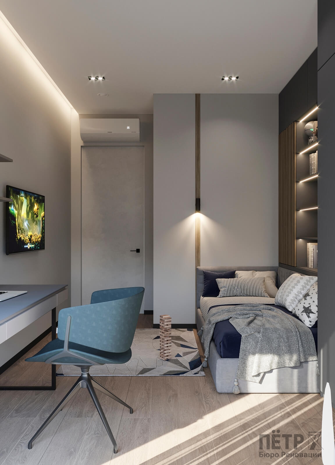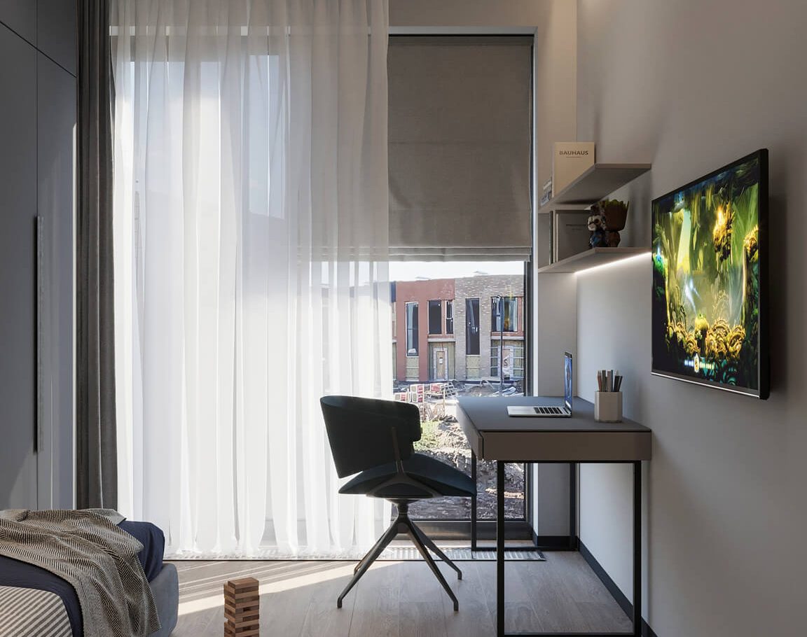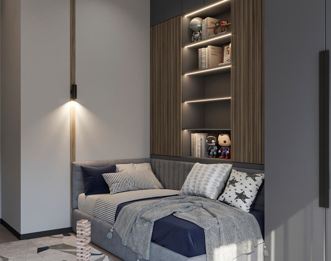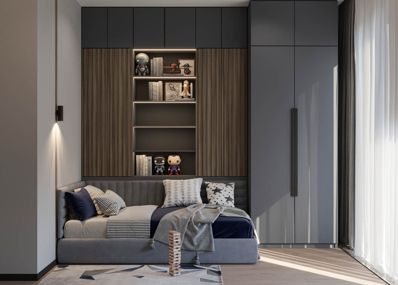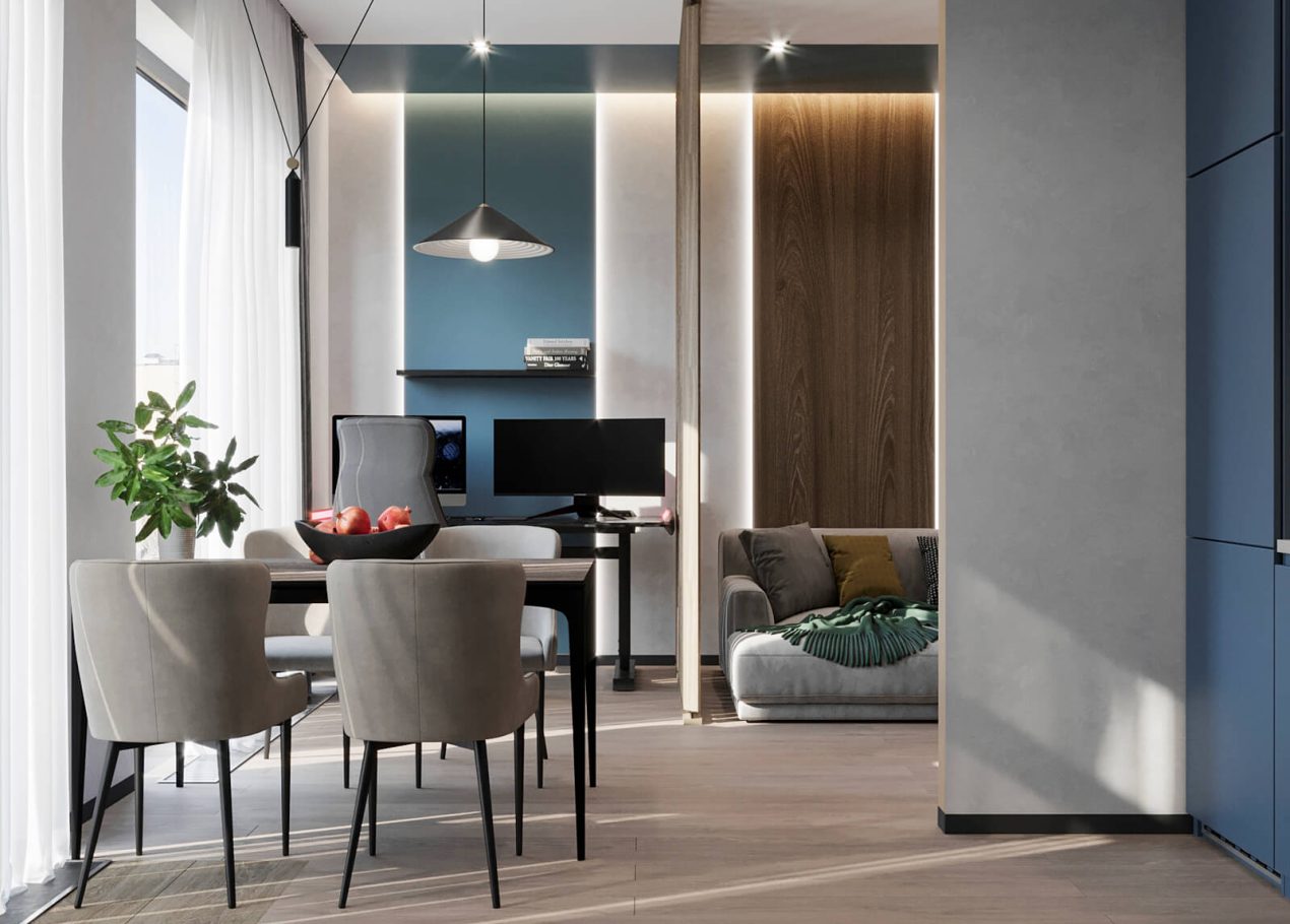 В этом проекте мы смело работали с цветом и фактурами, подбирая для каждой комнаты индивидуальные сочетания оттенков. При этом функциональность оставалась приоритетом: планировка и наполнение продуманы с учётом габаритов мебели и техники, чтобы пространство было удобным для жизни.