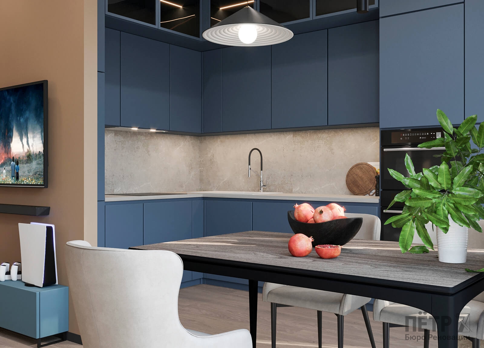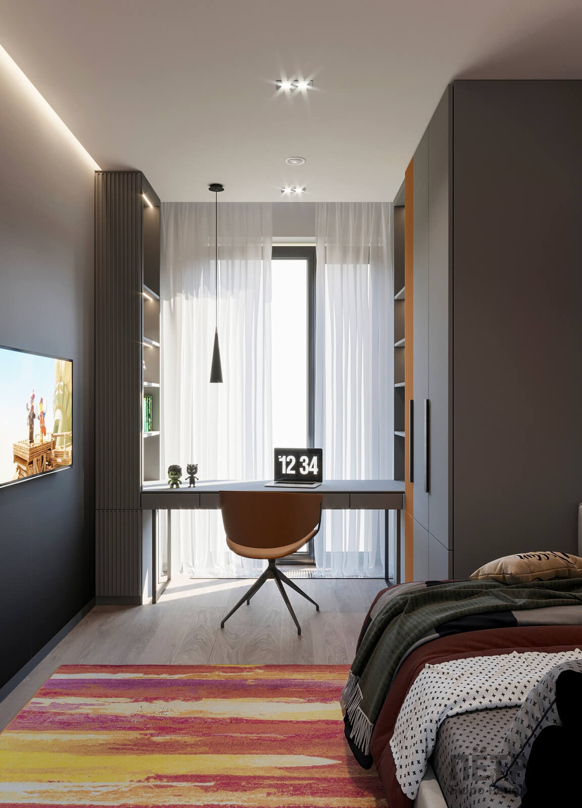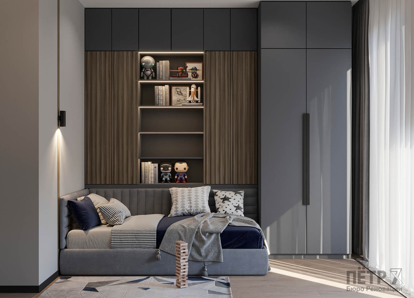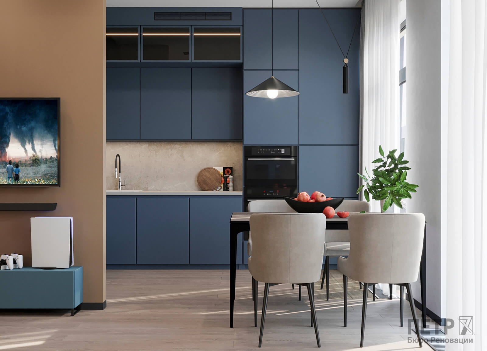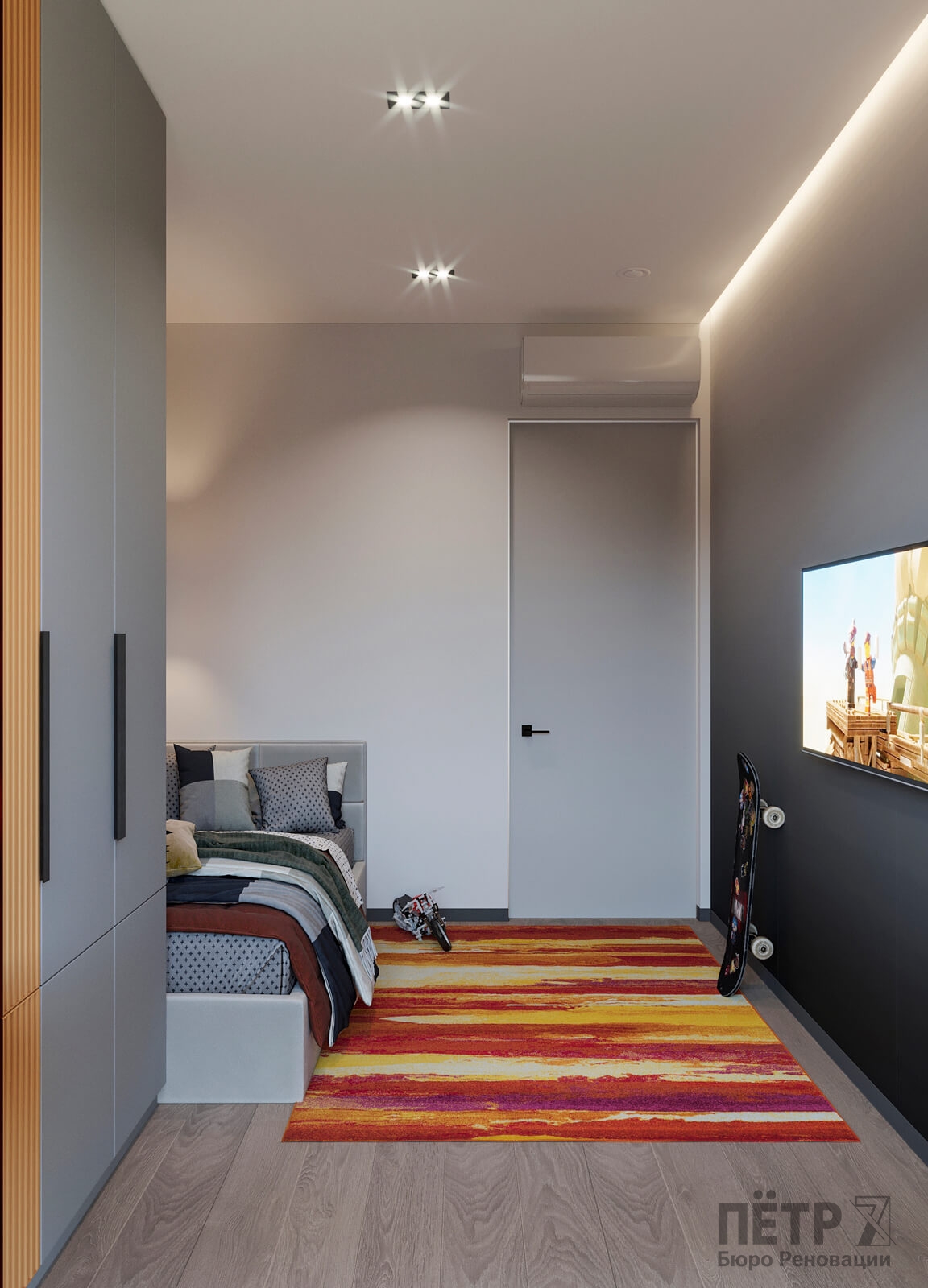 В этом проекте мы смело работали с цветом и фактурами, подбирая для каждой комнаты индивидуальные сочетания оттенков. При этом функциональность оставалась приоритетом: планировка и наполнение продуманы с учётом габаритов мебели и техники, чтобы пространство было удобным для жизни.