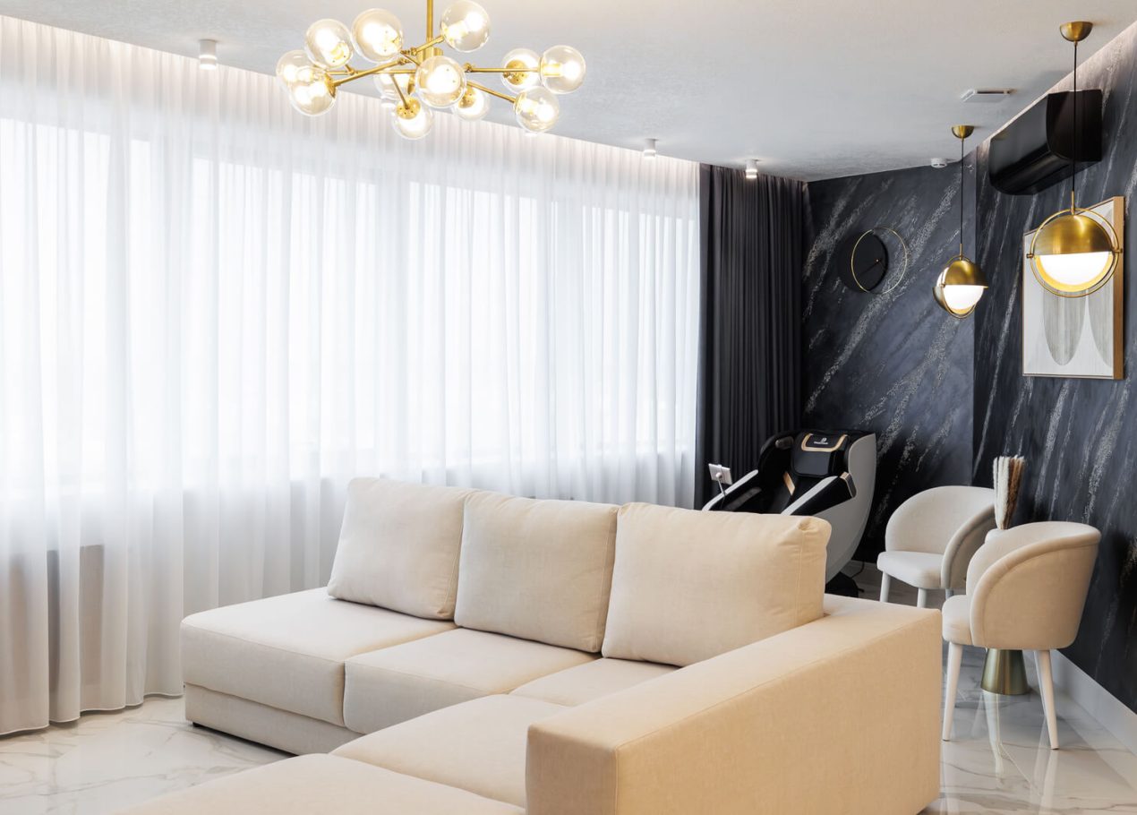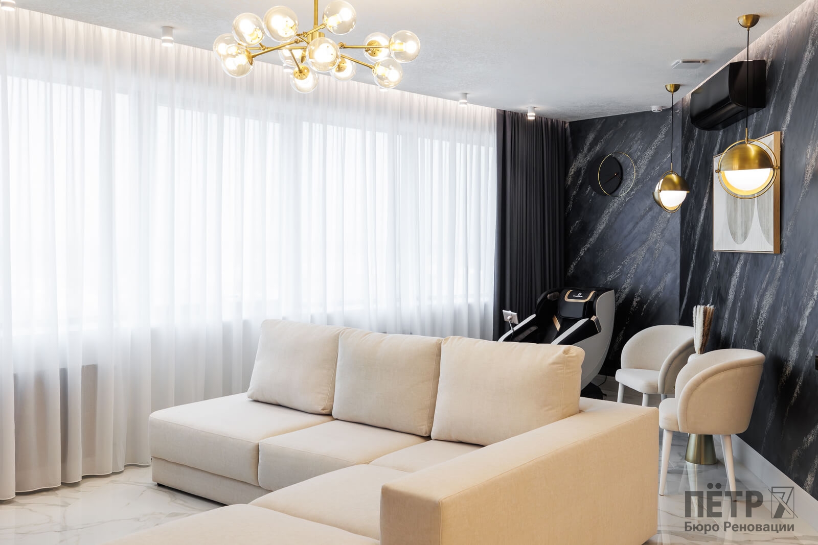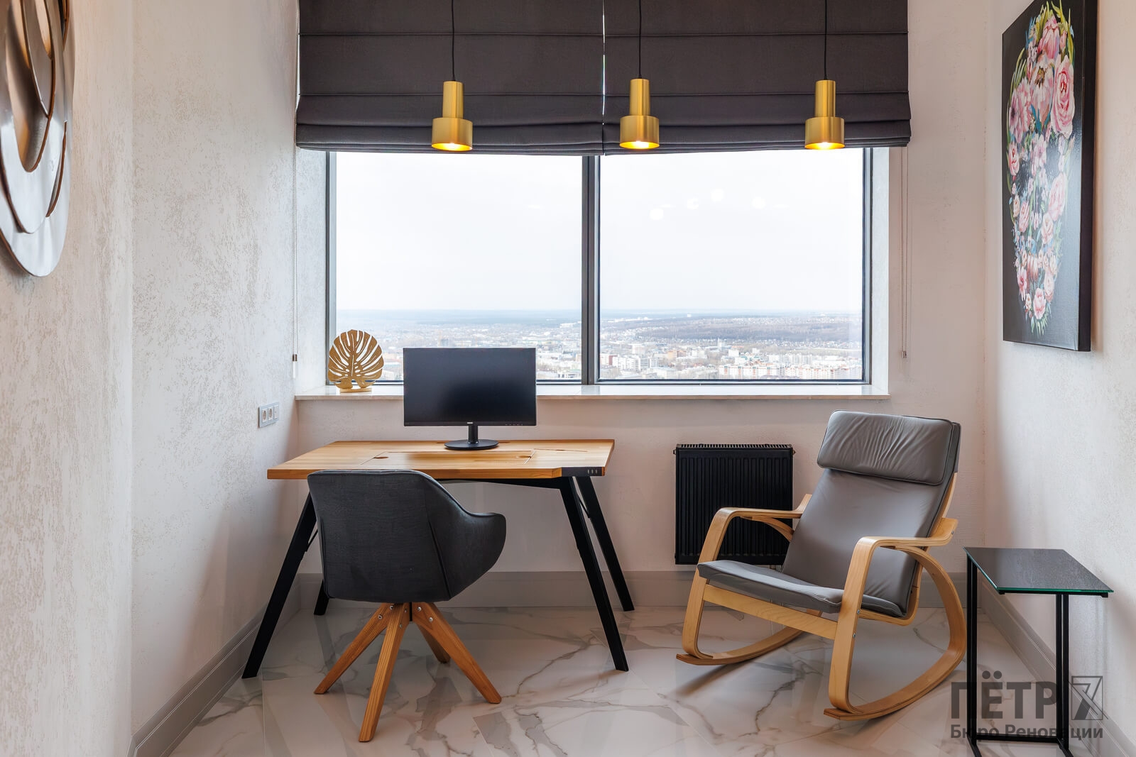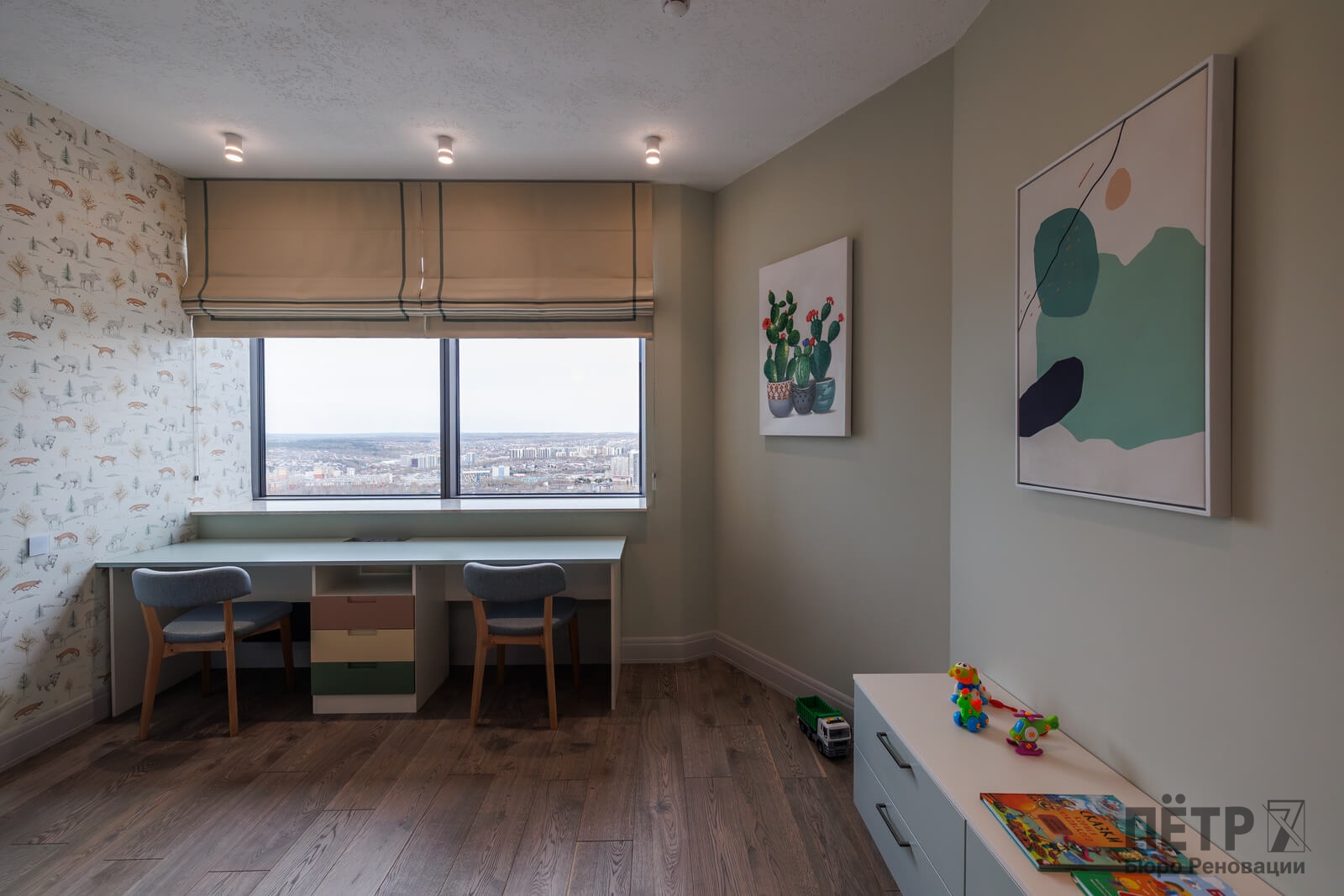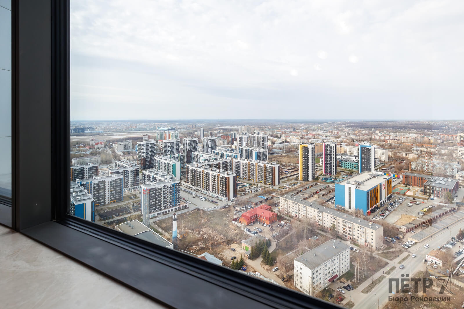 Этот проект реализован в небоскрёбе ЖК «Лазурные небеса» в Казани. Квартира была куплена одновременно с другим объектом в этом комплексе по низкой цене на этапе, когда ЖК ещё не полностью сформировался как премиальная локация. Стратегия была рассчитана на рост стоимости недвижимости по мере того, как комплекс заполняется и начинает привлекать состоятельных покупателей.
