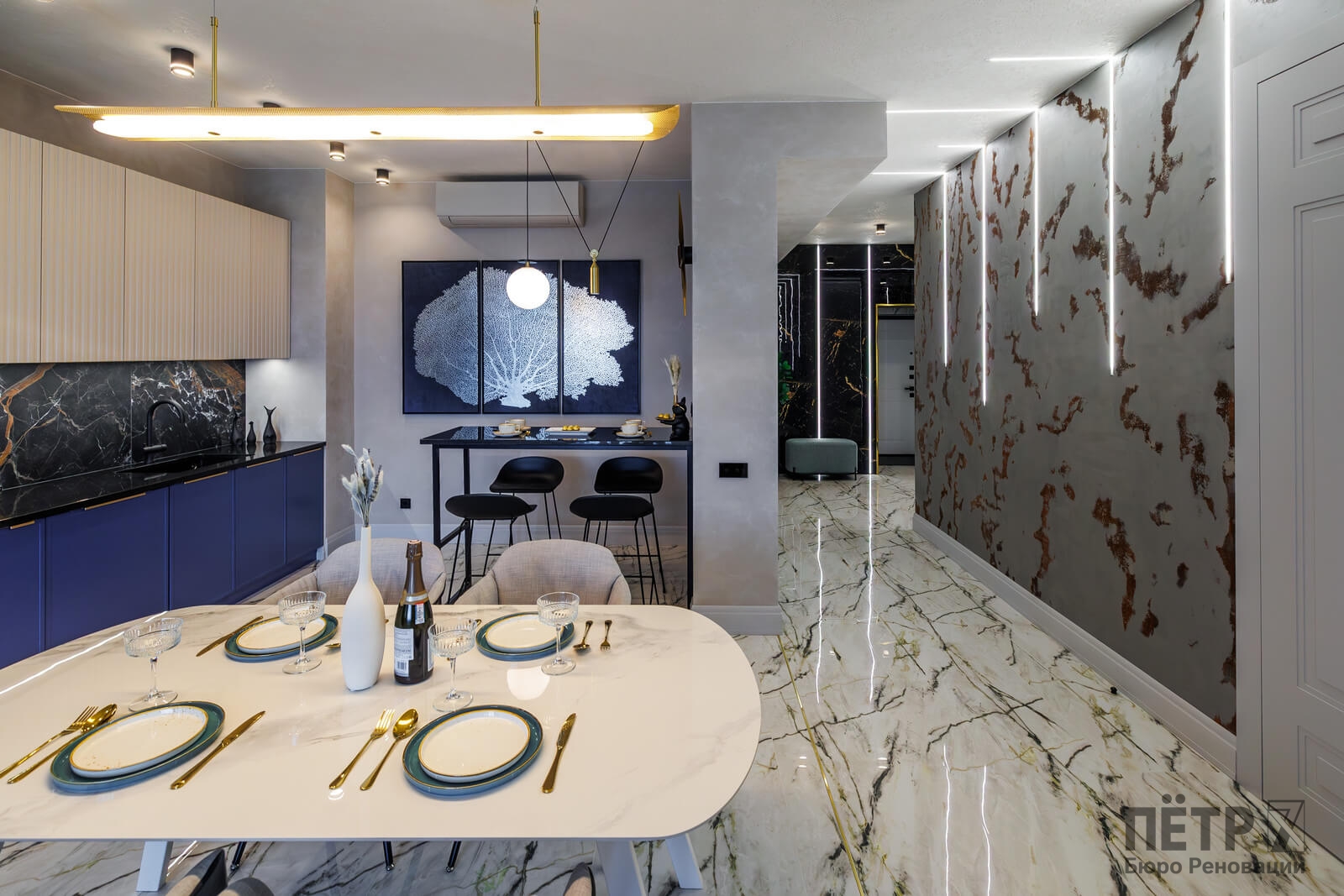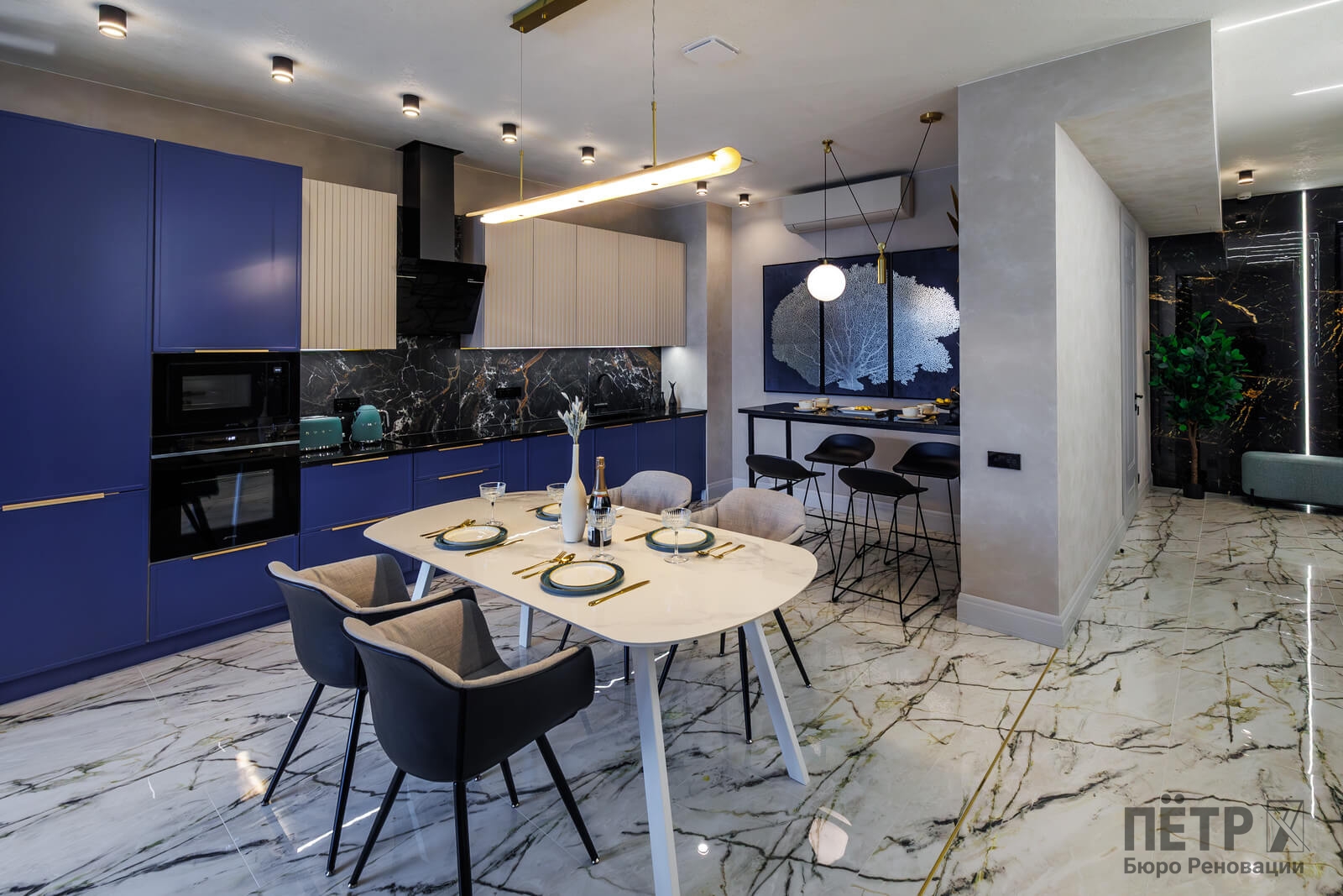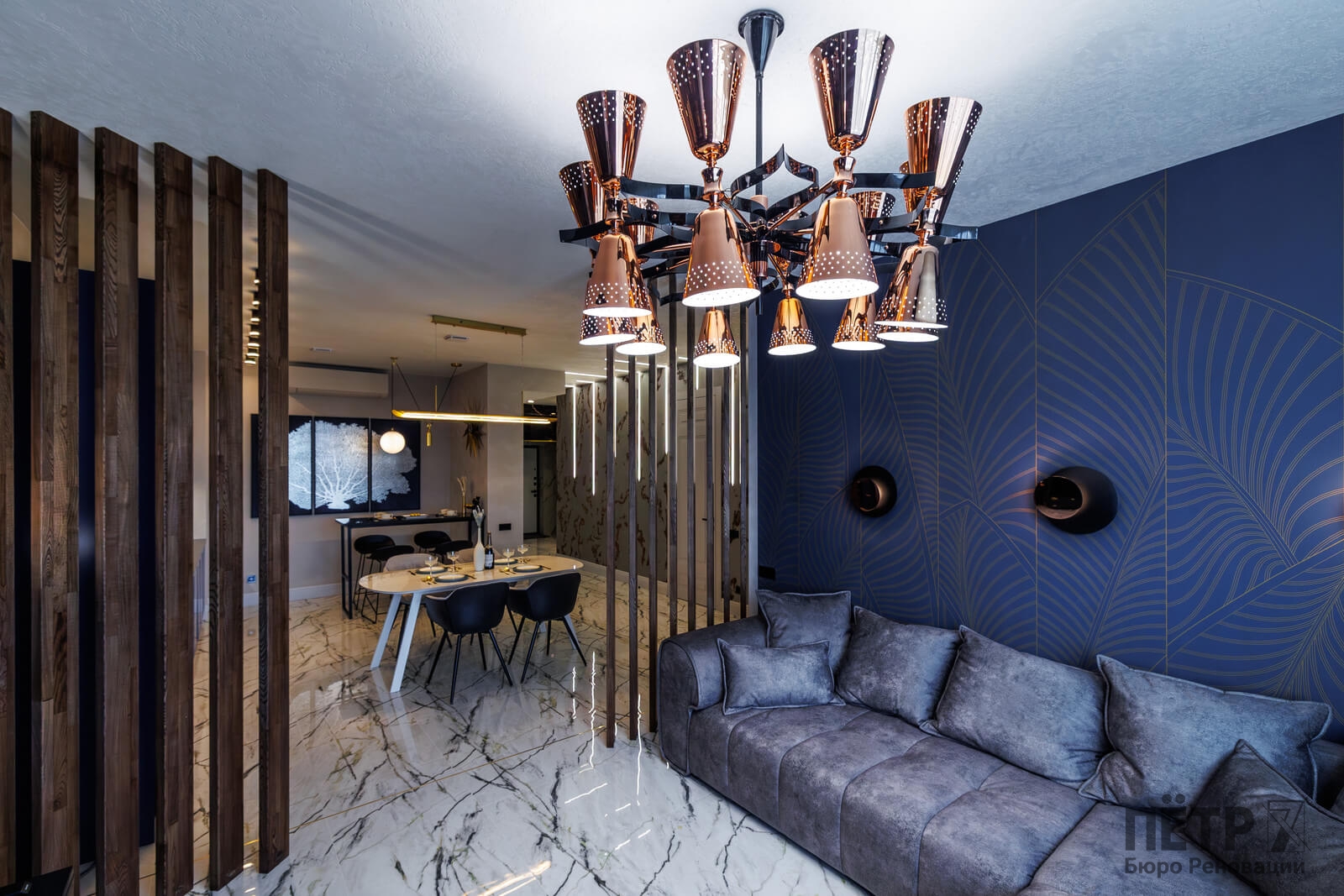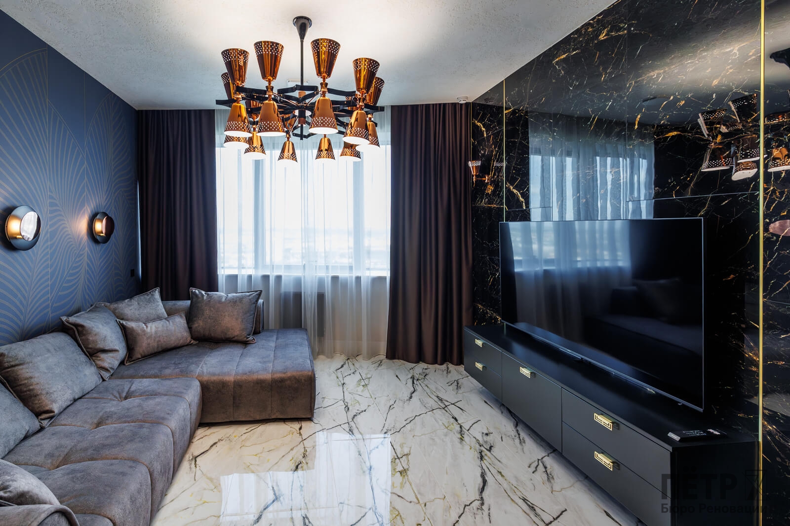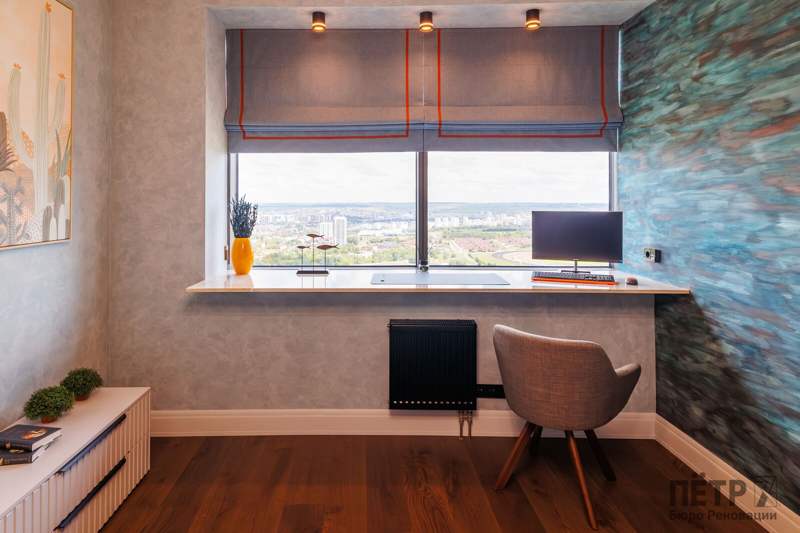 Проект реализован в небоскрёбе ЖК «Лазурные небеса» в Казани на 31 этаже с панорамным видом на город. Квартира площадью 130 м² была куплена по выгодной цене за квадратный метр в период, когда условия по ипотеке ещё были максимально комфортными, что позволило оптимизировать инвестиции в проект.