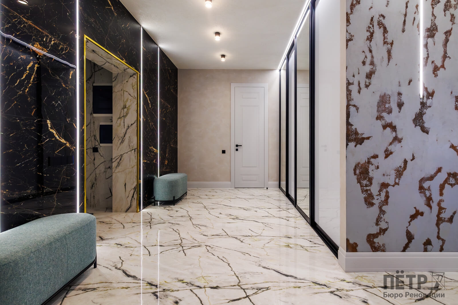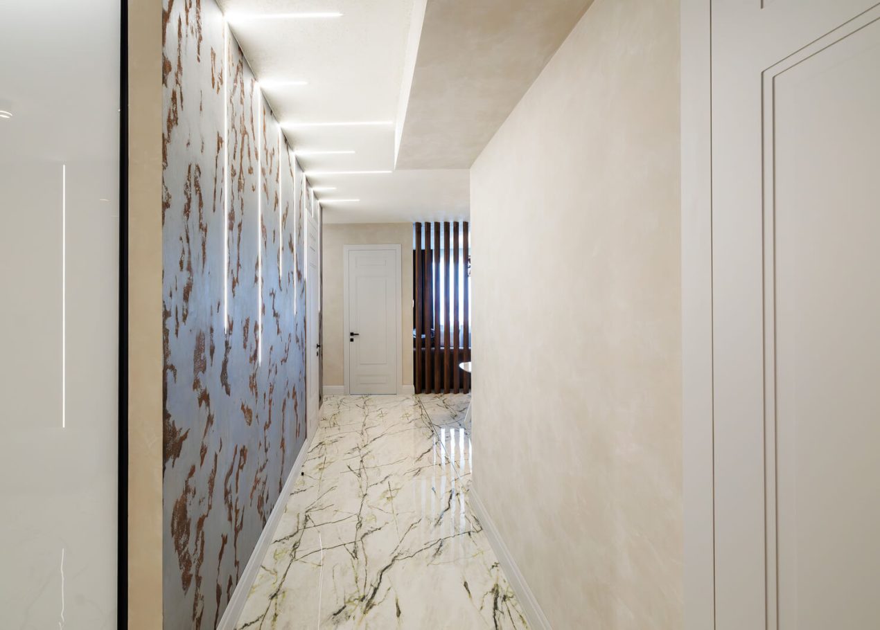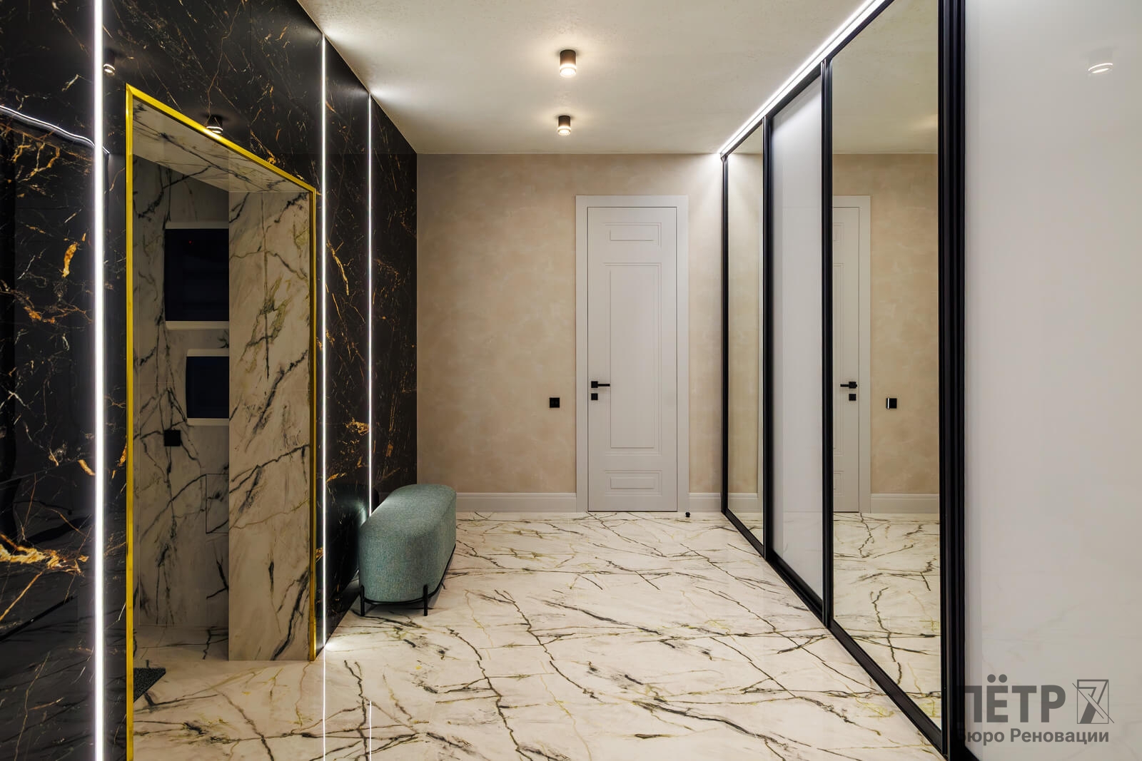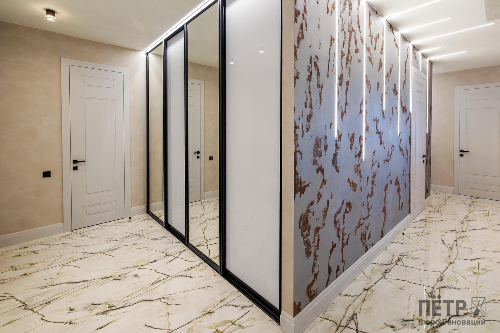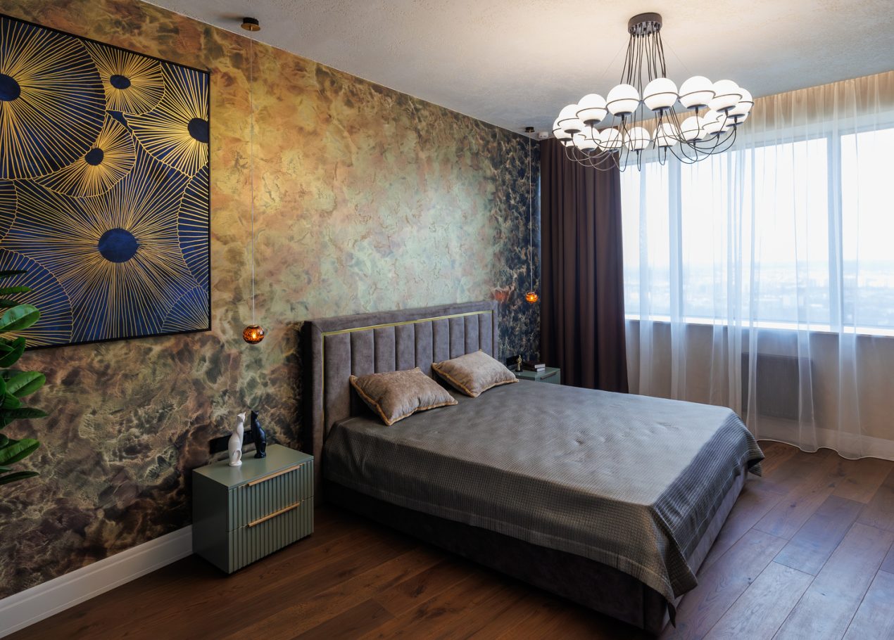 Проект реализован в небоскрёбе ЖК «Лазурные небеса» в Казани на 31 этаже с панорамным видом на город. Квартира площадью 130 м² была куплена по выгодной цене за квадратный метр в период, когда условия по ипотеке ещё были максимально комфортными, что позволило оптимизировать инвестиции в проект.