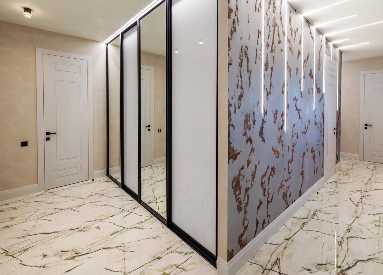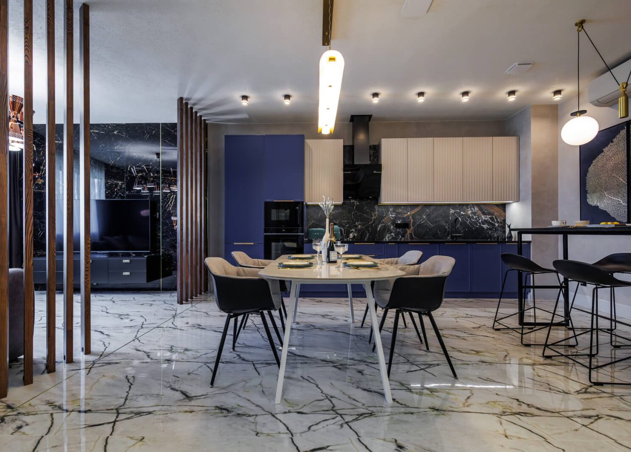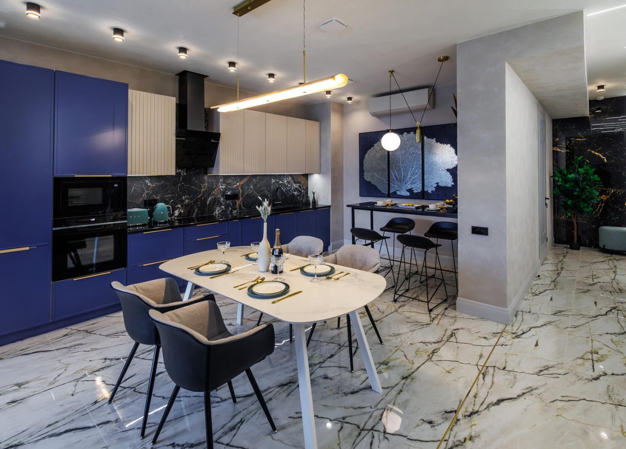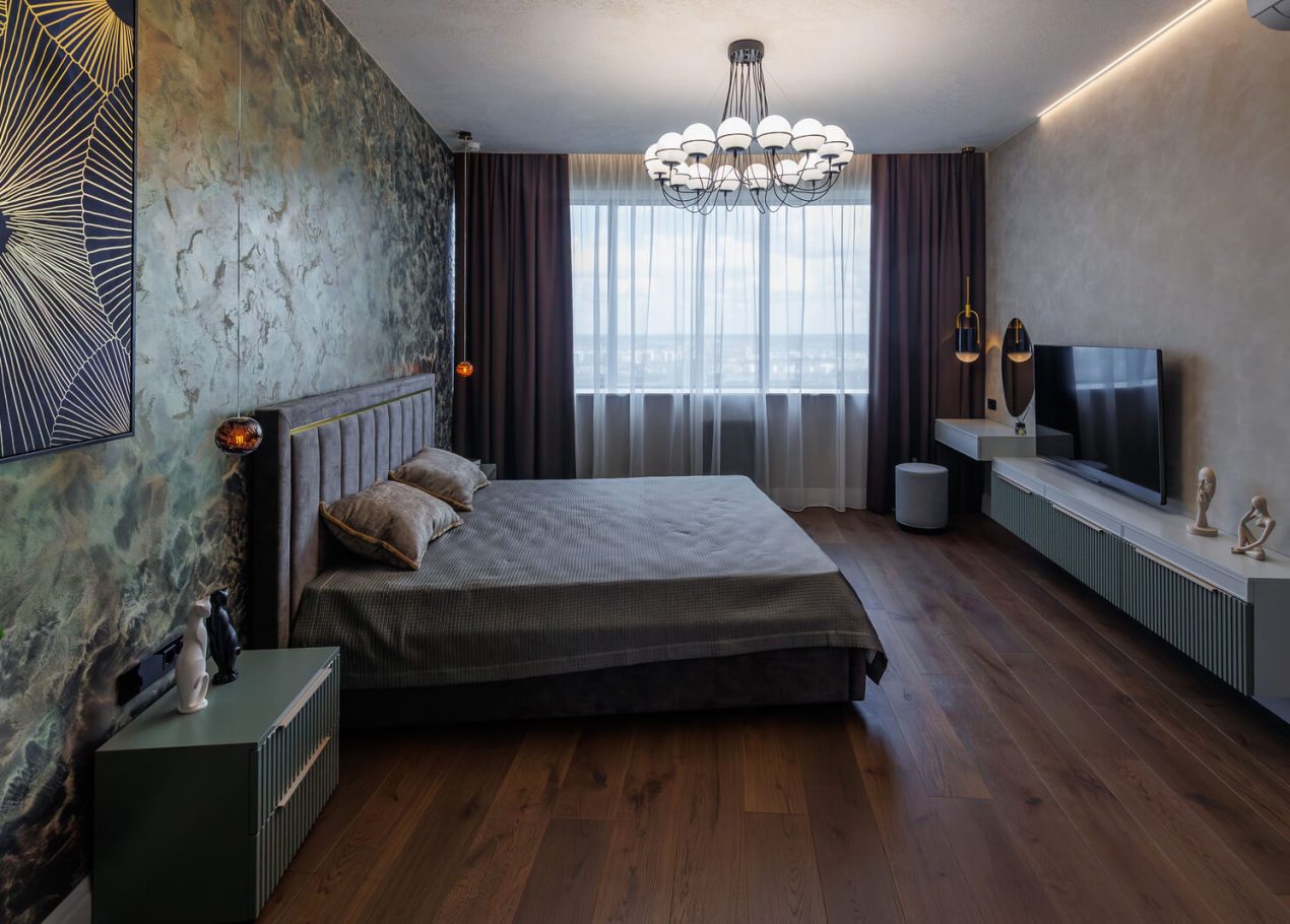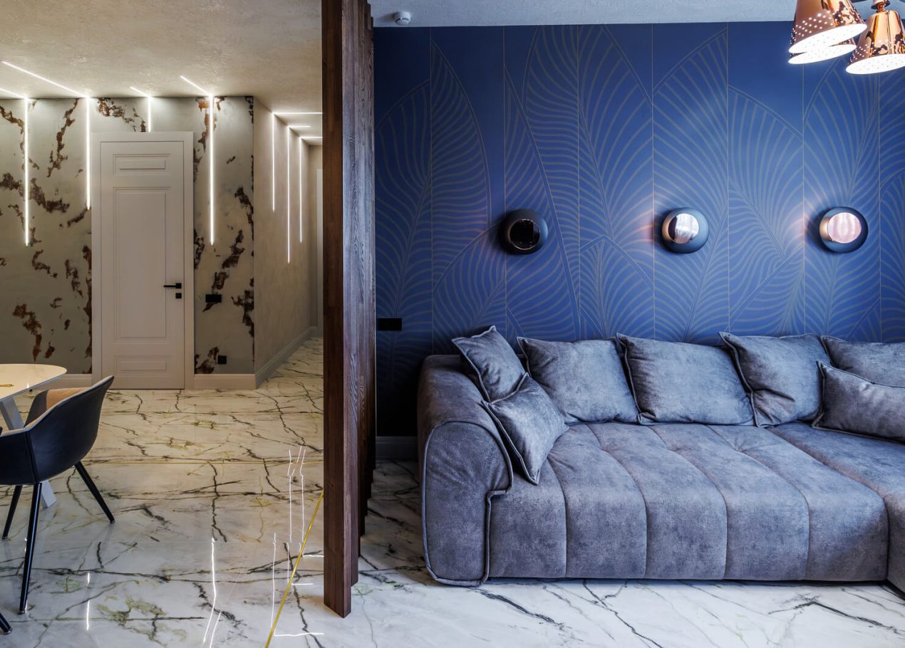 Проект реализован в небоскрёбе ЖК «Лазурные небеса» в Казани на 31 этаже с панорамным видом на город. Квартира площадью 130 м² была куплена по выгодной цене за квадратный метр в период, когда условия по ипотеке ещё были максимально комфортными, что позволило оптимизировать инвестиции в проект.