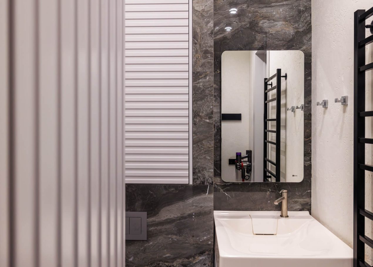 Дополнительно квартира оснащена системой принудительной вентиляции и открывающимися окнами, что редкость для высотных домов. В результате получился просторный и эффектный объект, подходящий как для семьи, так и для одного владельца, который ценит комфорт и приватность.