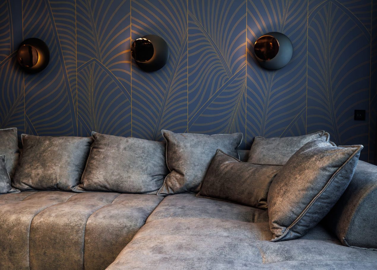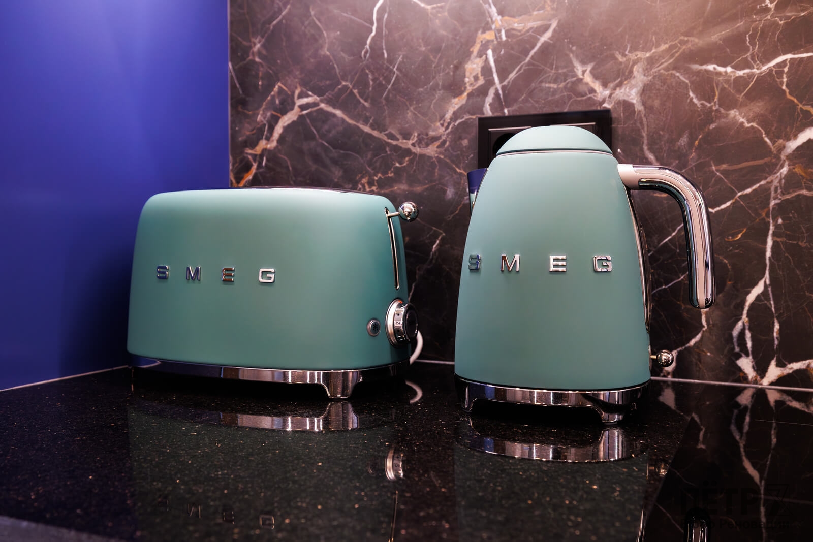 Интерьер выполнен в эко-стиле с элементами лофта: натуральный паркет, керамогранит с тёплым полом, балки из массива дуба, индивидуальная мебель на заказ и техника SMEG. Планировка получилась необычной и функциональной: просторная кухня-гостиная, мастер-спальня с гардеробной, детская комната, отдельный домашний кинотеатр, прачечная, большой холл и санузел с ванной и хамамом.