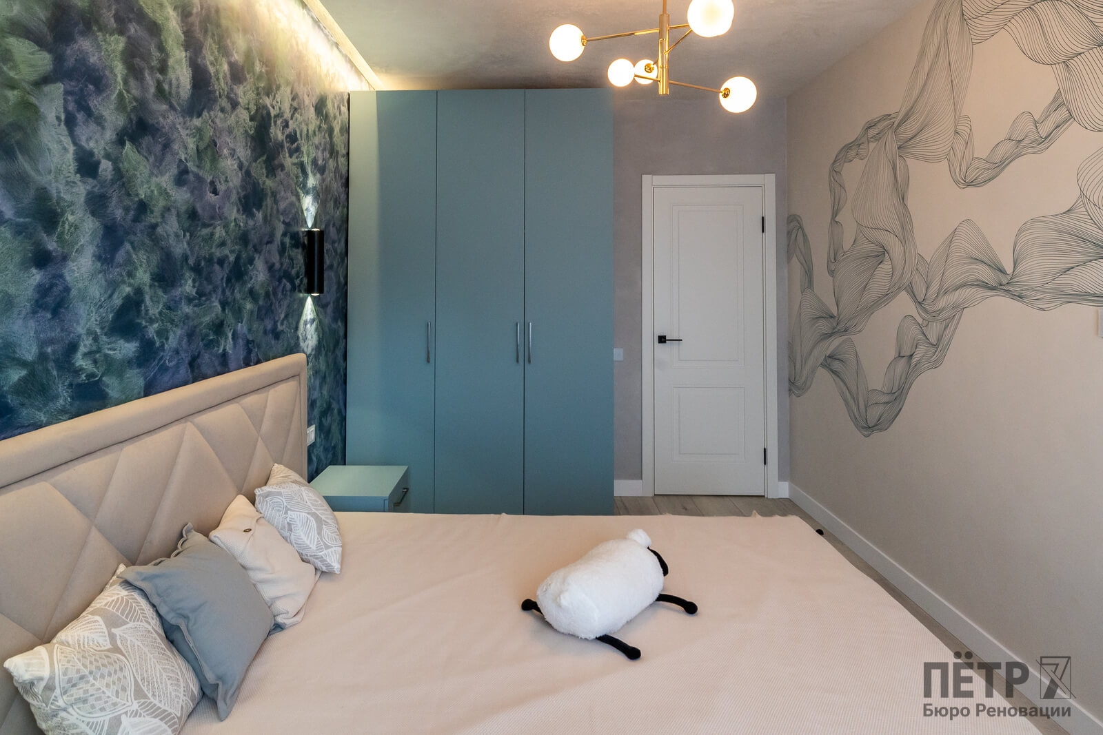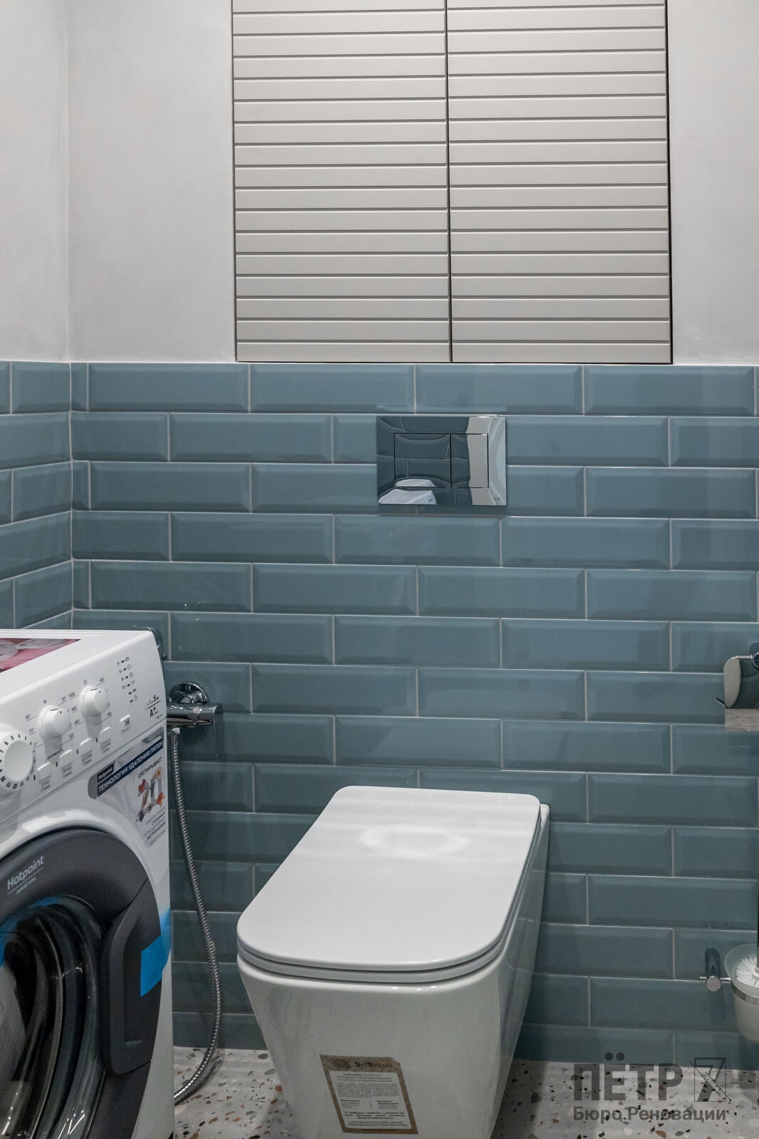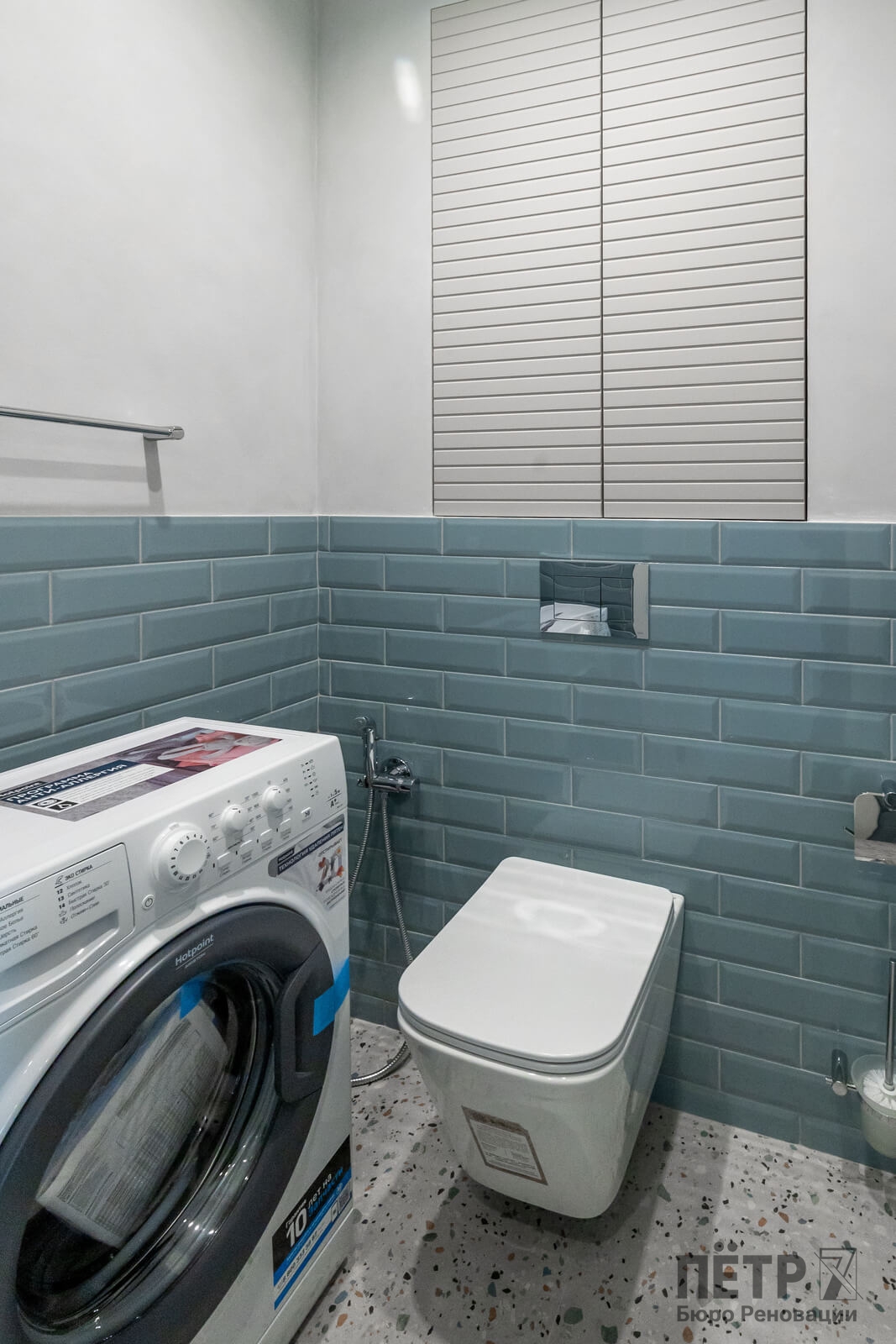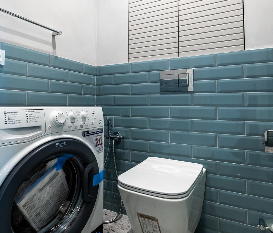 Также был утеплён просторный балкон, где разместили зону прачечной. В результате получилась функциональная квартира с интересными деталями и интерьером в стиле ар-деко, которая быстро привлекла покупателя и была успешно реализована после завершения ремонта.