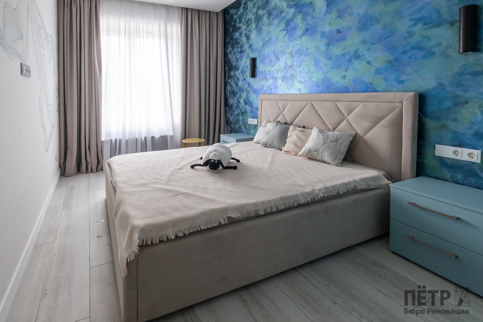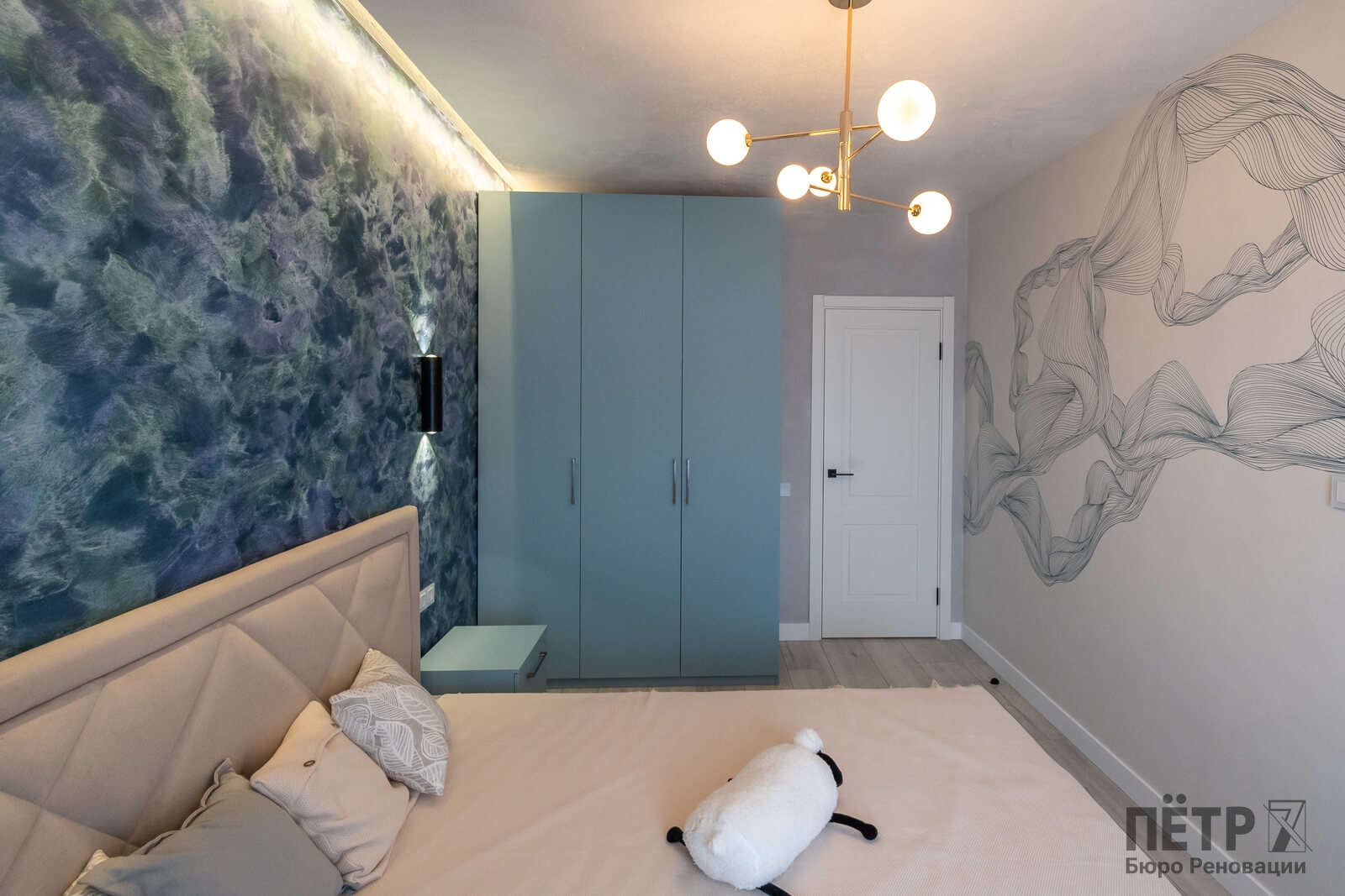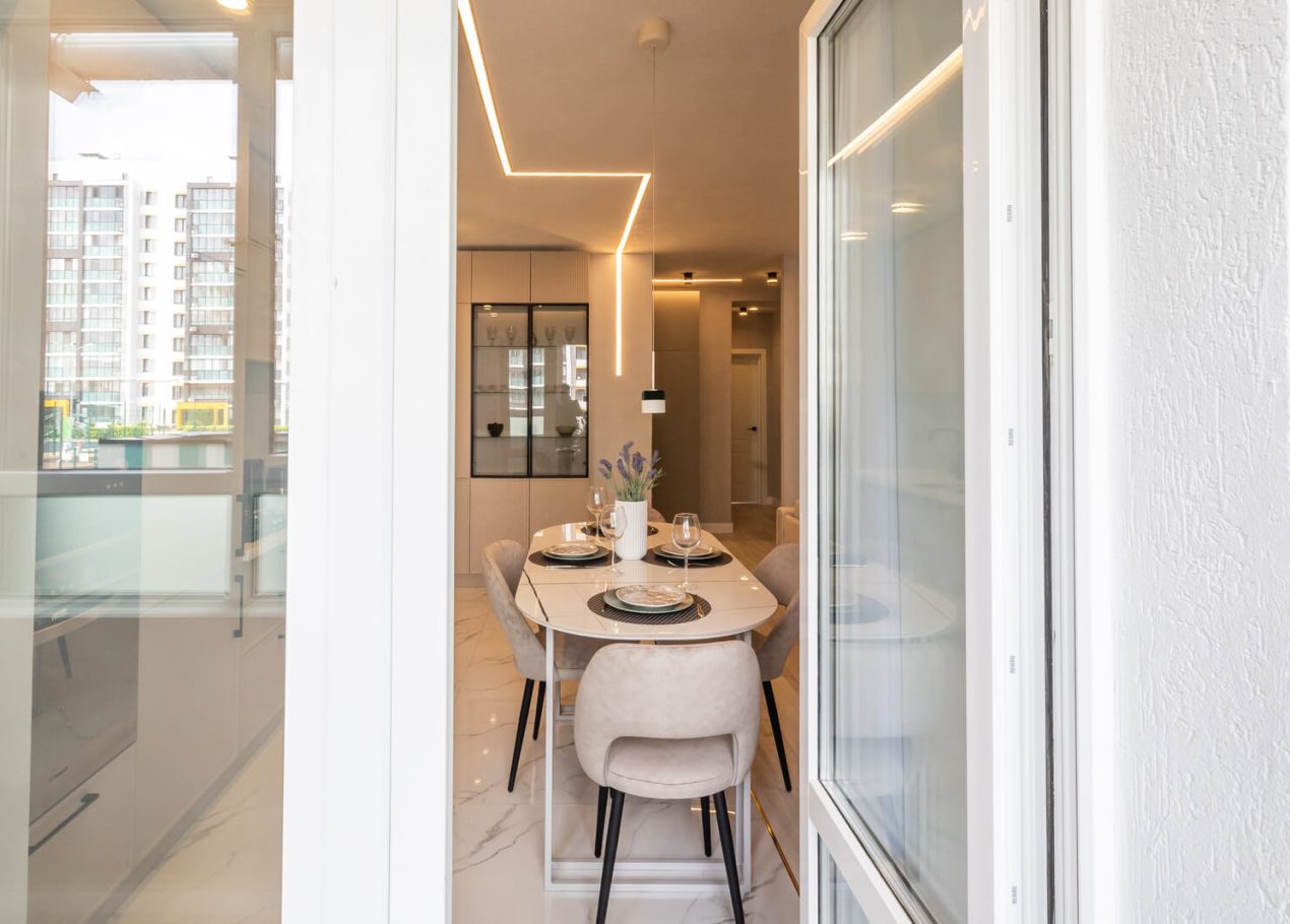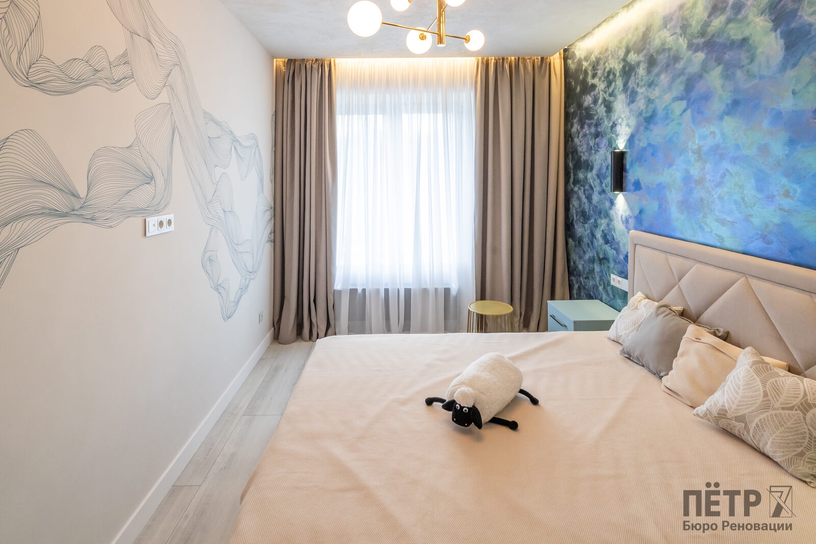 Также был утеплён просторный балкон, где разместили зону прачечной. В результате получилась функциональная квартира с интересными деталями и интерьером в стиле ар-деко, которая быстро привлекла покупателя и была успешно реализована после завершения ремонта.