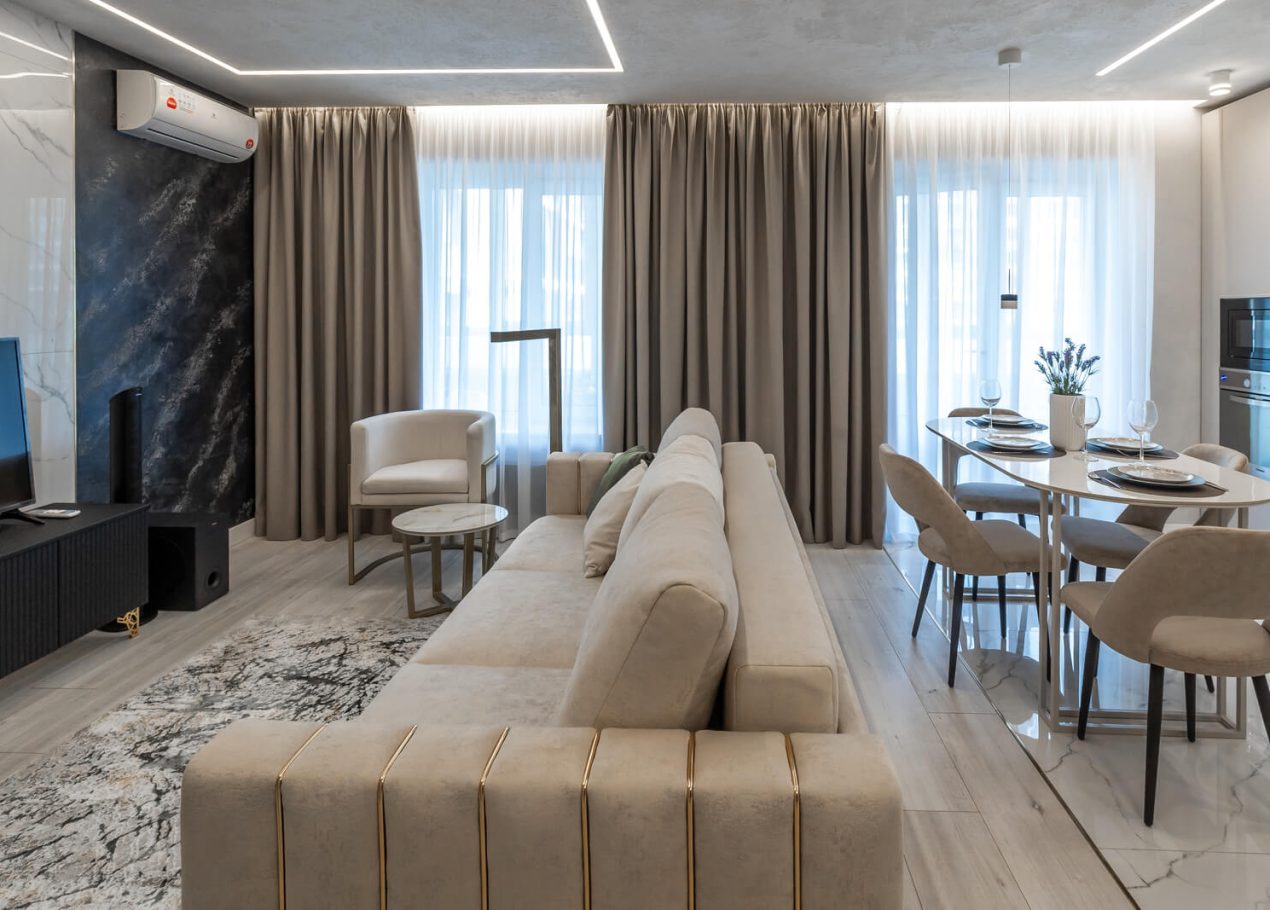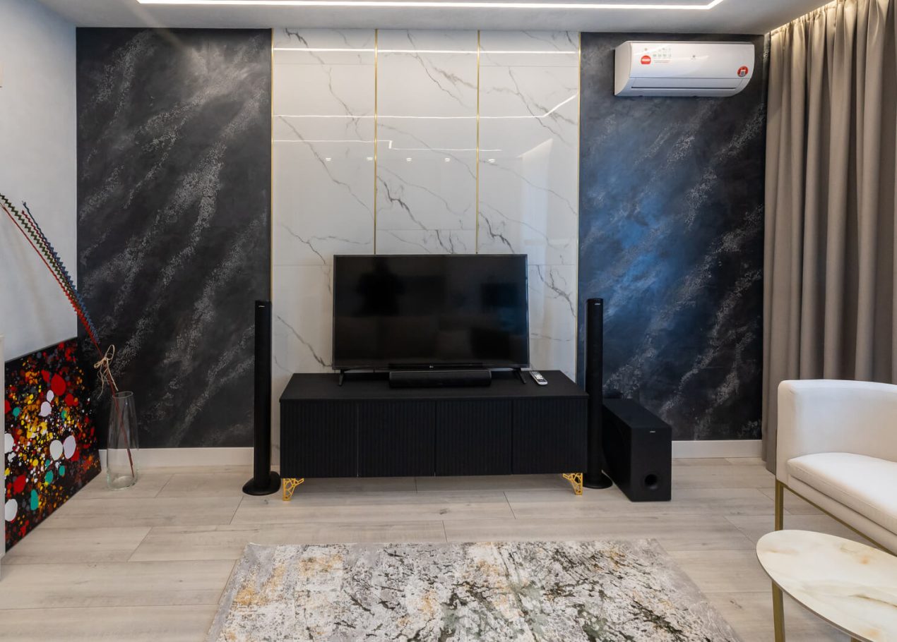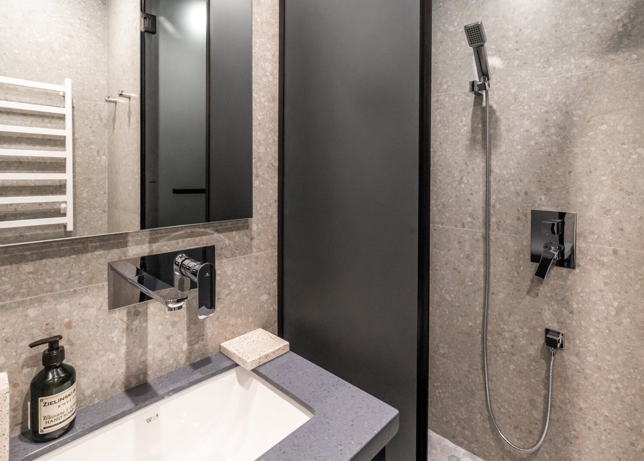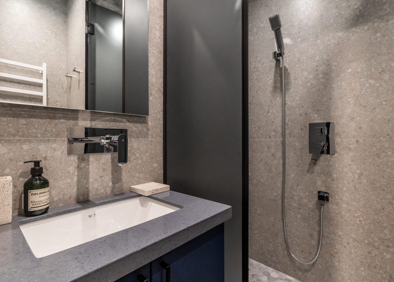 Мы приобрели двухкомнатную квартиру в черновой отделке и перепланировали её в евро-двушку с просторной кухней-гостиной и отдельной спальней. Главной особенностью проекта стал небольшой хамам, встроенный прямо в душевую, что редко встречается в квартирах такого формата.