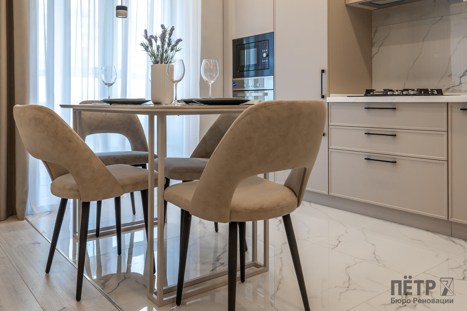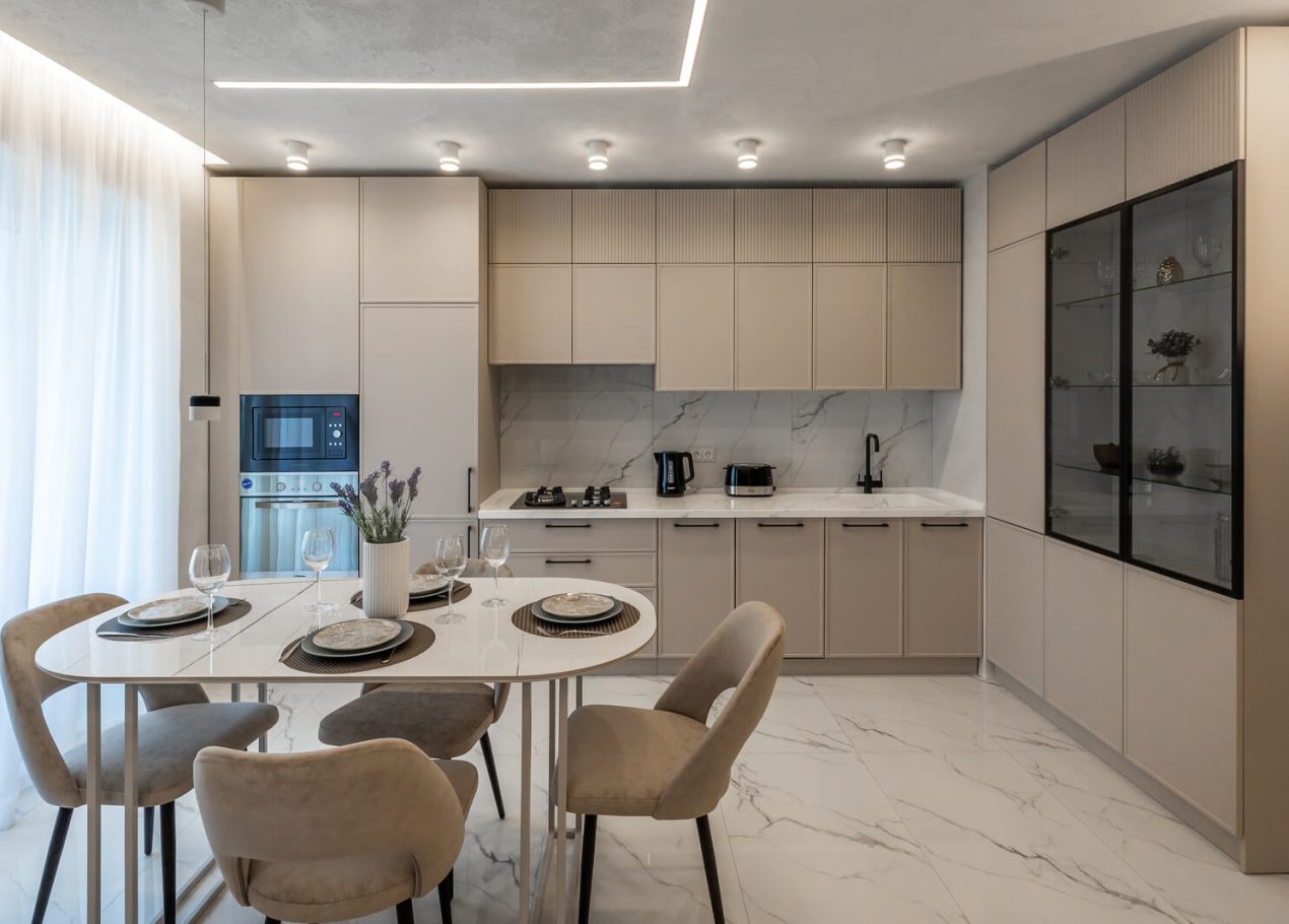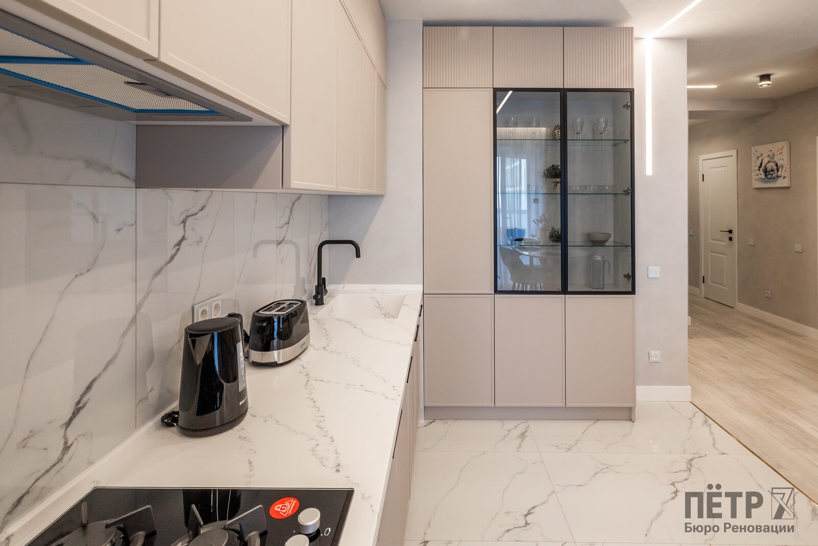 Мы приобрели двухкомнатную квартиру в черновой отделке и перепланировали её в евро-двушку с просторной кухней-гостиной и отдельной спальней. Главной особенностью проекта стал небольшой хамам, встроенный прямо в душевую, что редко встречается в квартирах такого формата.
