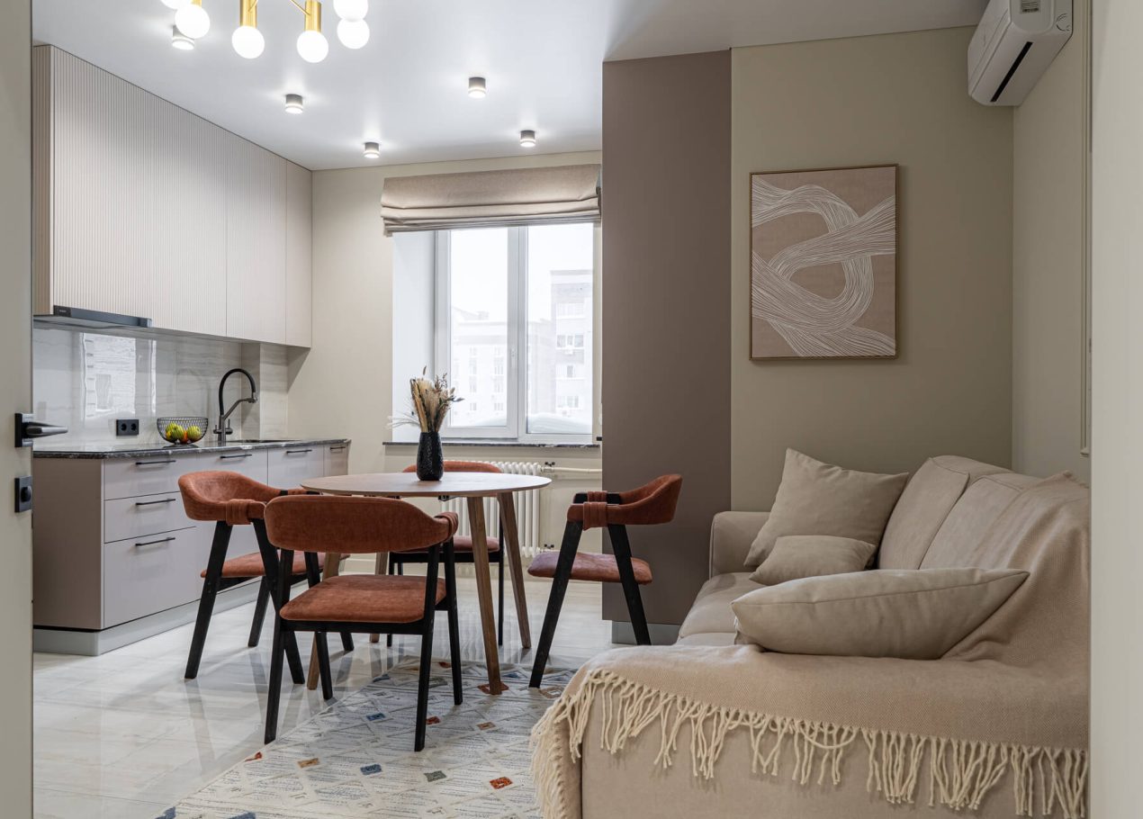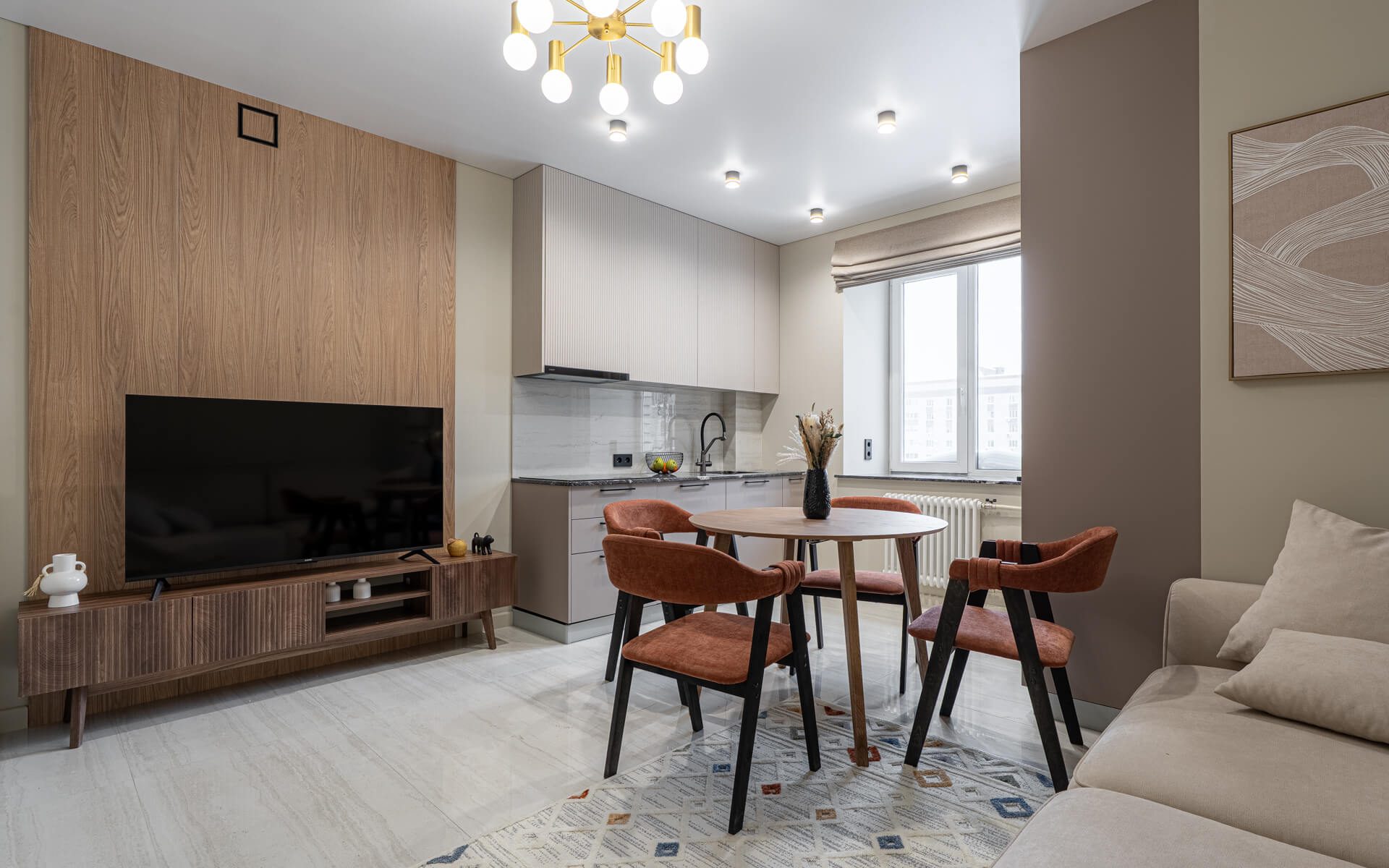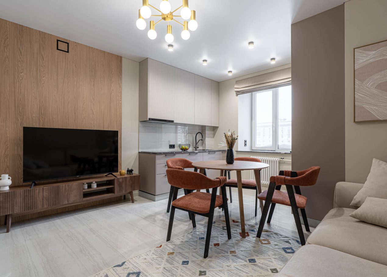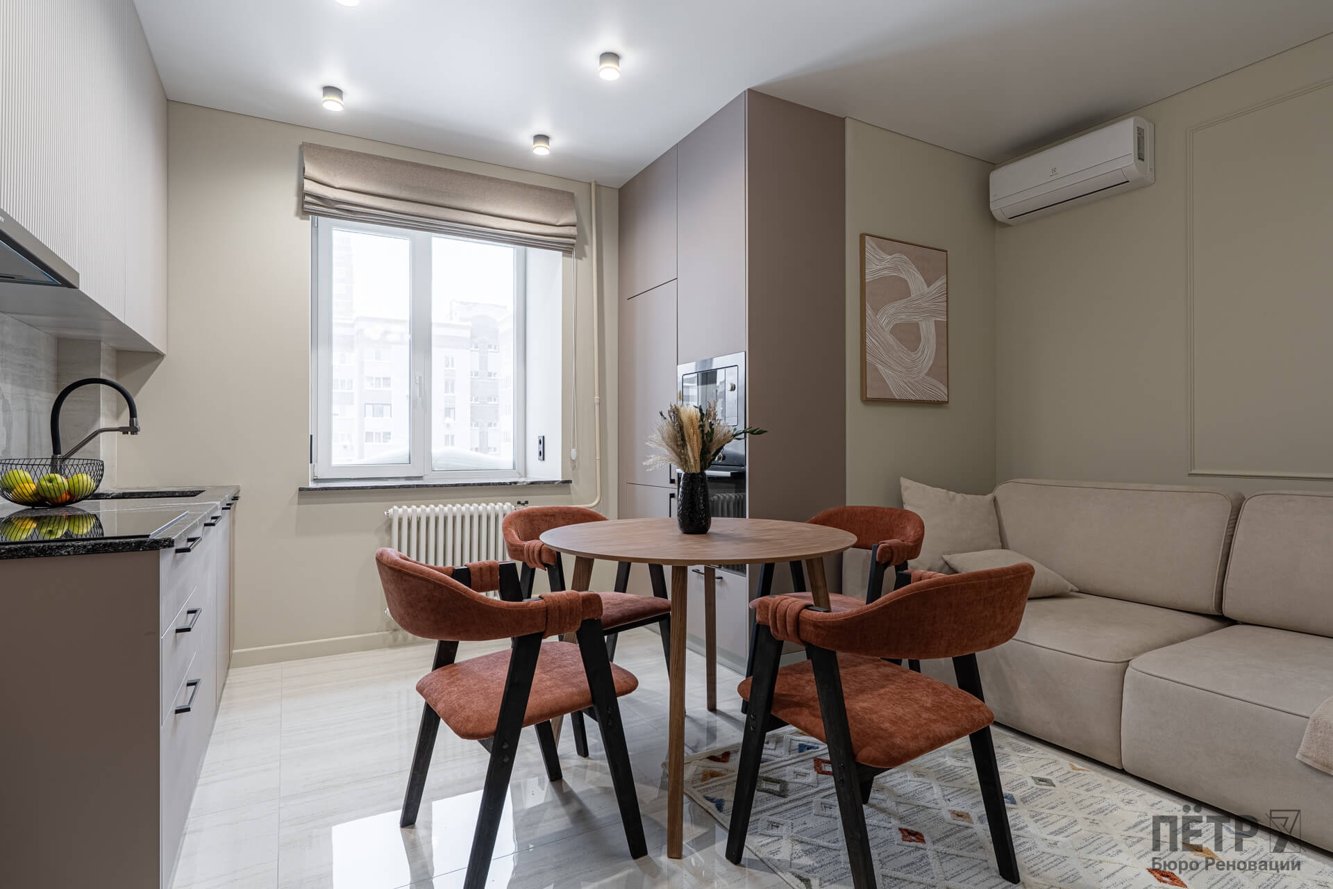 Этот проект реализован в кирпичном доме 2010-х годов в одном из лучших районов Ново-Савиновского района Казани. Дом относится к формату комфортного городского жилья: закрытый двор, современная застройка и развитая инфраструктура. Такие дома часто выбирают покупатели, которые не хотят жить в старом фонде, но при этом не готовы переплачивать за новостройки и несколько лет жить среди ремонтов.