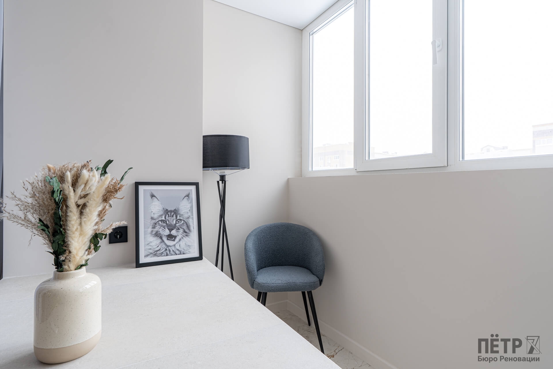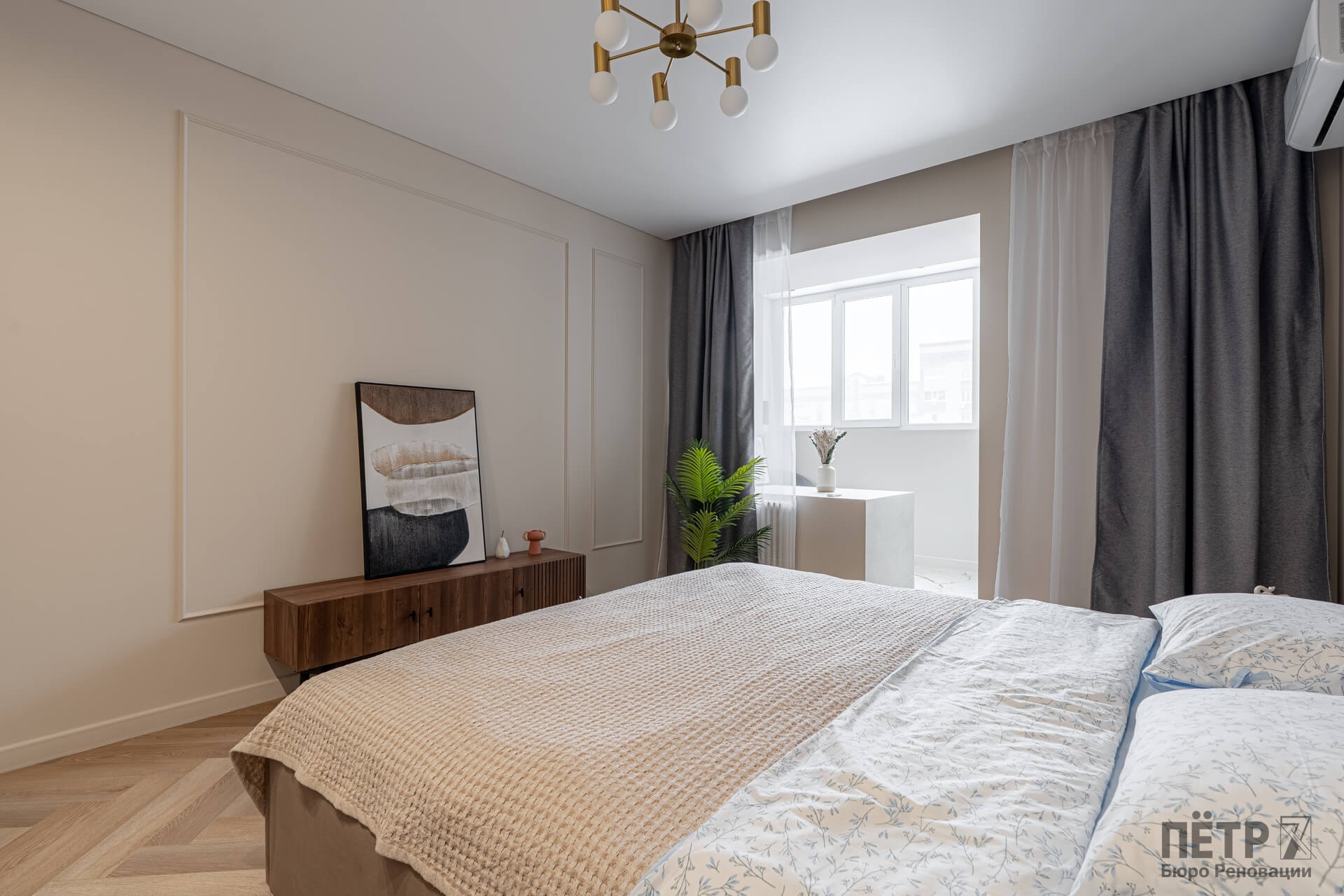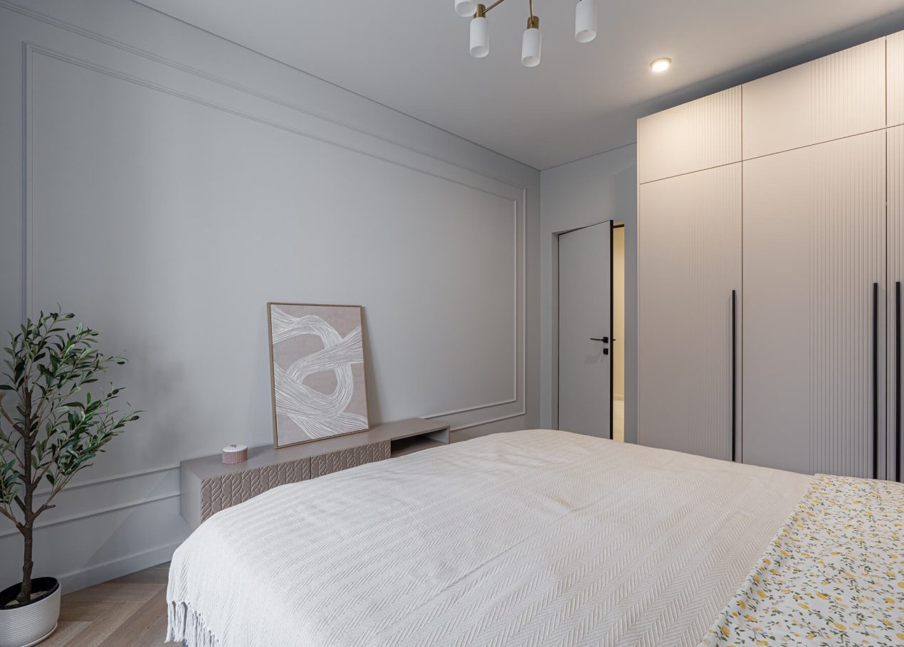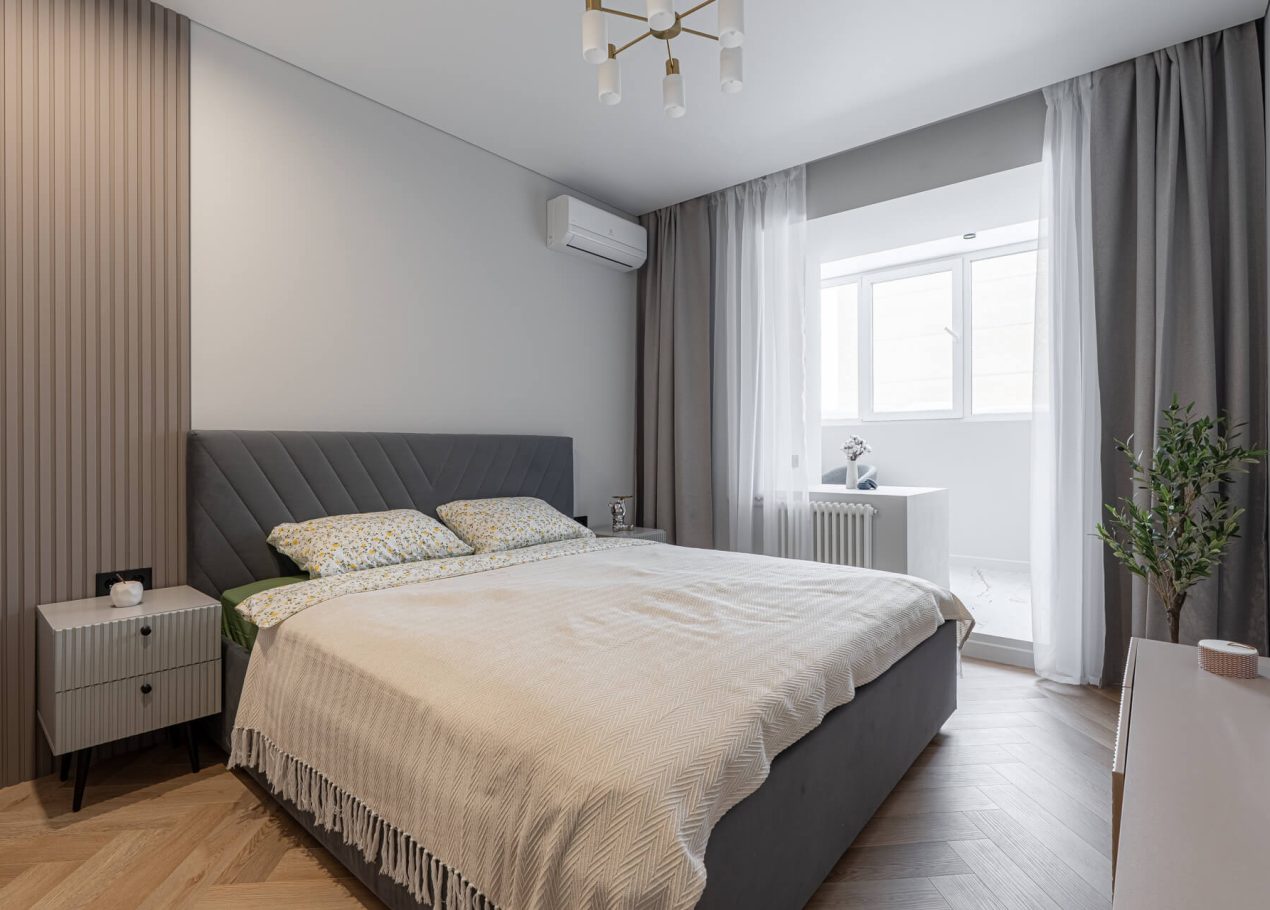 Главной задачей проекта стала грамотная перепланировка и увеличение полезной площади квартиры. В квартире было два балкона, которые мы утеплили и присоединили к комнатам. За счёт этого удалось добавить около 10 м² полезного пространства, что напрямую повлияло на итоговую стоимость квартиры.