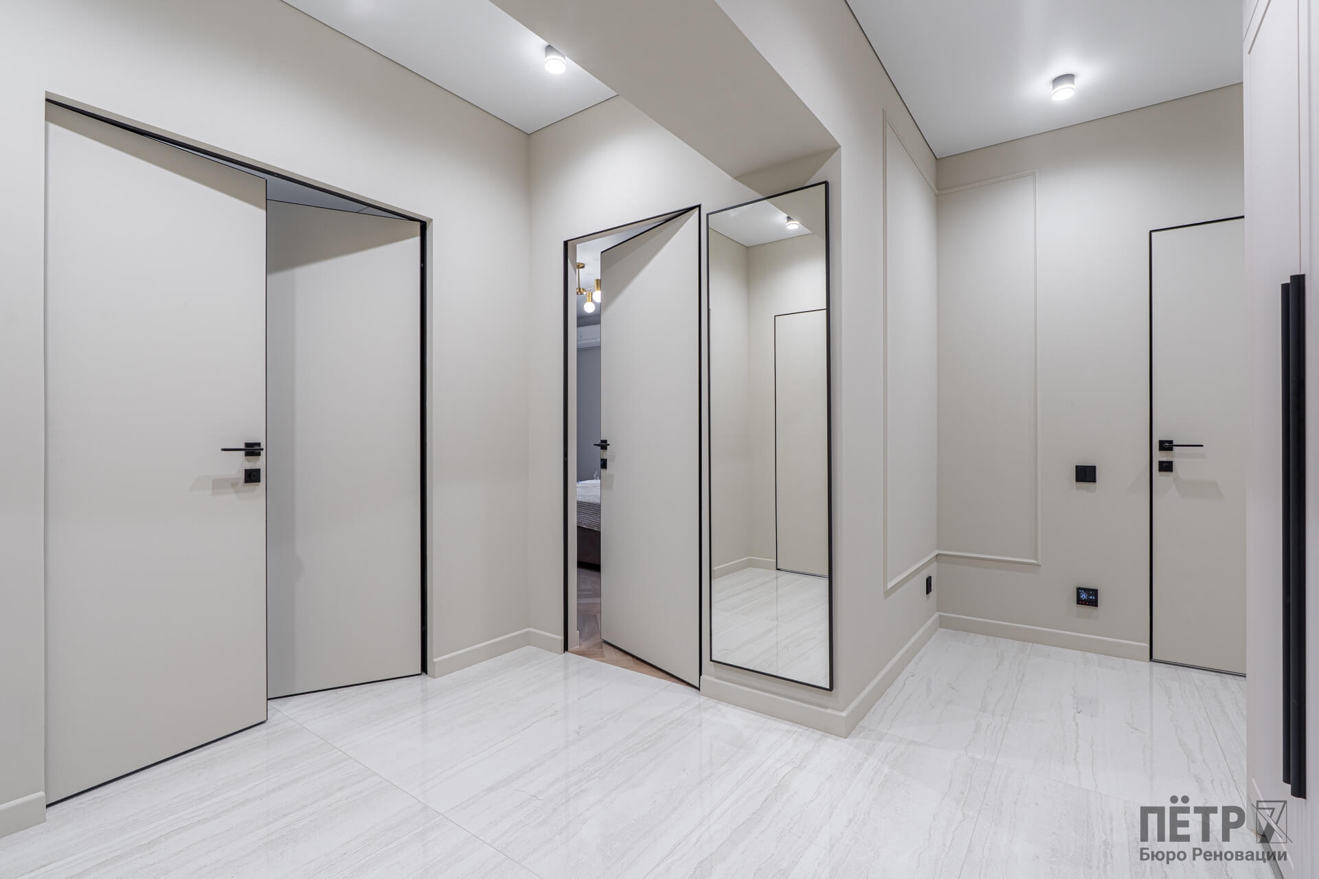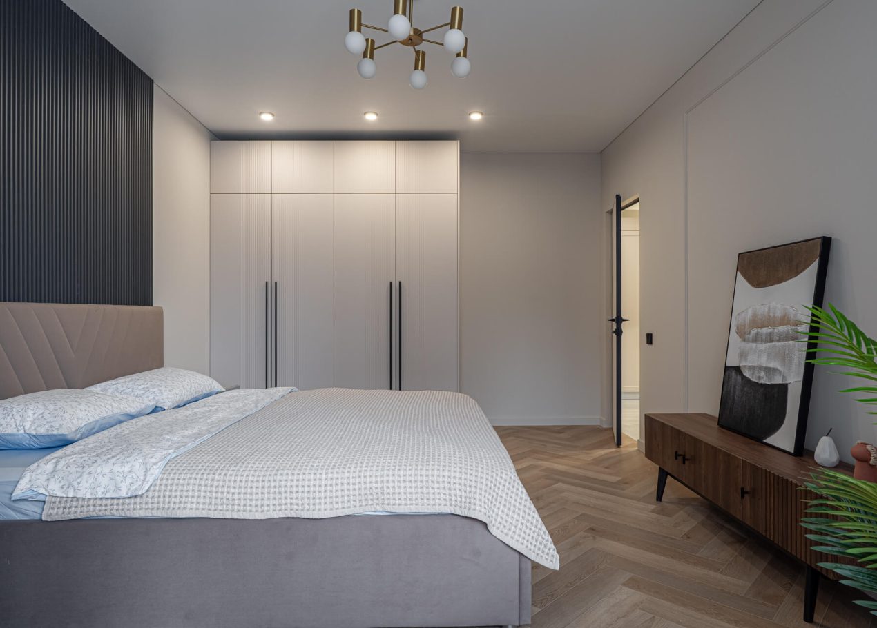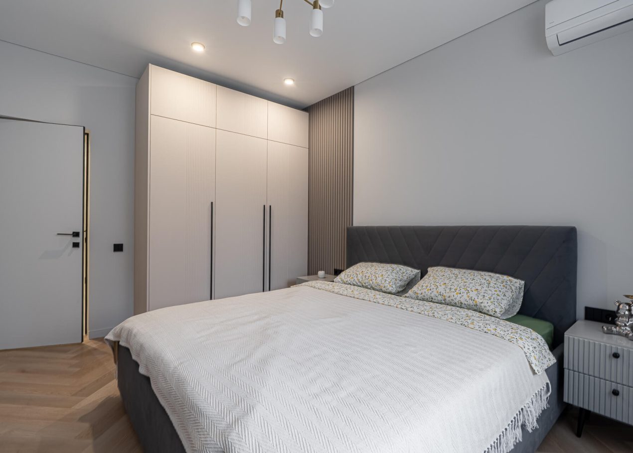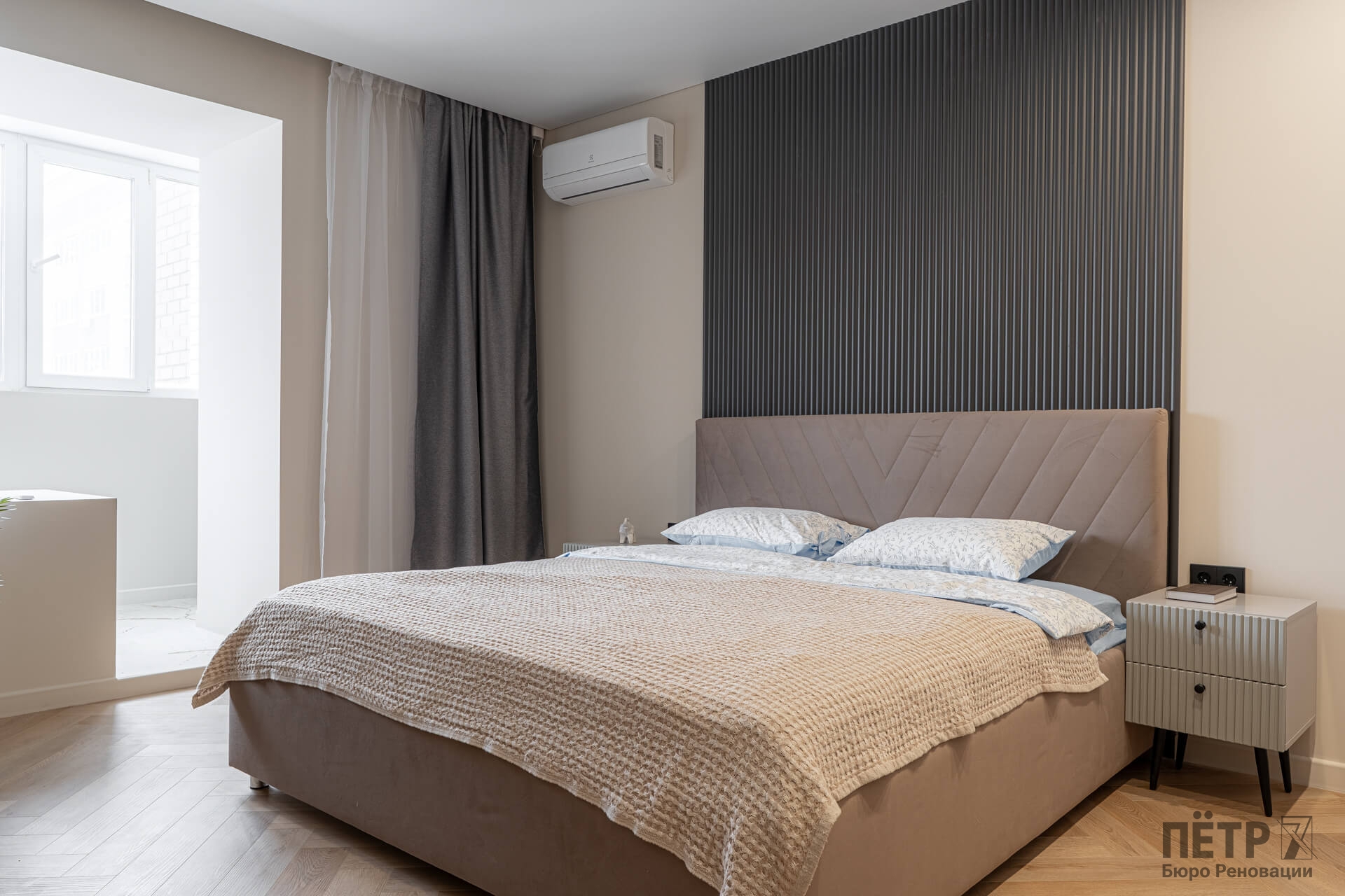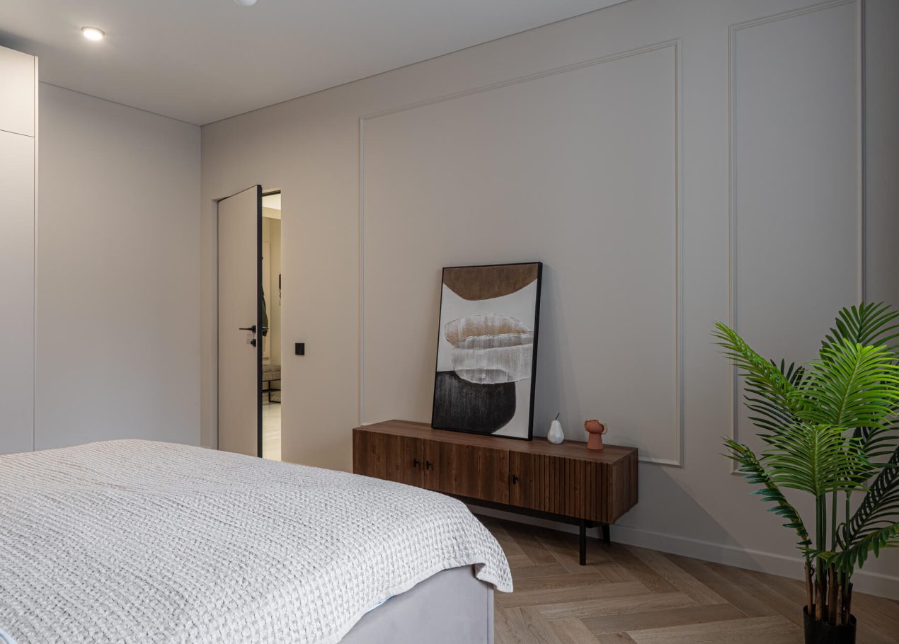 Главной задачей проекта стала грамотная перепланировка и увеличение полезной площади квартиры. В квартире было два балкона, которые мы утеплили и присоединили к комнатам. За счёт этого удалось добавить около 10 м² полезного пространства, что напрямую повлияло на итоговую стоимость квартиры.