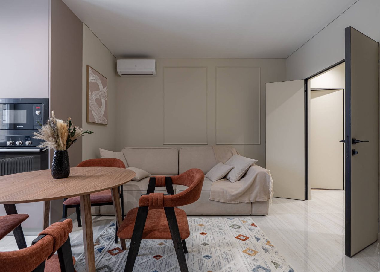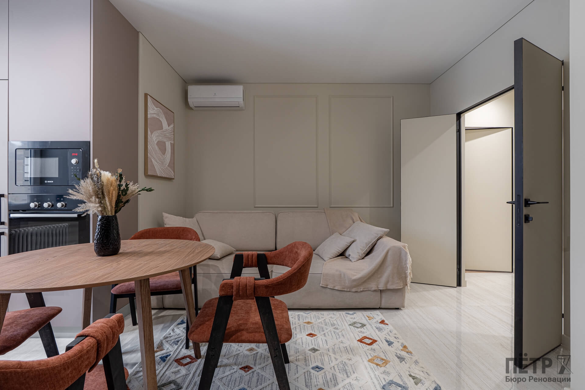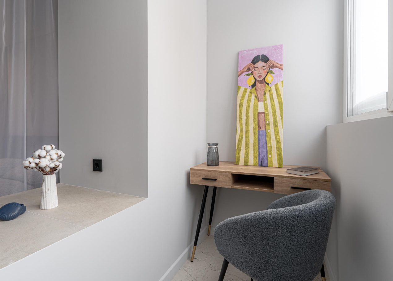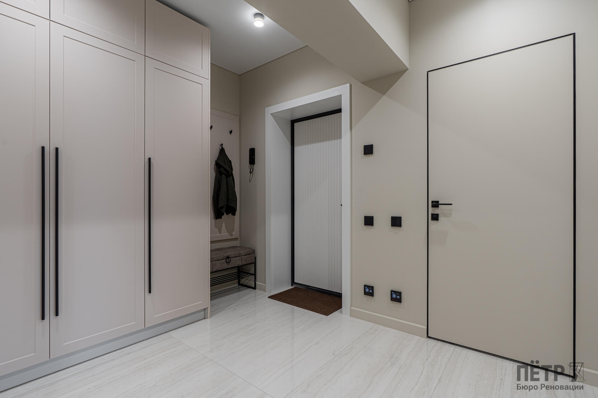 Главной задачей проекта стала грамотная перепланировка и увеличение полезной площади квартиры. В квартире было два балкона, которые мы утеплили и присоединили к комнатам. За счёт этого удалось добавить около 10 м² полезного пространства, что напрямую повлияло на итоговую стоимость квартиры.