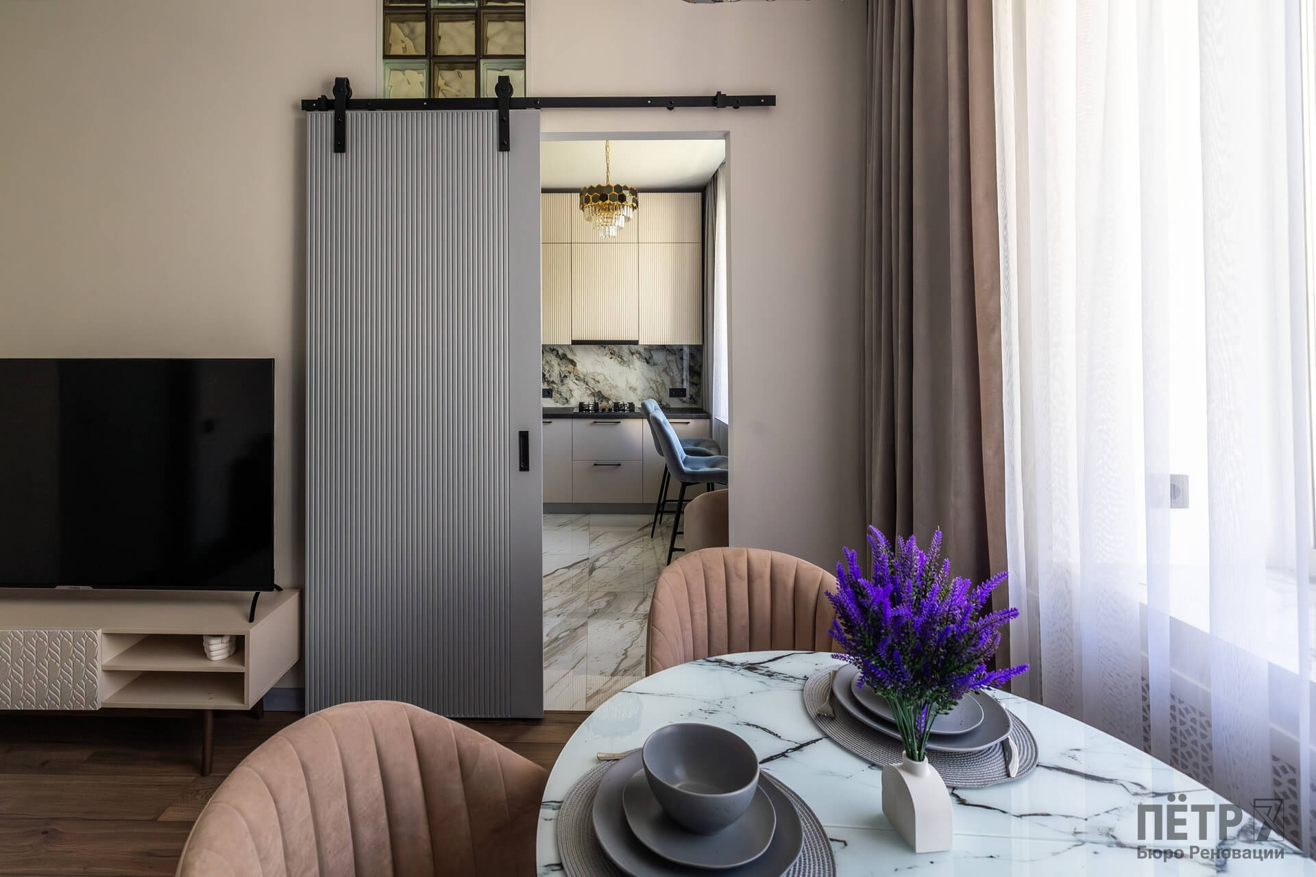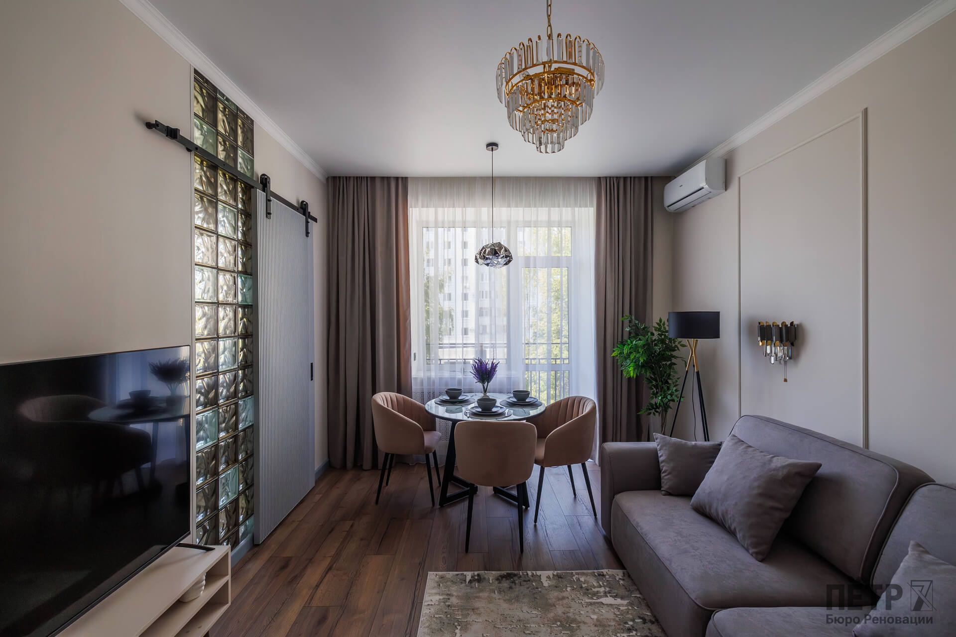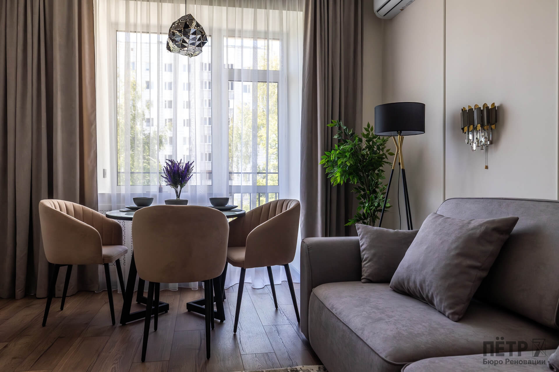 После ремонта получилась классическая и понятная планировка: кухня-гостиная, отдельная спальня, раздельные санузлы и просторный холл. Высокие потолки и приятные видовые характеристики усилили привлекательность квартиры. Благодаря удачной цене и хорошей локации объект был продан меньше чем за месяц после выхода на рынок.
