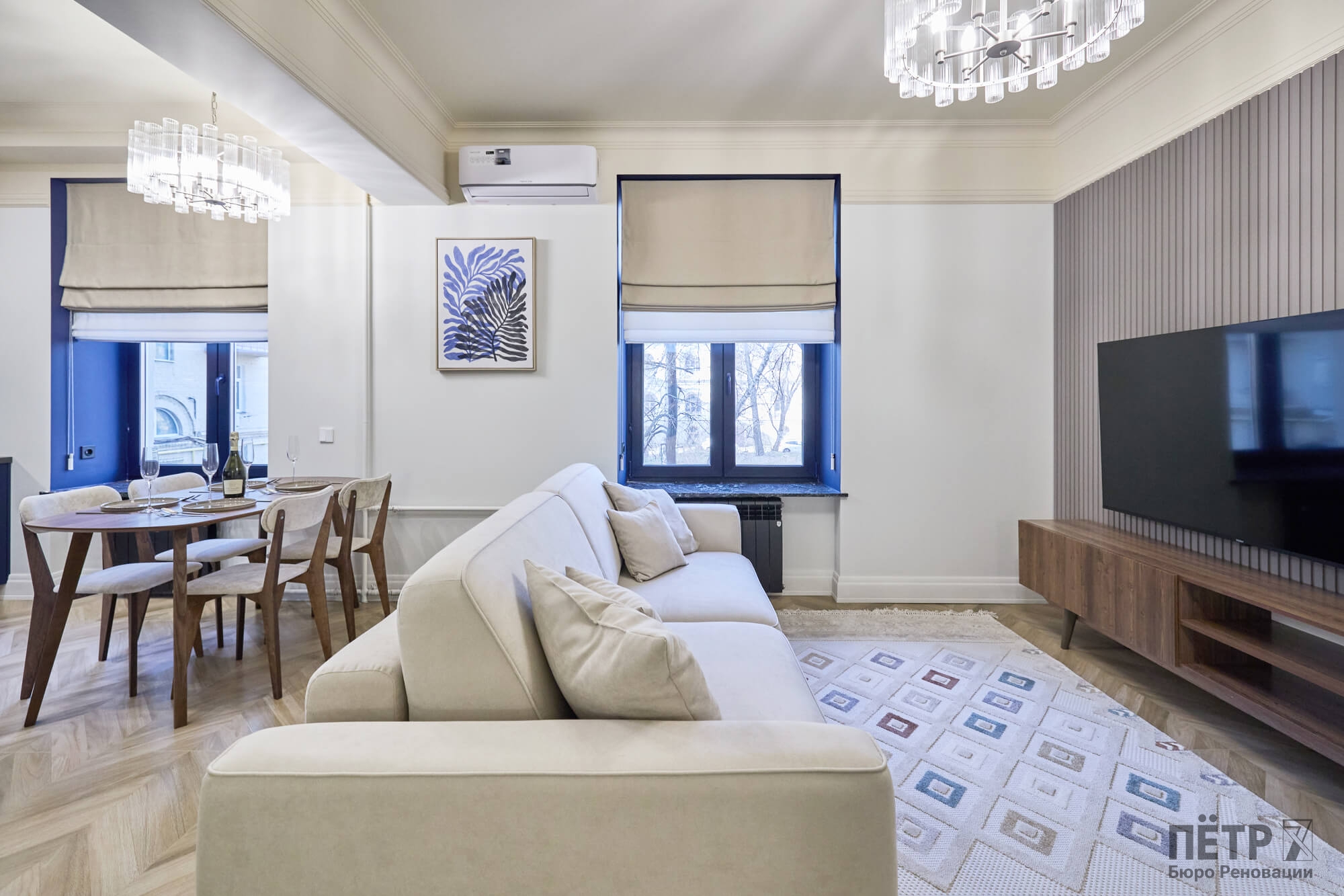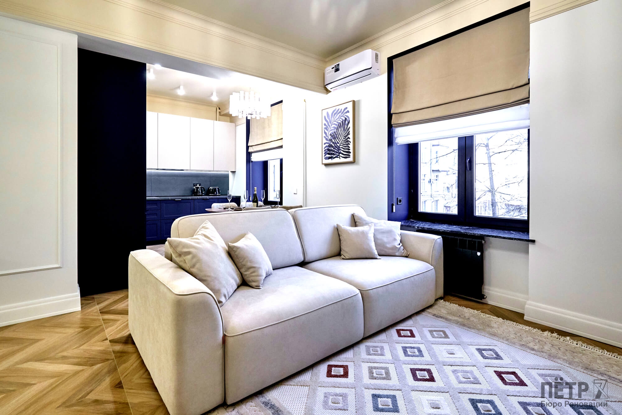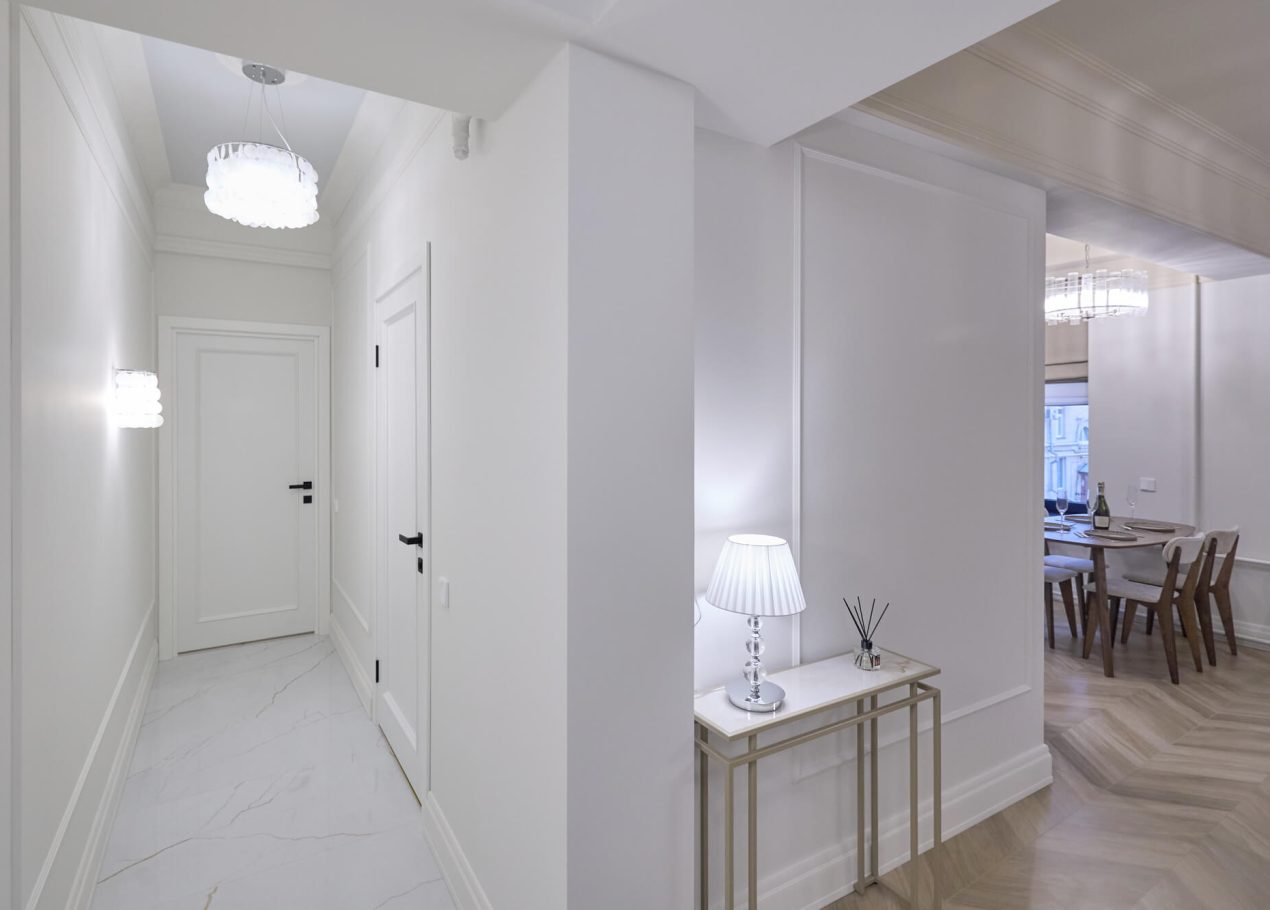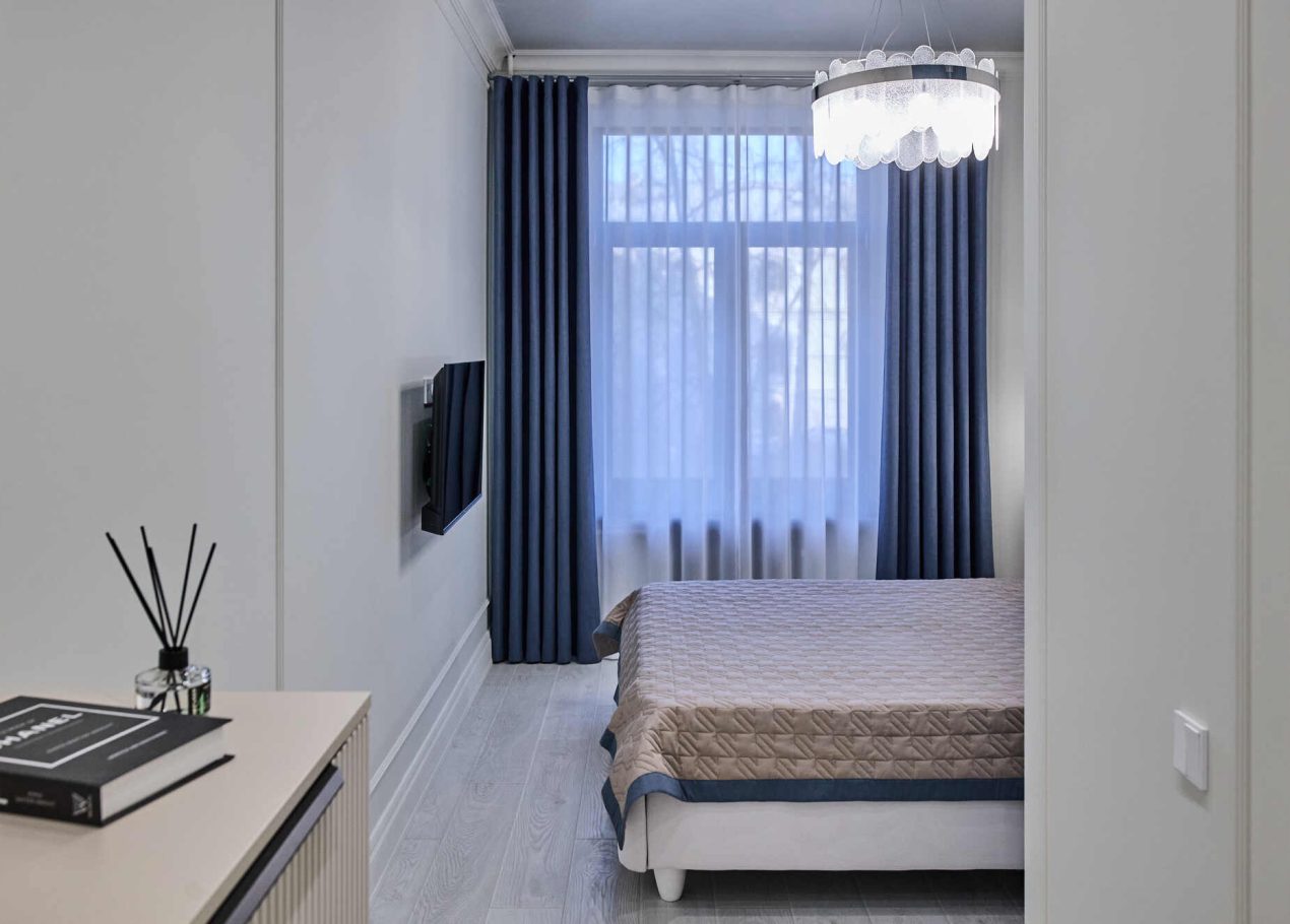 Квартира площадью 65 м² была полностью обновлена с сохранением атмосферы исторического дома: высокие потолки, большие окна и классическая архитектура. При этом пространство адаптировали под современный формат жизни — сделали просторную кухню-гостиную и мастер-спальню с собственным санузлом.