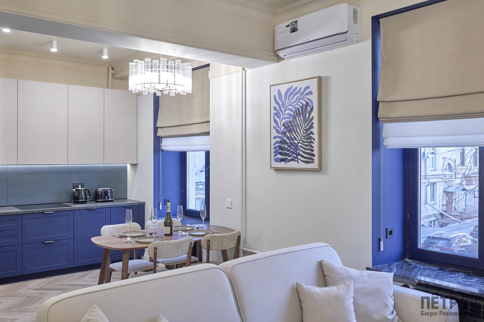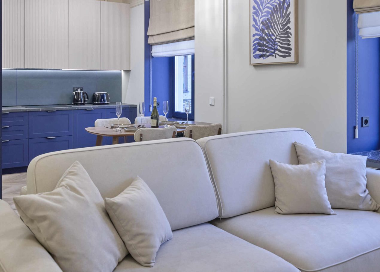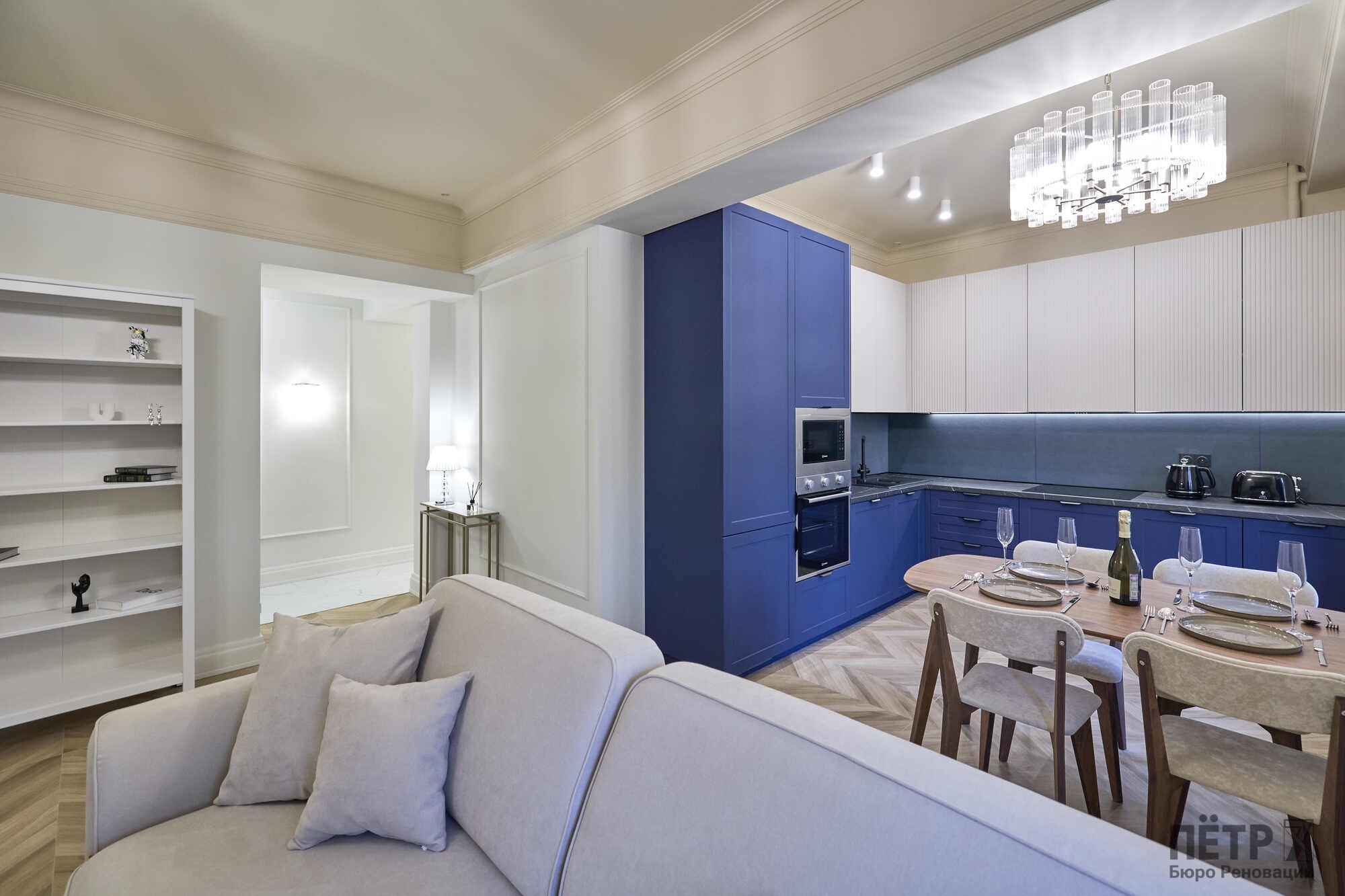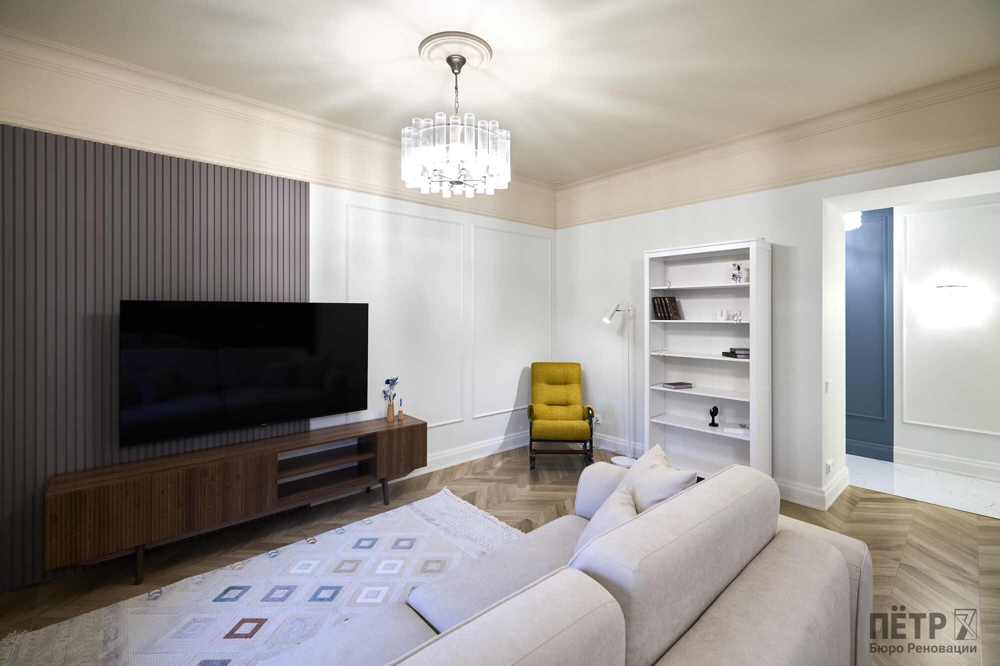 Квартира площадью 65 м² была полностью обновлена с сохранением атмосферы исторического дома: высокие потолки, большие окна и классическая архитектура. При этом пространство адаптировали под современный формат жизни — сделали просторную кухню-гостиную и мастер-спальню с собственным санузлом.