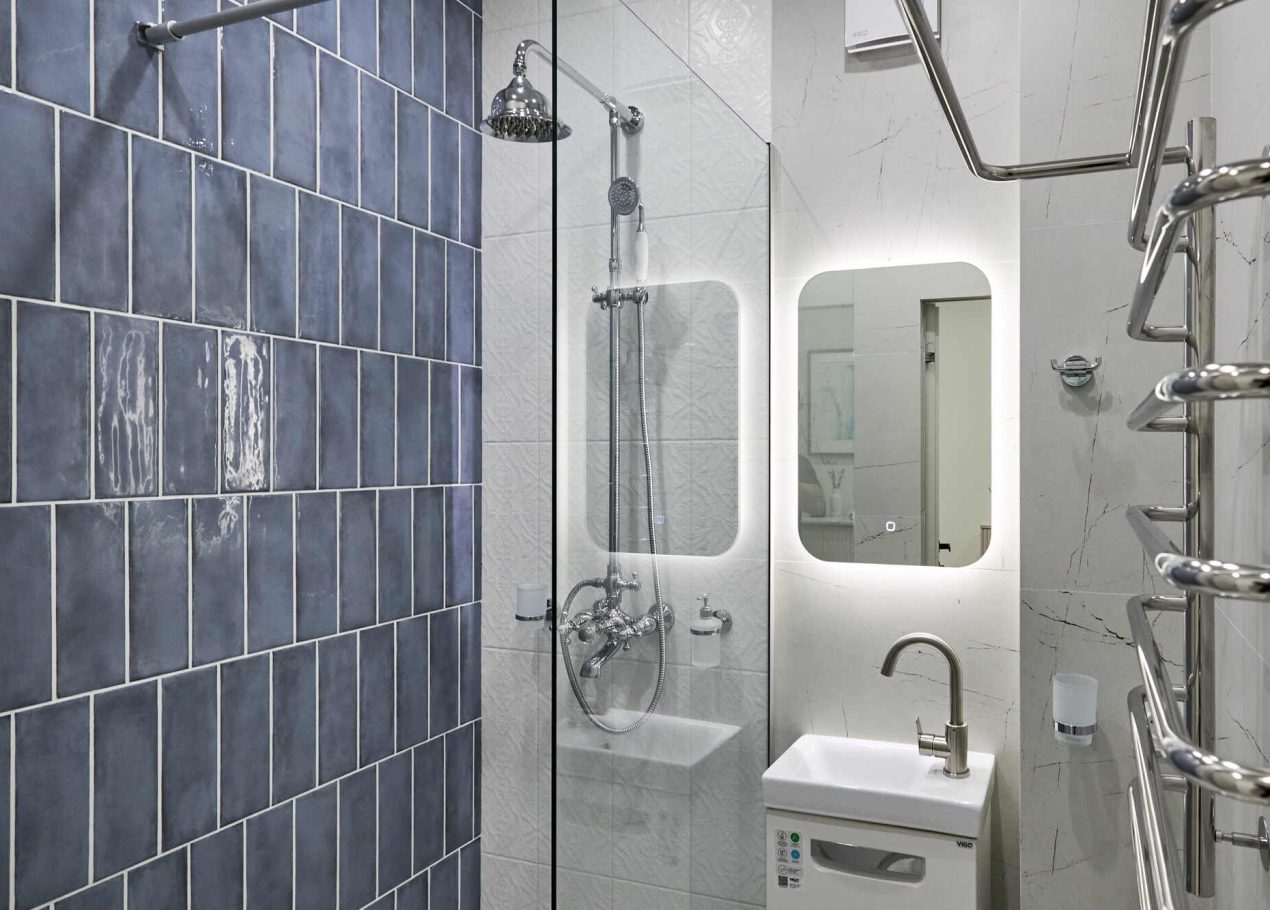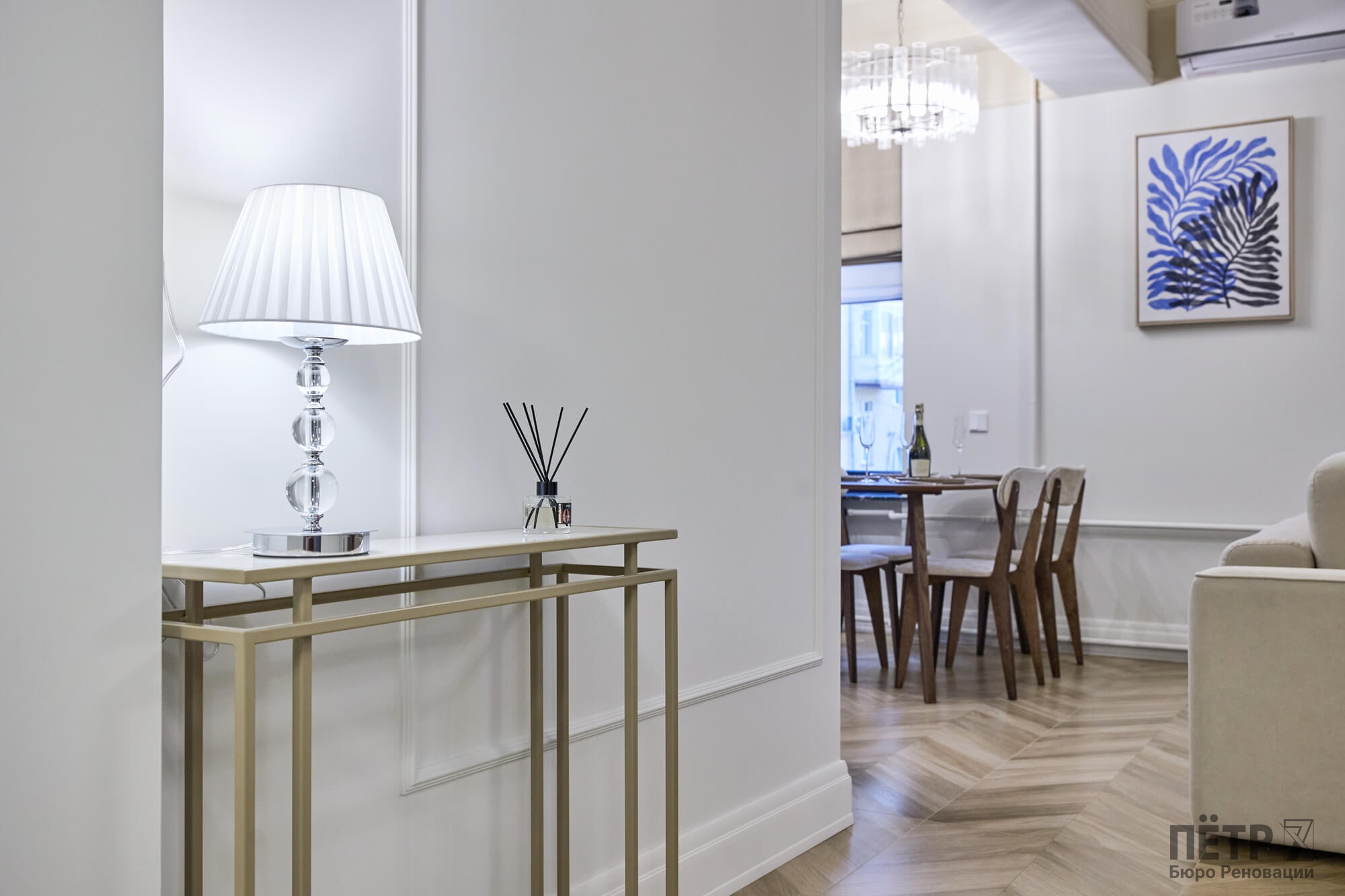 В отделке использовались качественные материалы: керамогранит с тёплыми полами в общих зонах и ламинированный паркет в спальне. В результате получилась современная квартира с характером исторического центра, которая достаточно быстро нашла своего покупателя.