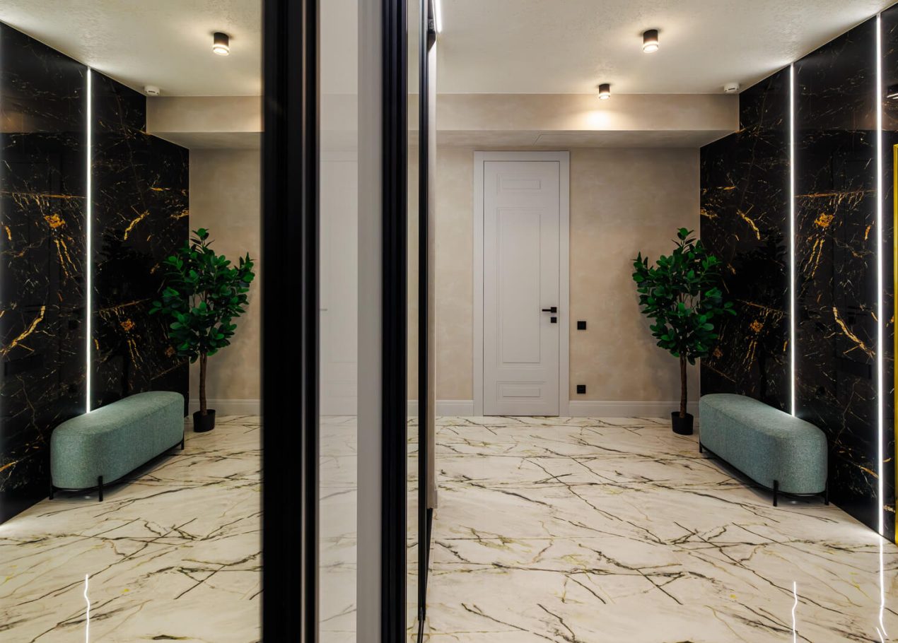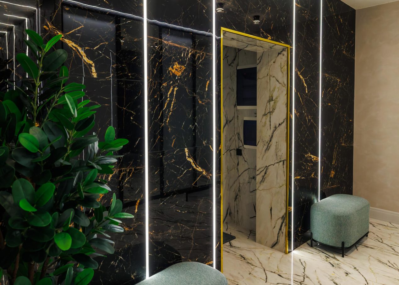 В этом проекте ключевым приоритетом стала инженерия: кинотеатр и хамам требуют безошибочной работы всех систем — от электрики и вентиляции до водоснабжения и гидроизоляции. Мы прекрасно понимаем уровень ответственности на этапе прокладки коммуникаций: здесь нет права на «примерно», потому что от качества работ напрямую зависят безопасность и спокойствие семьи.