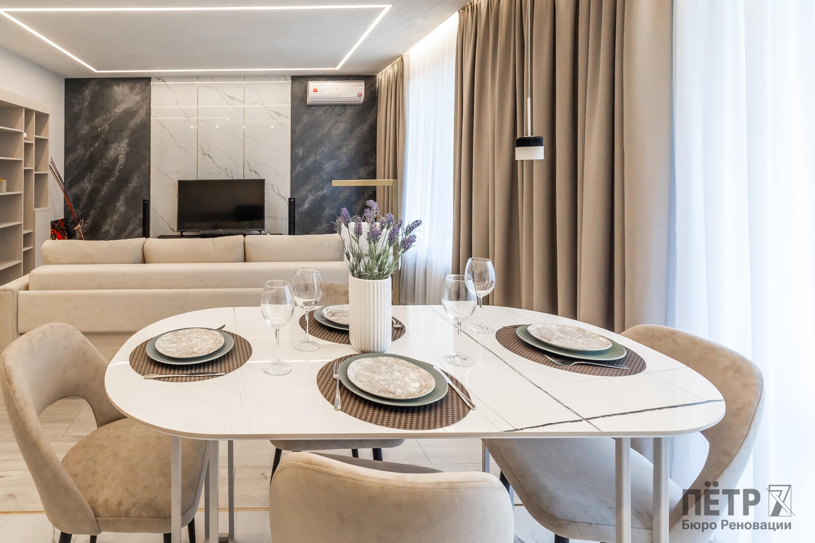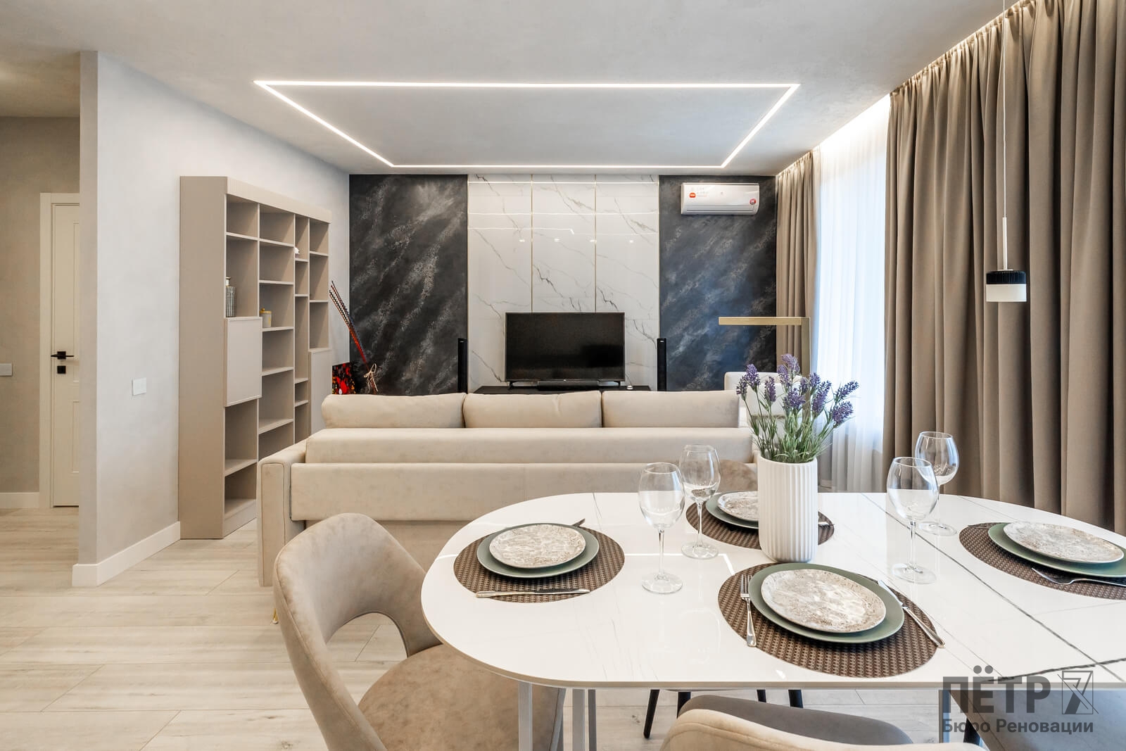 Заказчик полностью доверил нам процесс — от реализации инженерных решений до финального декора. Мы строго следовали утверждённому дизайн-проекту, контролировали каждый этап работ и добились точного соответствия задуманной концепции. В результате получилась квартира, где эстетика, сложная инженерия и комфорт объединены в цельный, продуманный интерьер.