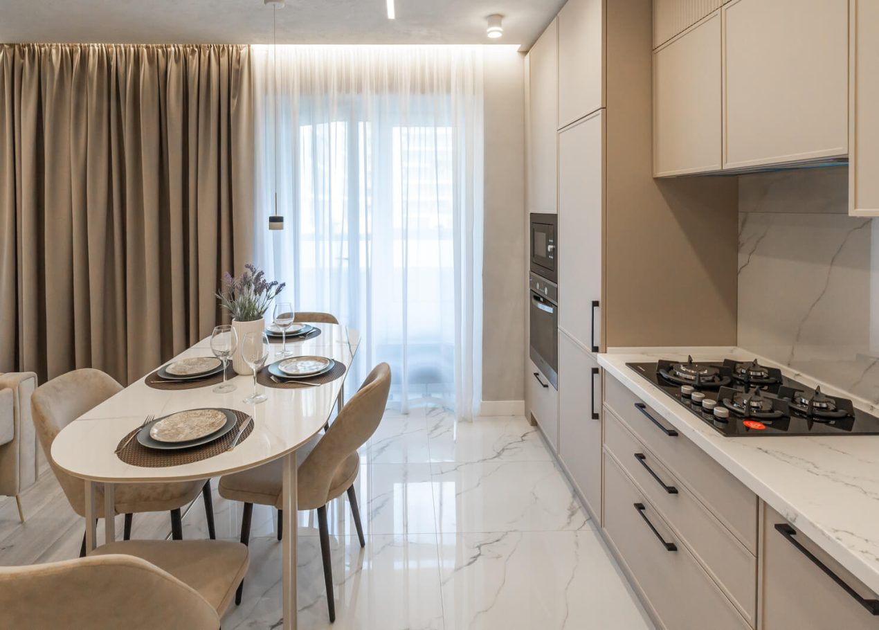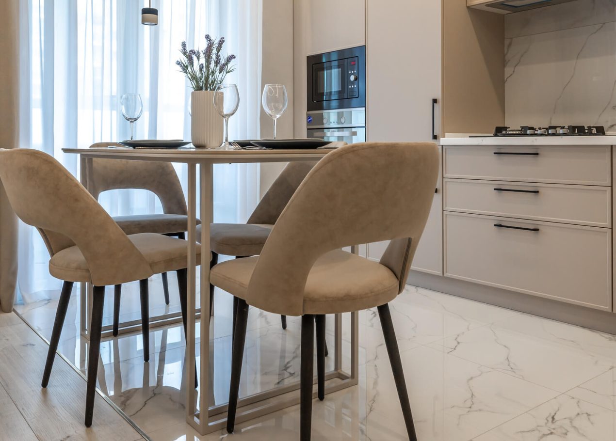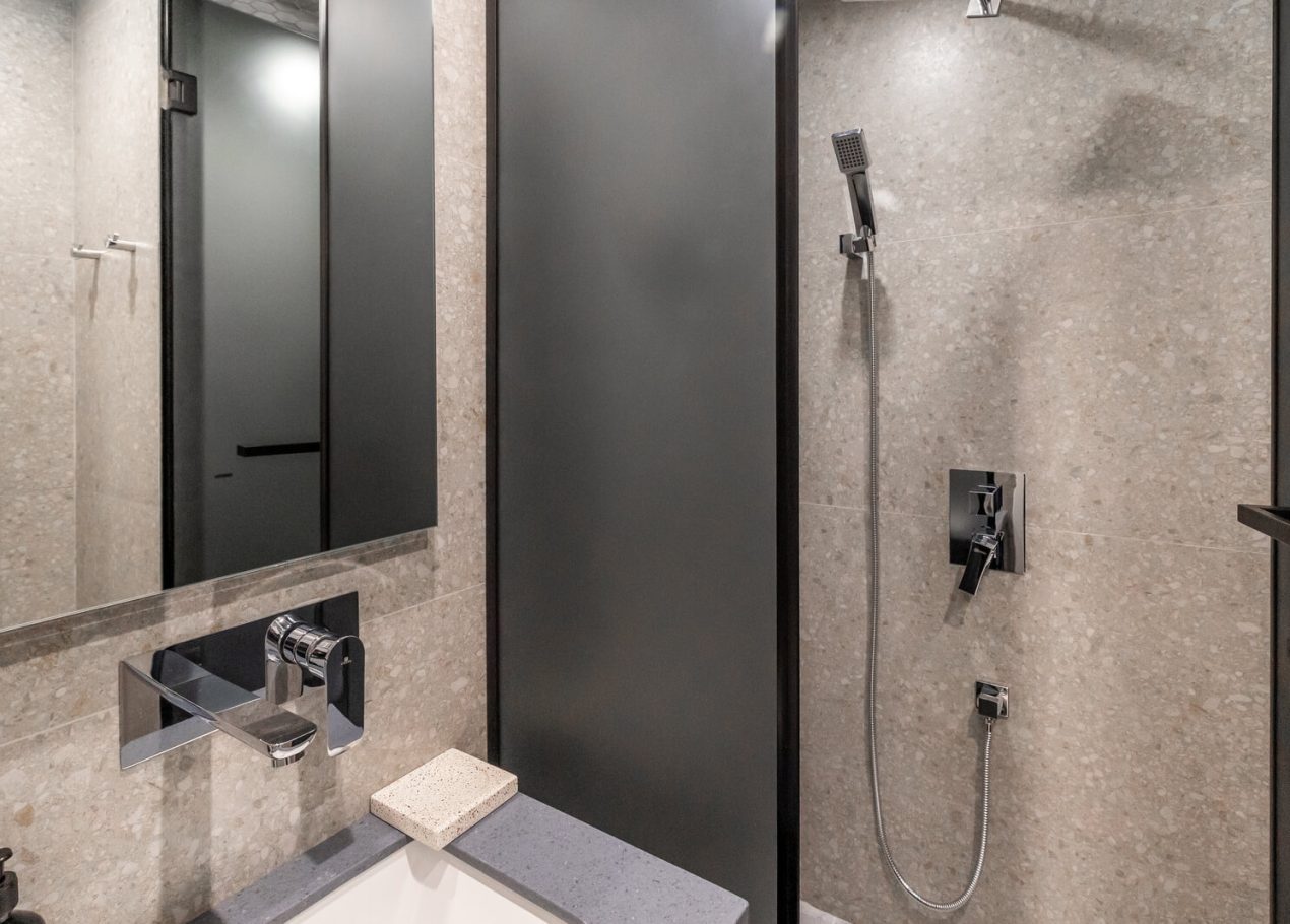 Несмотря на компактную площадь, этот проект стал примером того, как можно создать по-настоящему выразительное и функциональное пространство. Стиль ар-деко задали через геометрию, фактуры и акцентные детали, а хамам стал ключевой особенностью квартиры, добавив ей уровень приватного спа-комфорта.