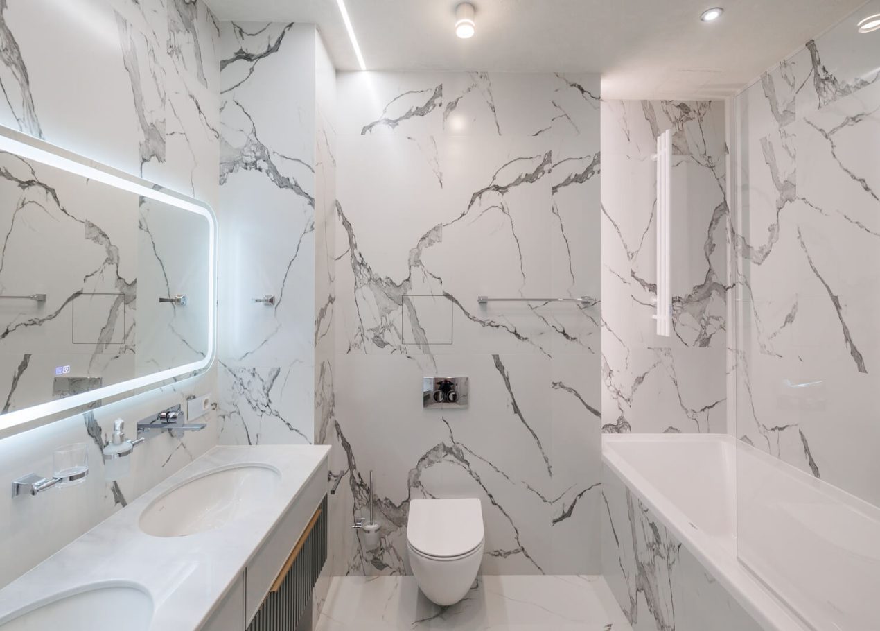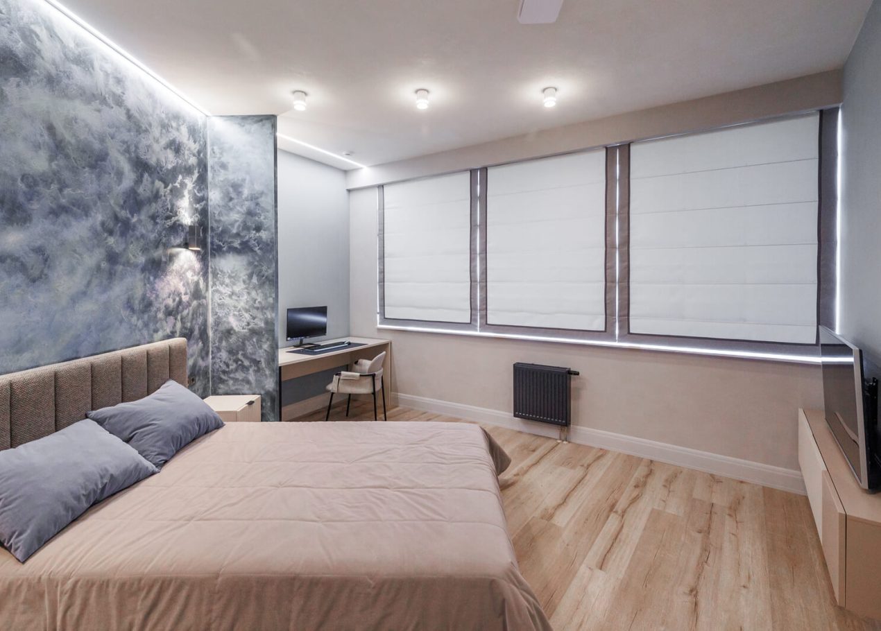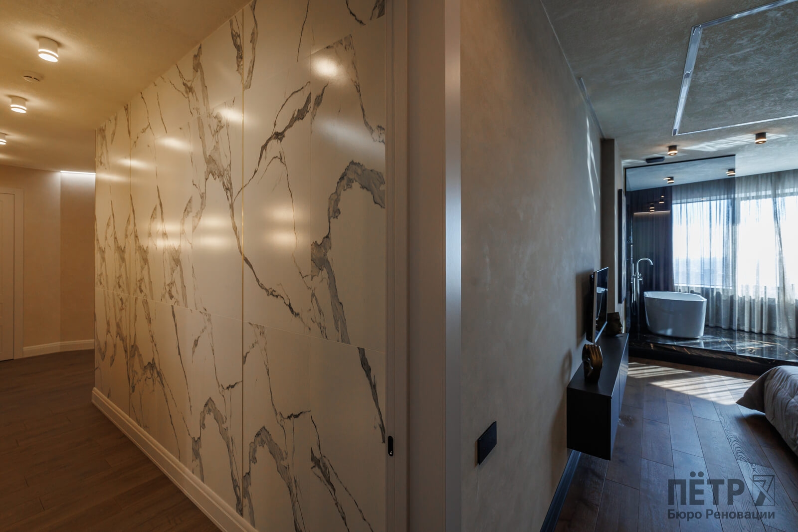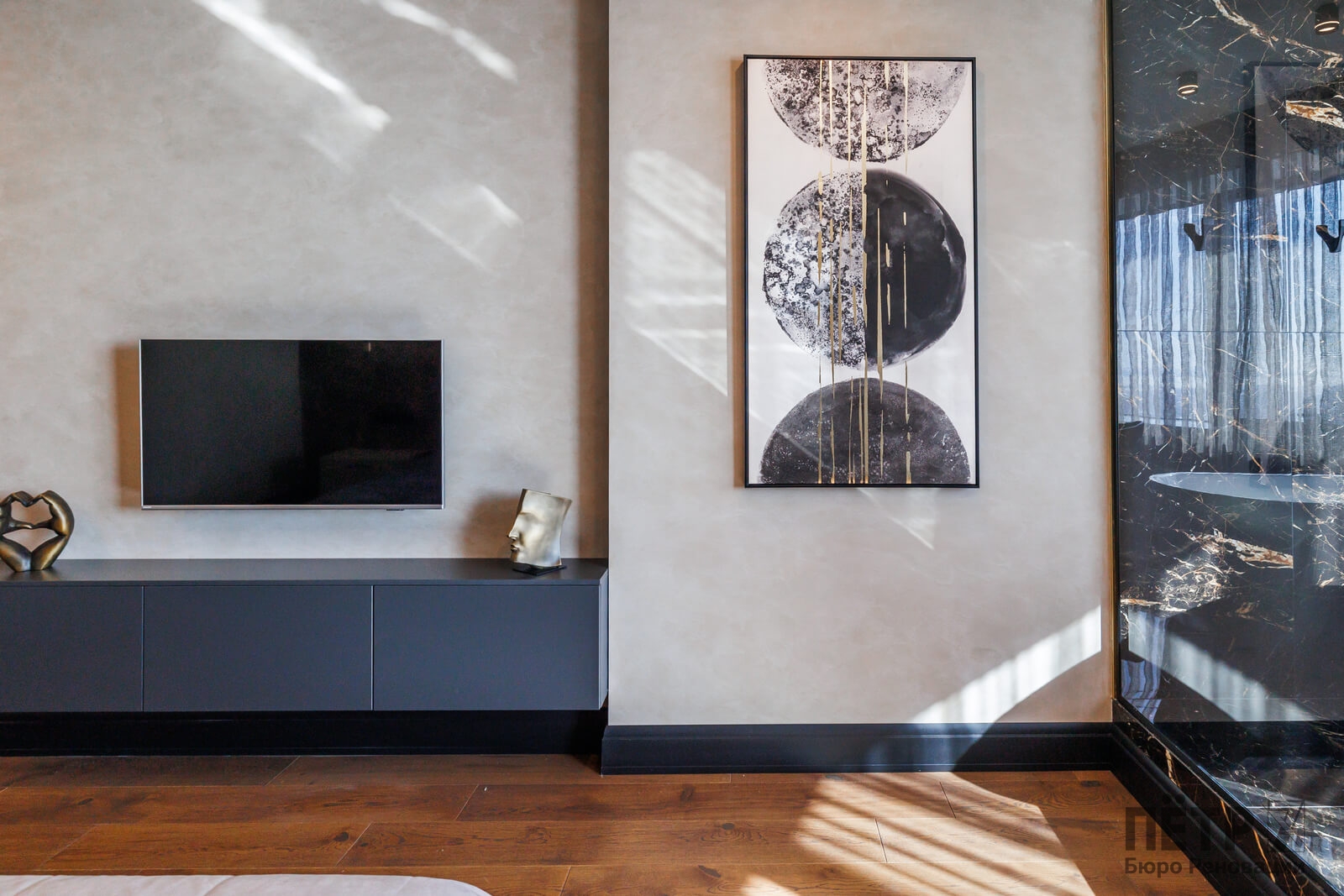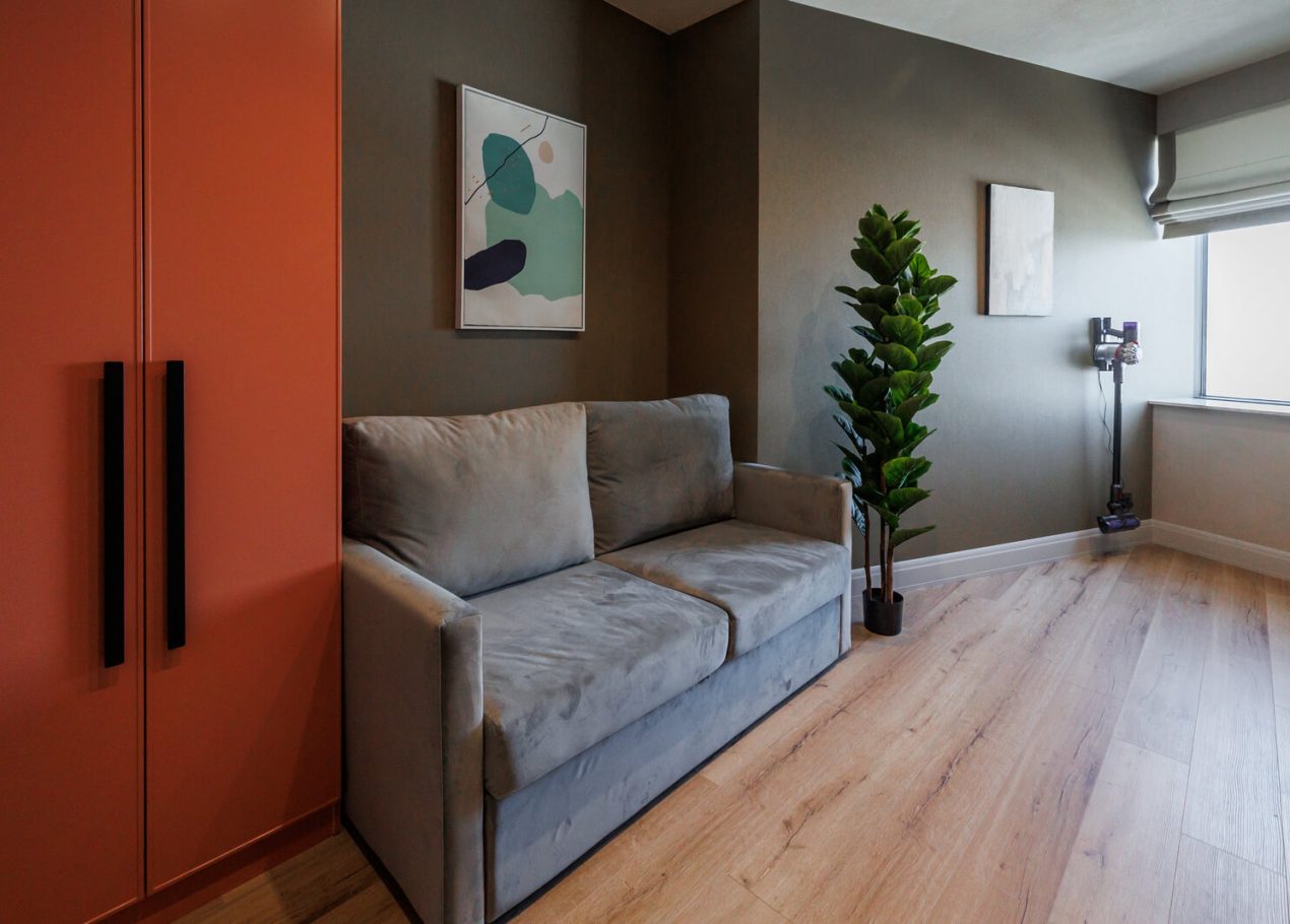 Мы реализовали объект под ключ: организовали процесс, выстроили взаимодействие подрядчиков, обеспечили строгий контроль качества и сроков. В результате интерьер подчеркнул статус квартиры в небоскрёбе — современный, масштабный и продуманный до мелочей, полностью соответствующий ожиданиям семьи.