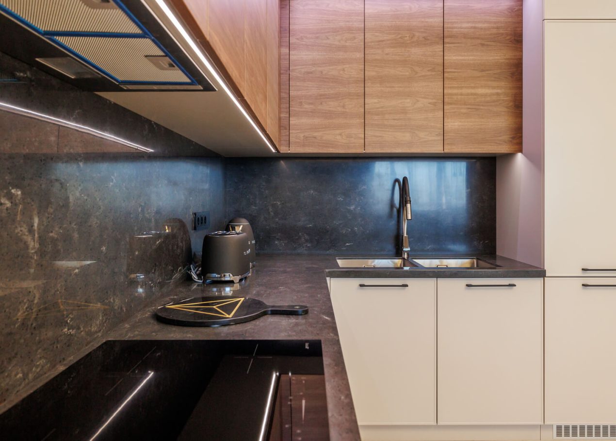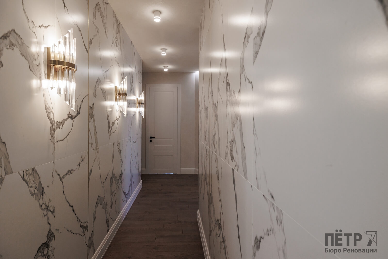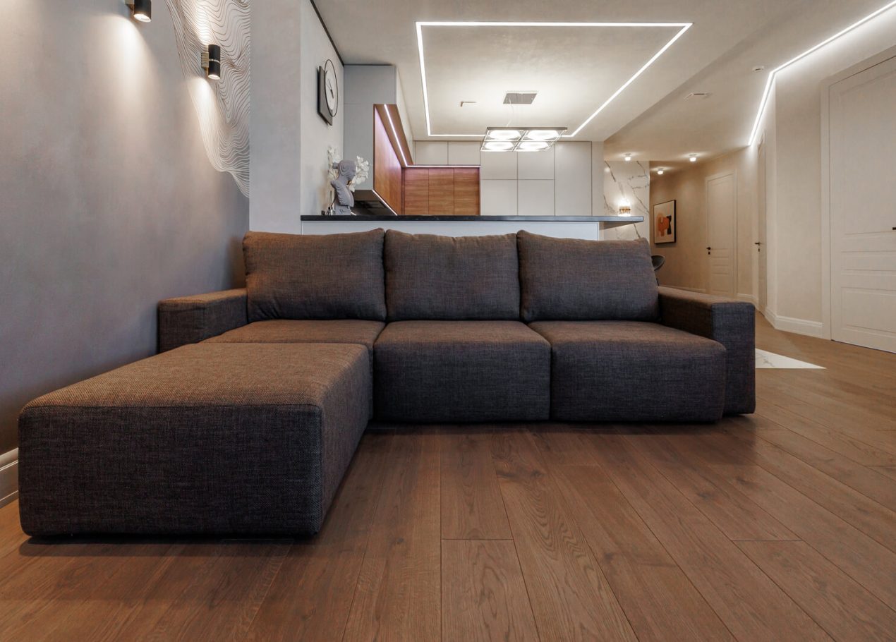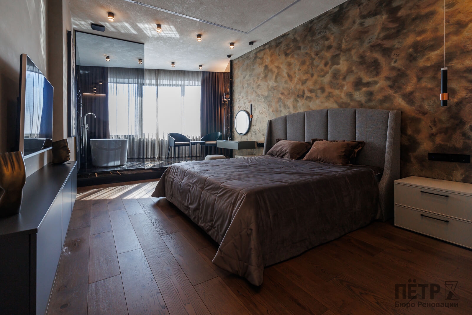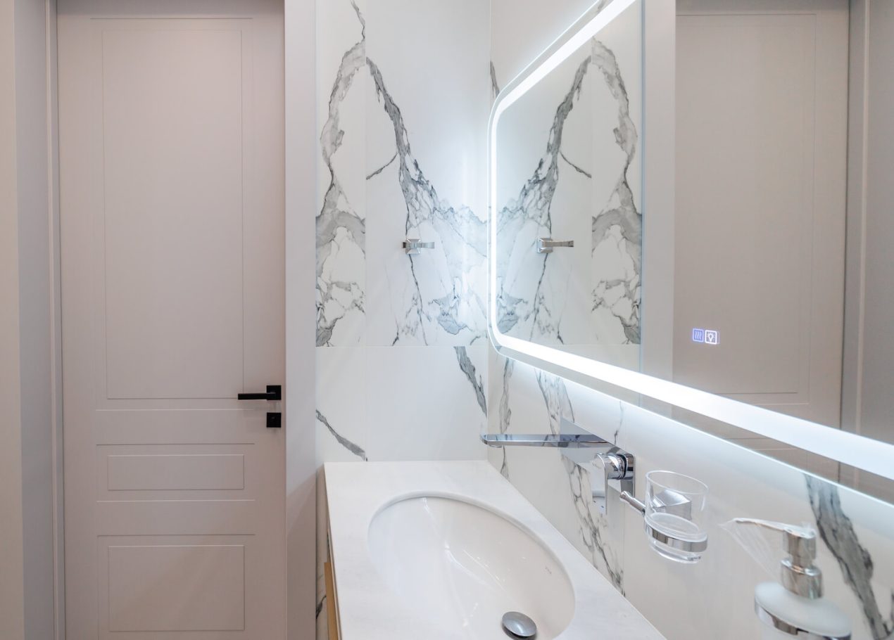 Мы реализовали объект под ключ: организовали процесс, выстроили взаимодействие подрядчиков, обеспечили строгий контроль качества и сроков. В результате интерьер подчеркнул статус квартиры в небоскрёбе — современный, масштабный и продуманный до мелочей, полностью соответствующий ожиданиям семьи.