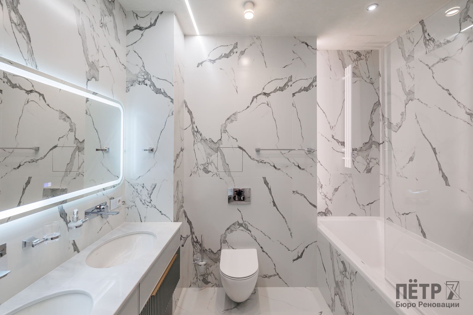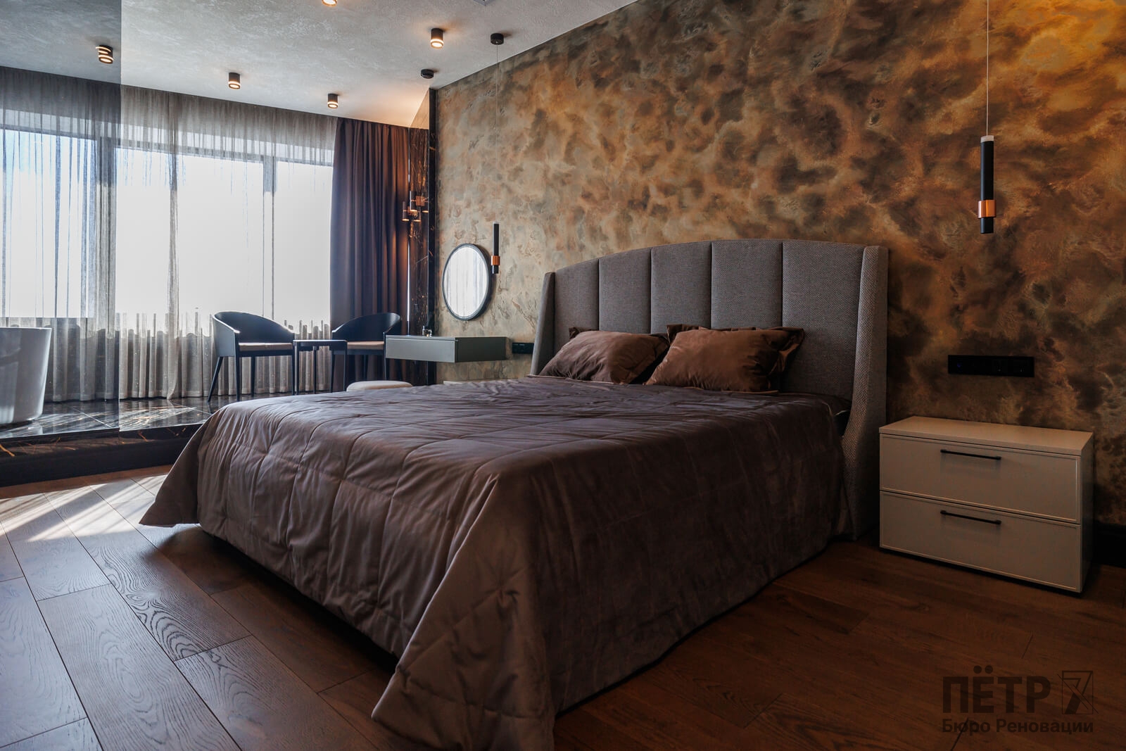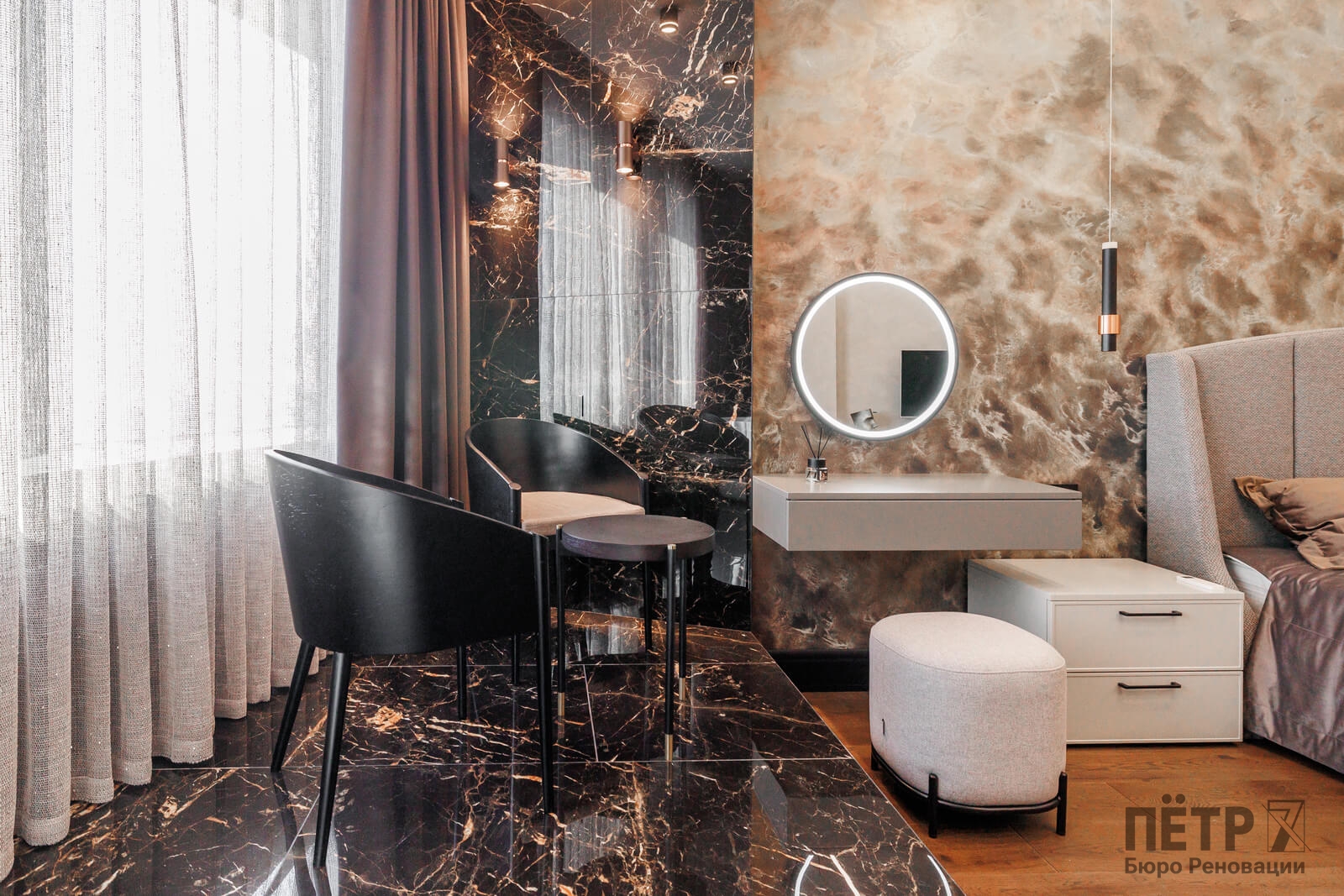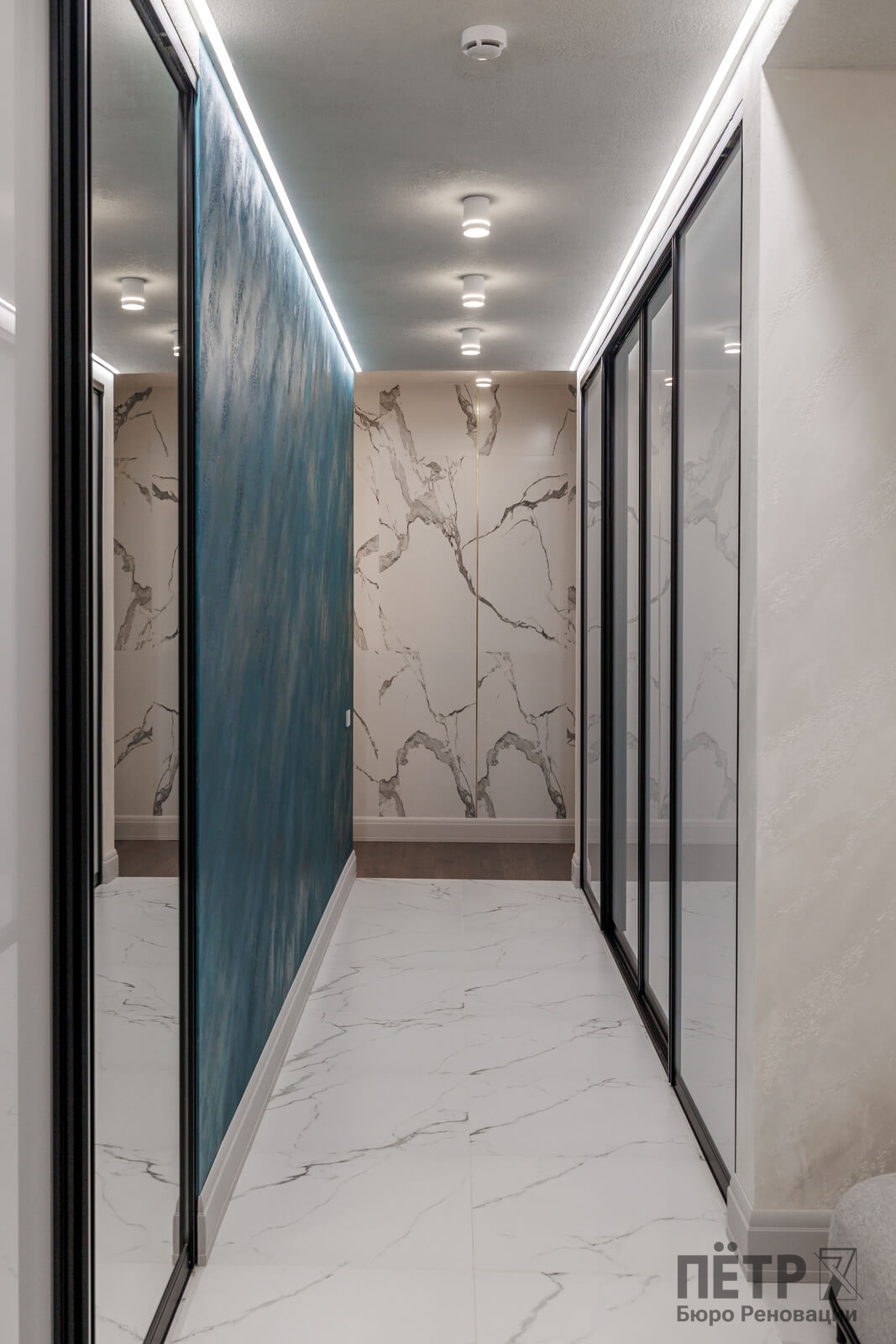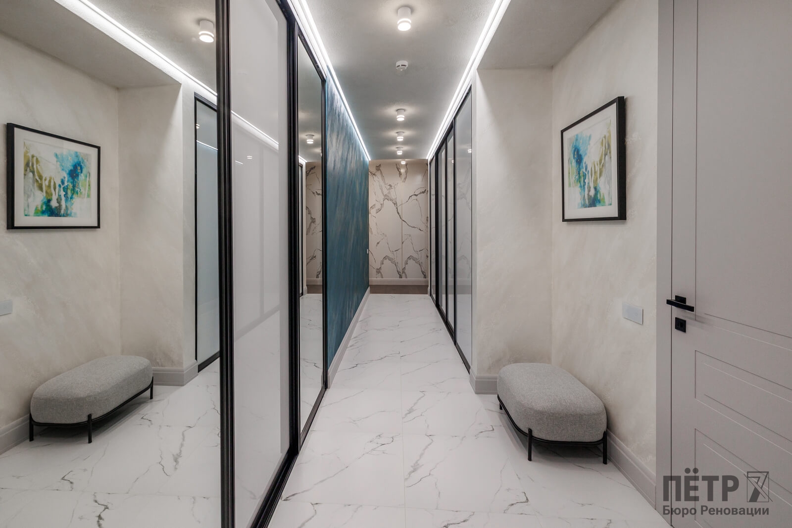 Мы реализовали объект под ключ: организовали процесс, выстроили взаимодействие подрядчиков, обеспечили строгий контроль качества и сроков. В результате интерьер подчеркнул статус квартиры в небоскрёбе — современный, масштабный и продуманный до мелочей, полностью соответствующий ожиданиям семьи.