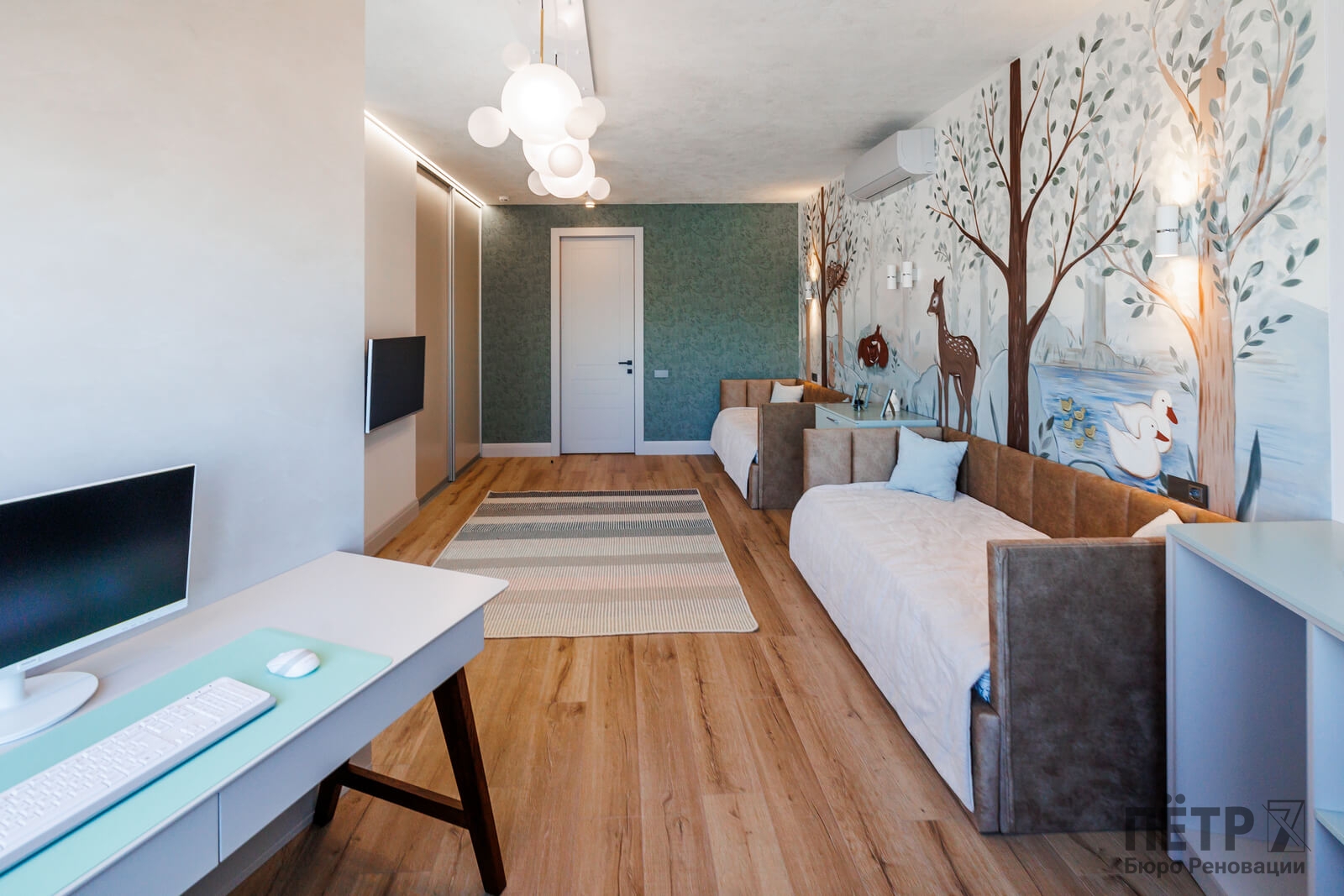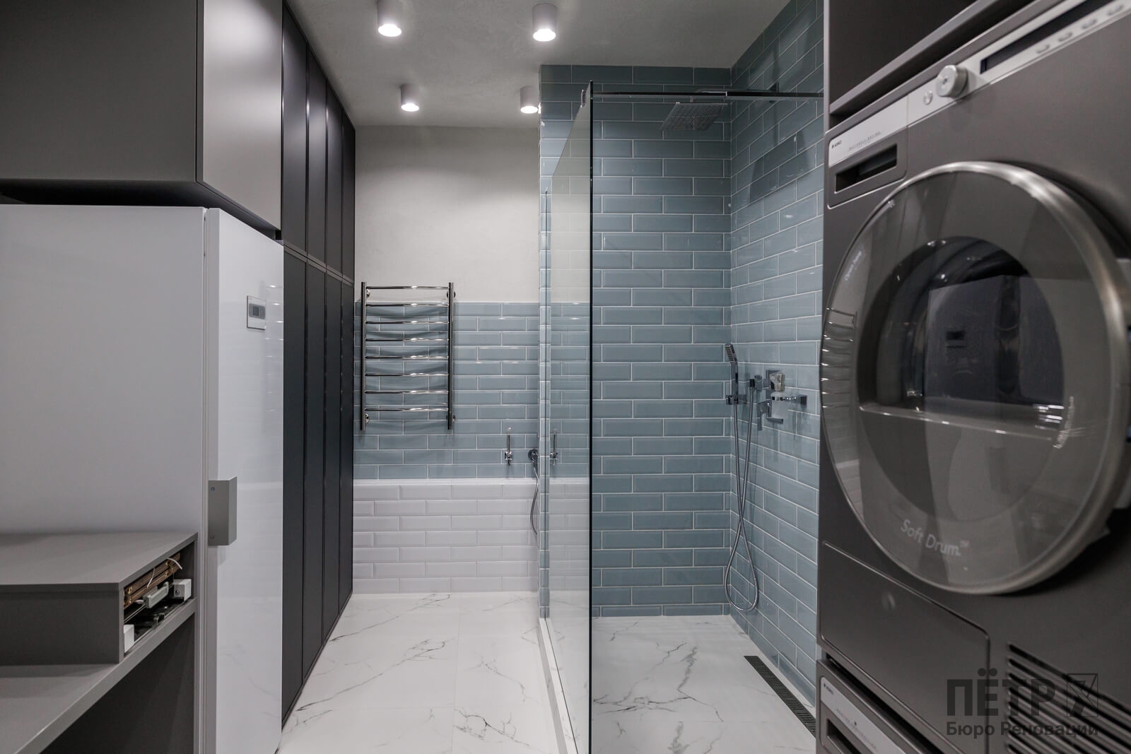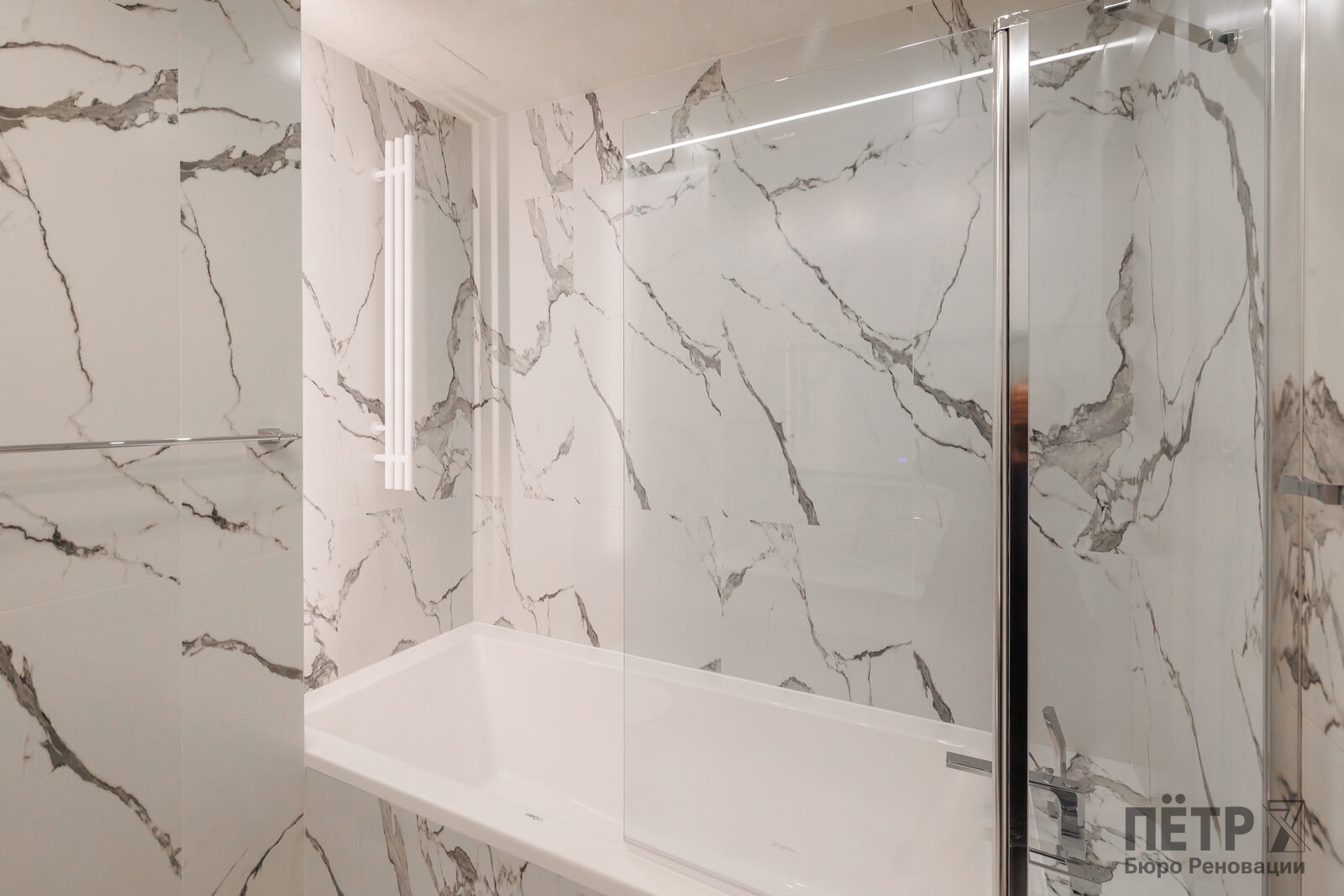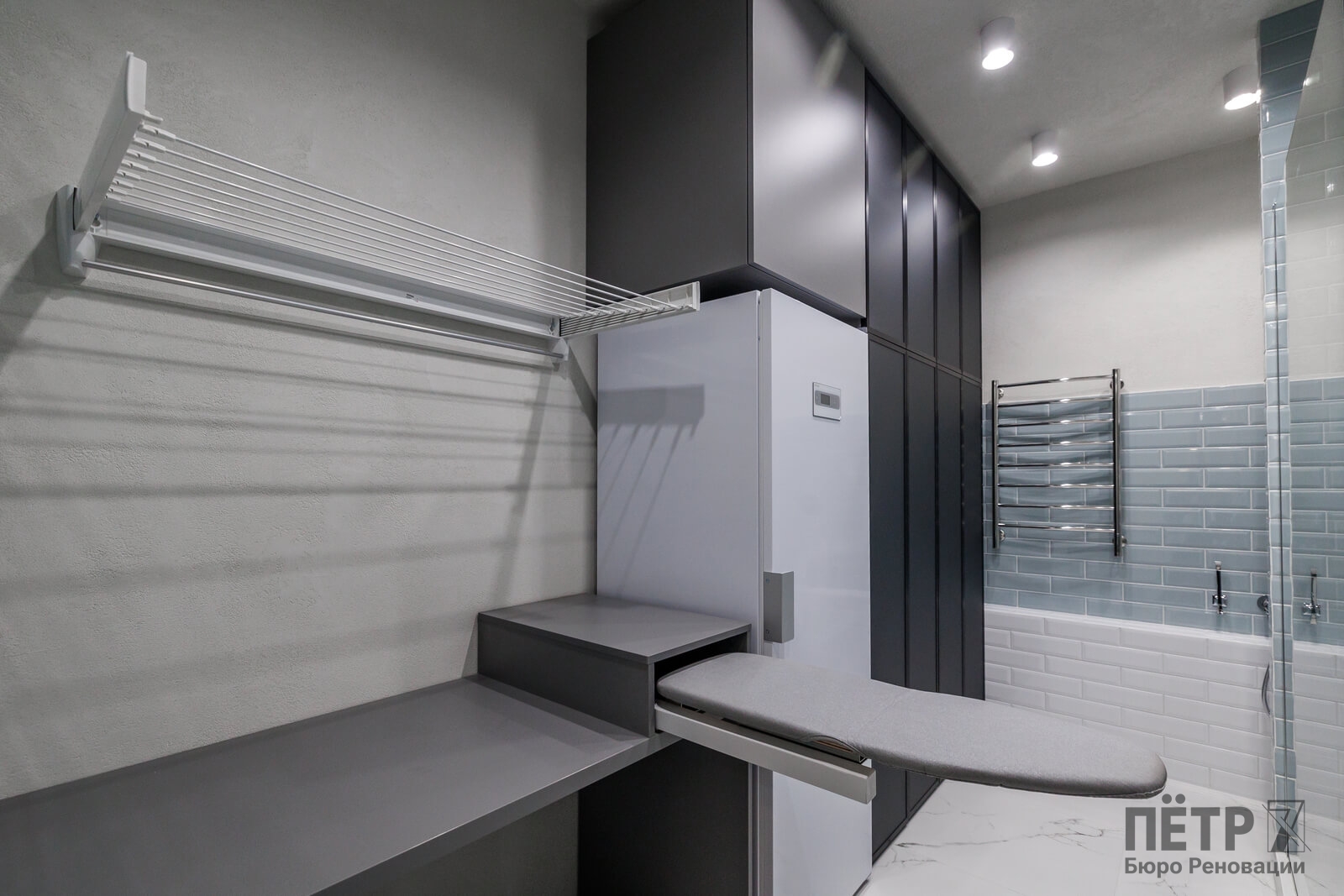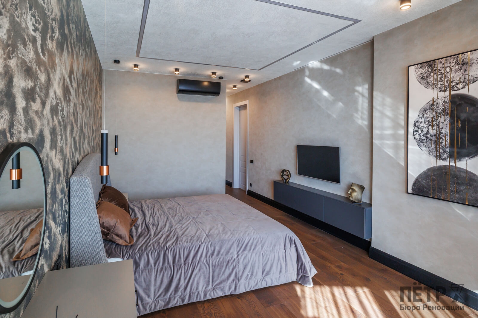 Мы реализовали объект под ключ: организовали процесс, выстроили взаимодействие подрядчиков, обеспечили строгий контроль качества и сроков. В результате интерьер подчеркнул статус квартиры в небоскрёбе — современный, масштабный и продуманный до мелочей, полностью соответствующий ожиданиям семьи.
