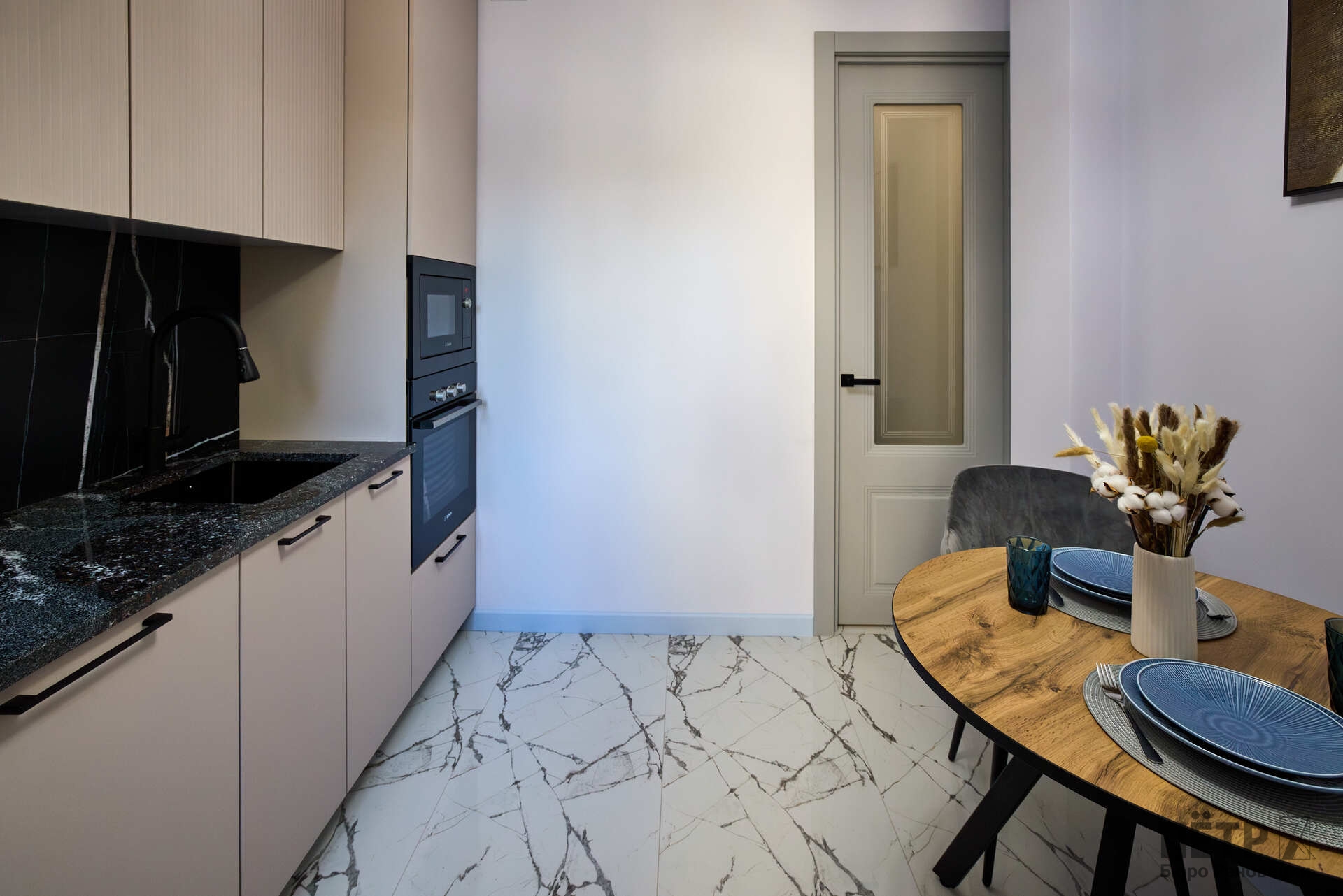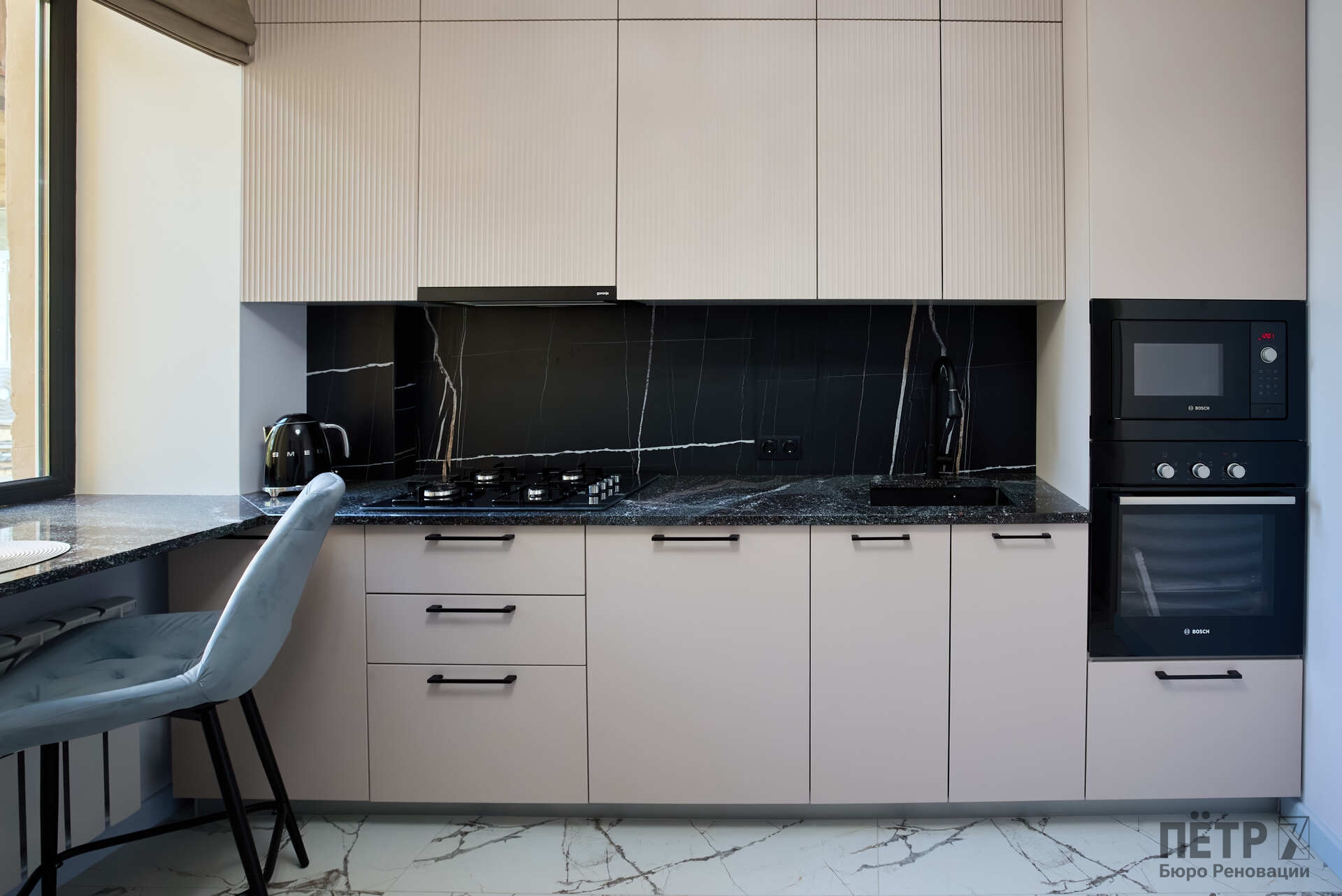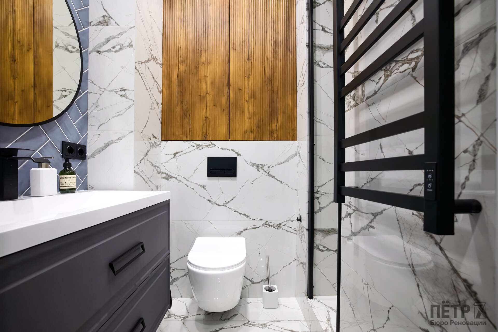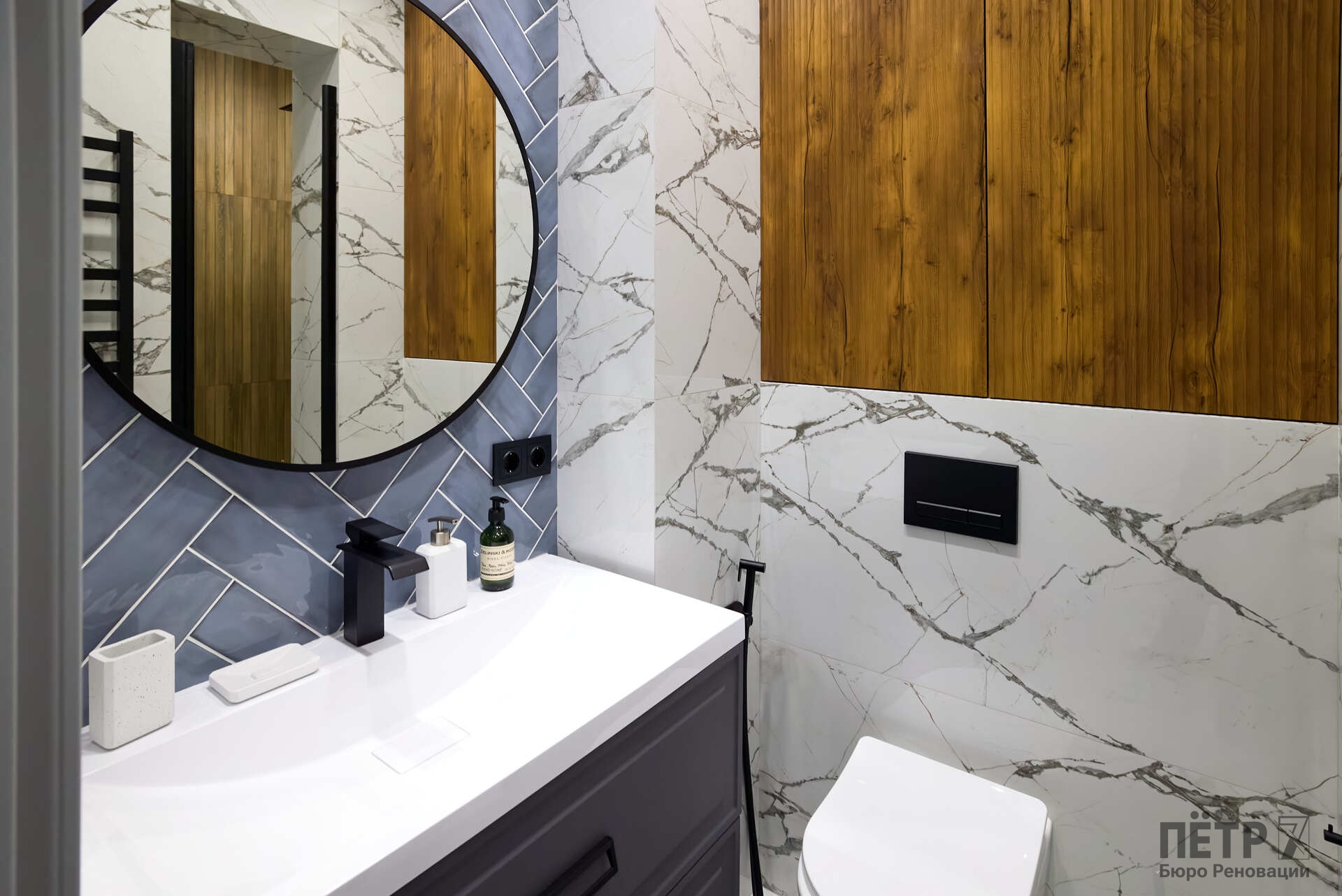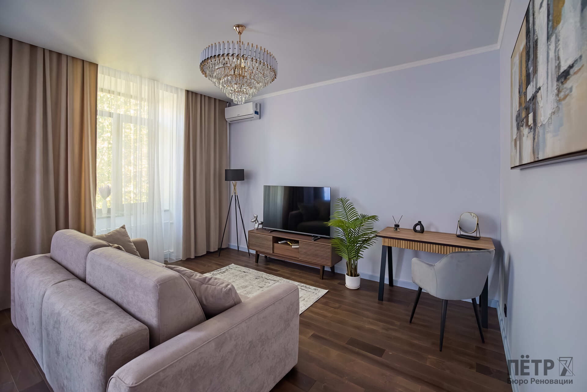 Параллельно решалась планировочная задача: сформировать комфортную мастер-зону и повысить функциональность пространства, сохранив характер сталинки. В результате получился продуманный интерьер с современной эргономикой и прозрачной реализацией — без перерасходов и отклонений от графика.