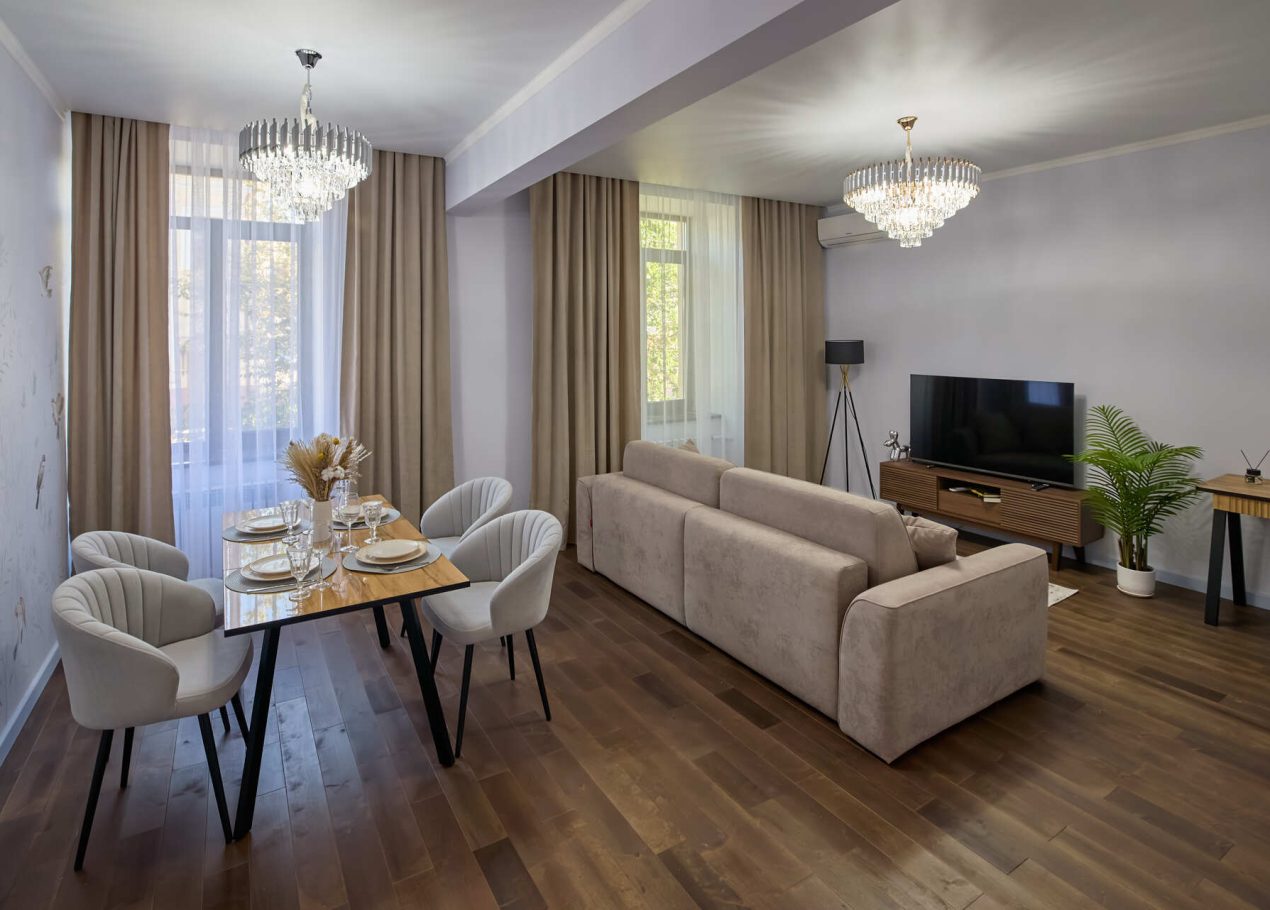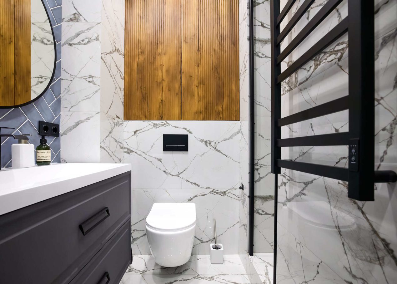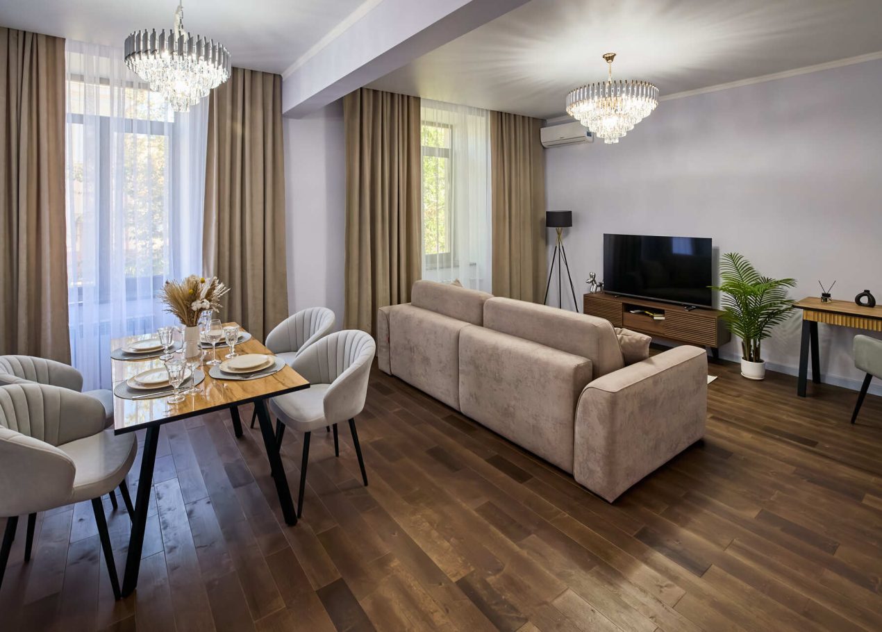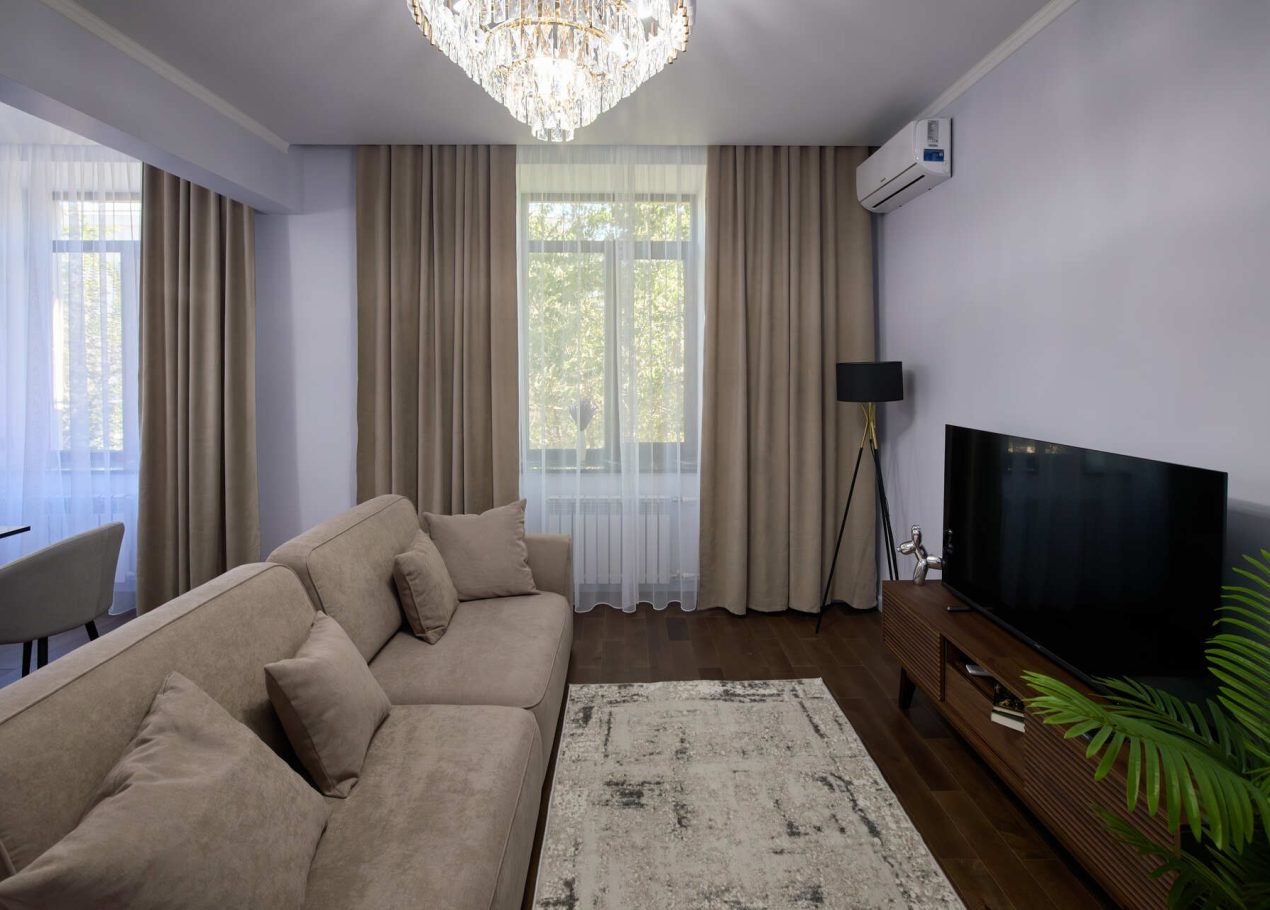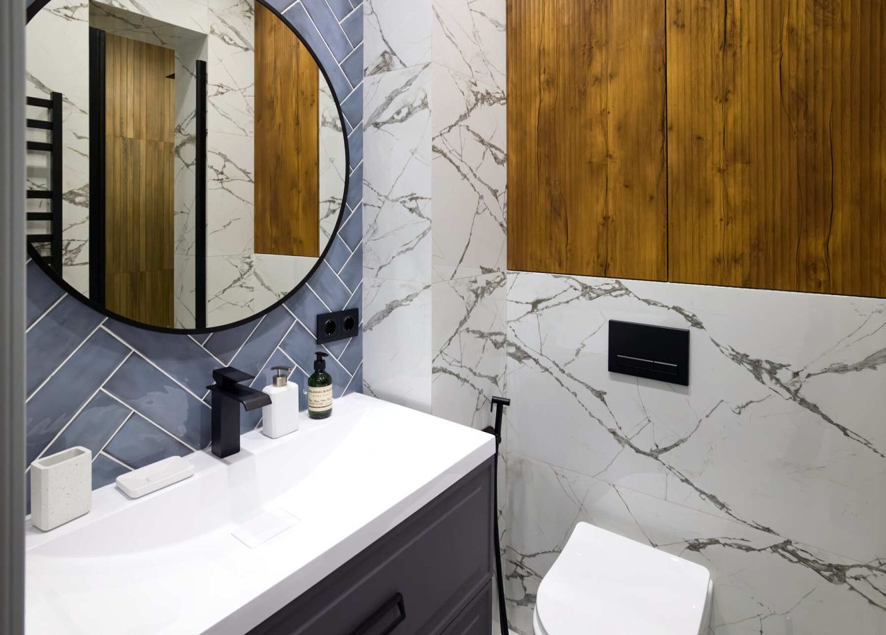 В квартире сформировали удобную и функциональную планировку: отдельная кухня, гостиная, мастер-спальня с собственным санузлом и гардеробной, дополнительный санузел и просторный холл с системой хранения. В отделке использовали практичные современные материалы, включая керамогранит с тёплыми полами и спокойную нейтральную палитру, чтобы интерьер выглядел актуально и гармонировал с архитектурой дома.
