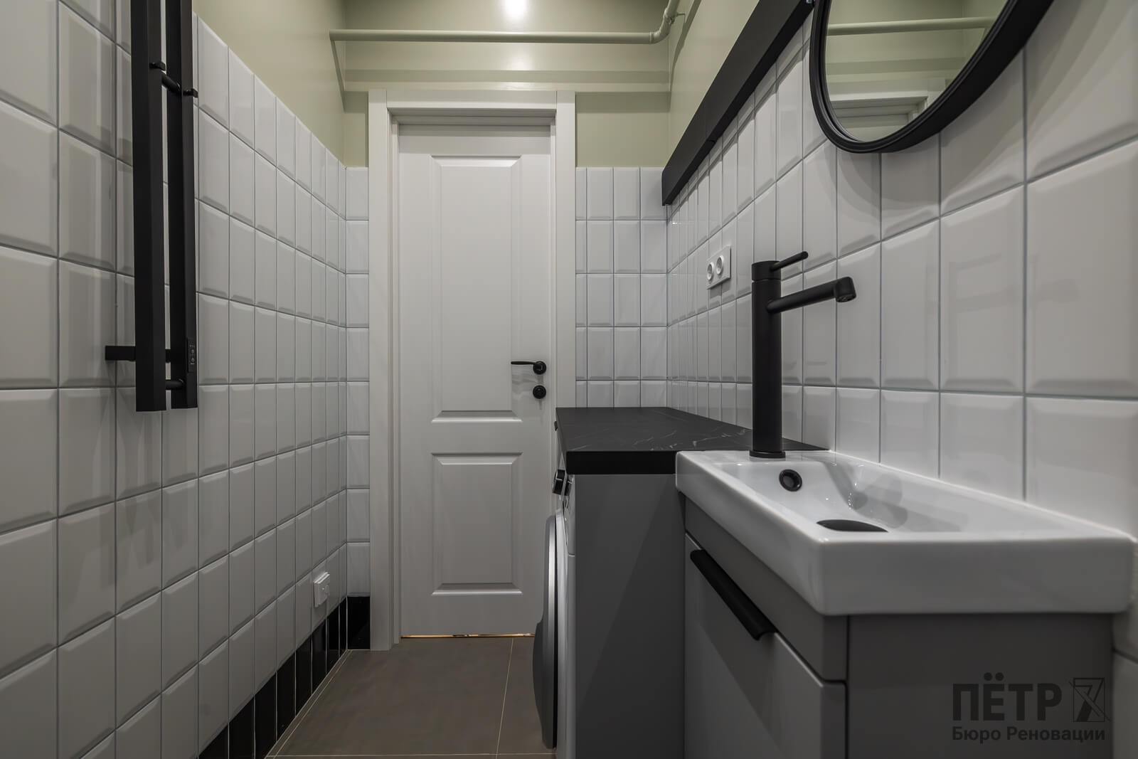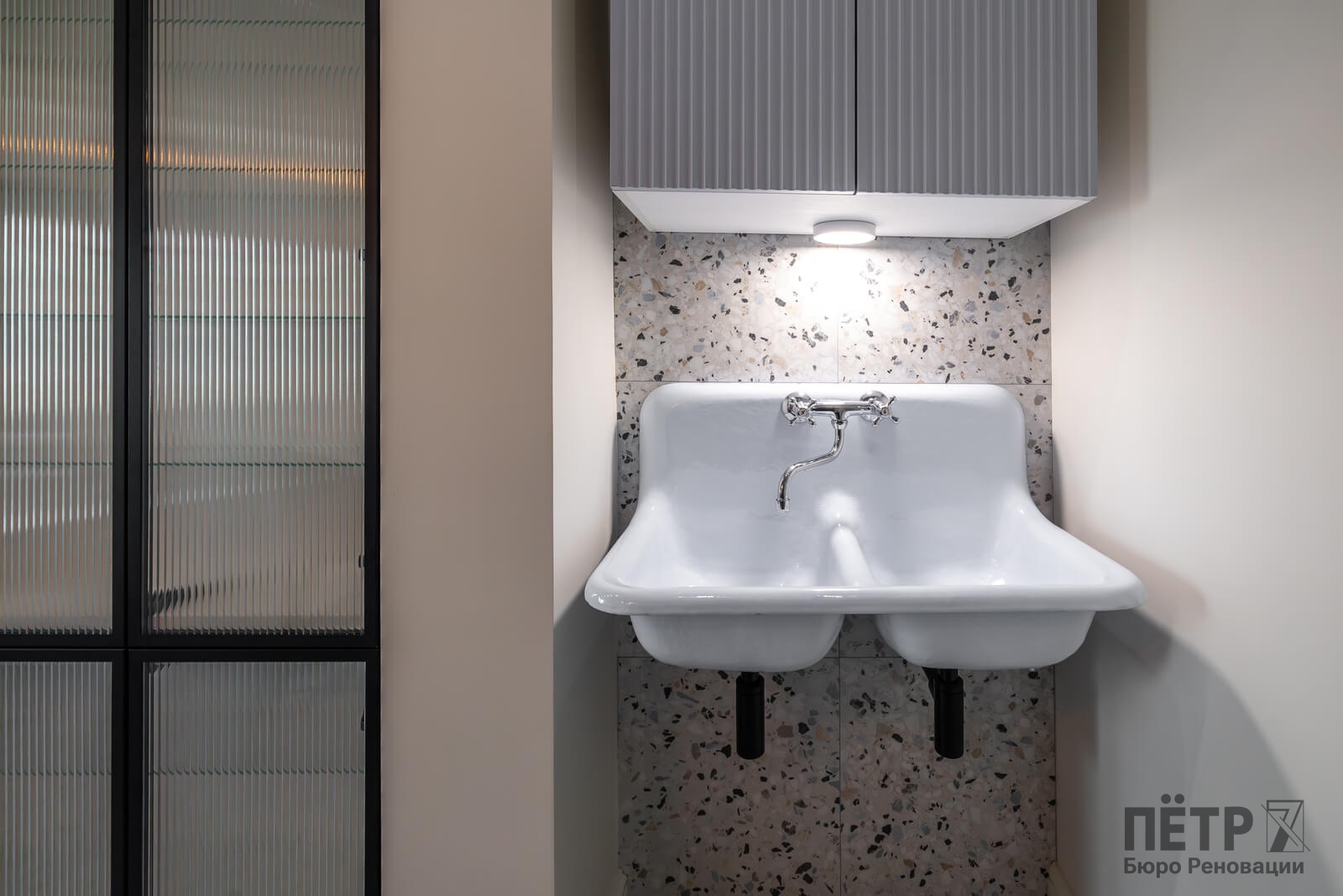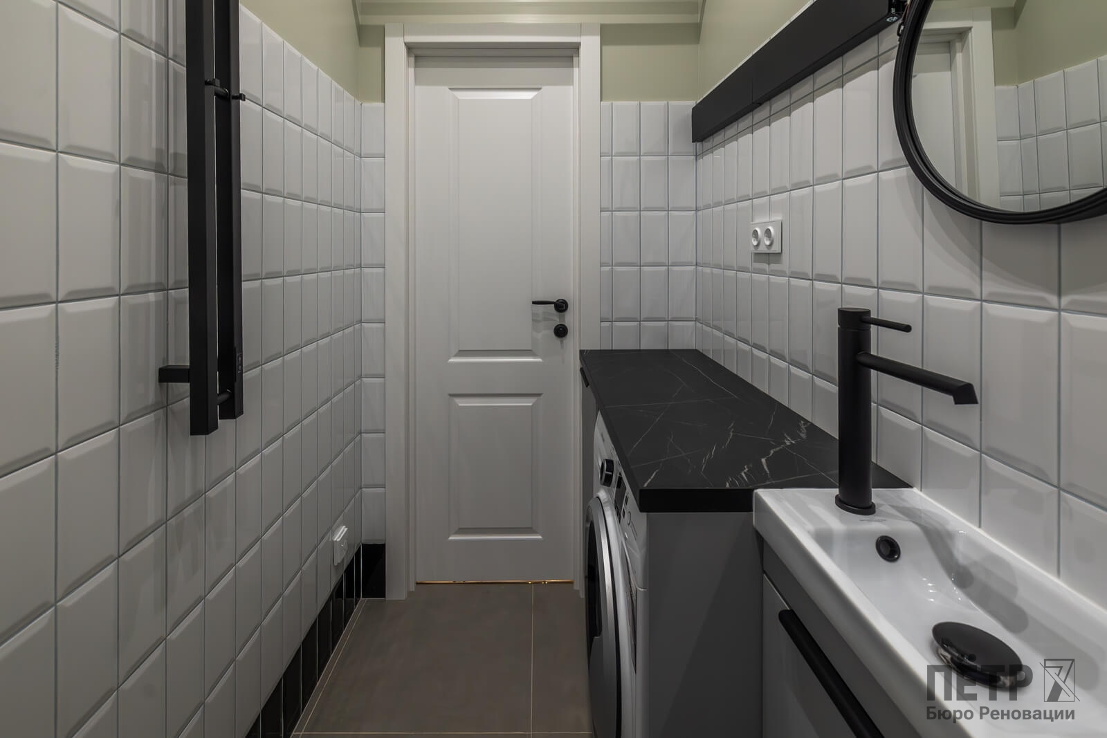 Основной задачей реновации было обновить квартиру, сохранив атмосферу сталинской архитектуры. Пространство перепланировали под современный формат: кухня-гостиная, отдельная спальня и раздельные санузлы. В одном из санузлов разместили компактную прачечную зону.